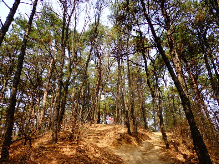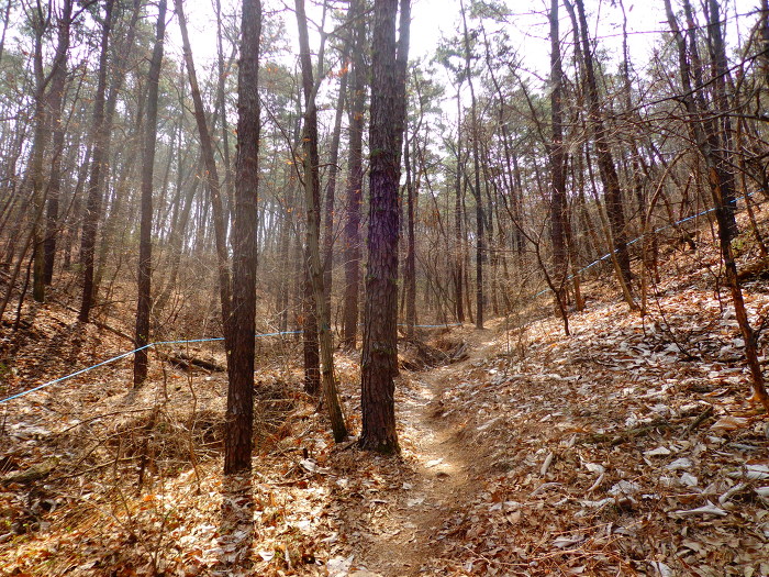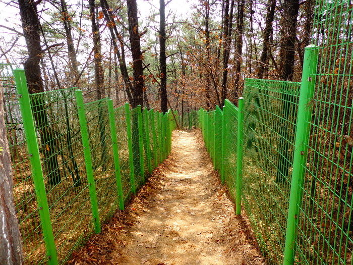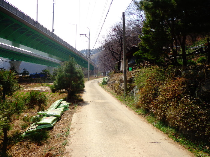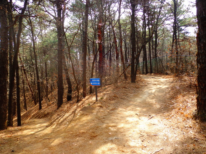 청명산에서 하산하여 큰길을 건너 매미산으로 가는 길.