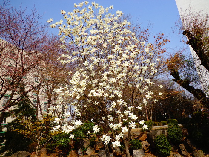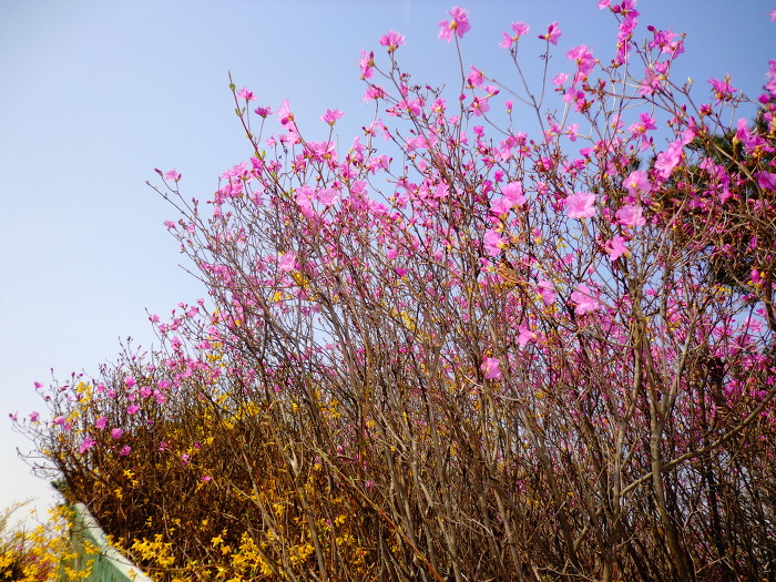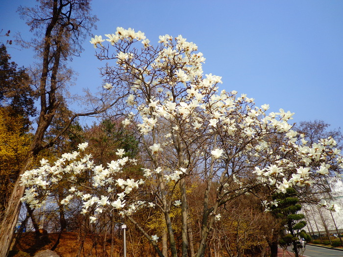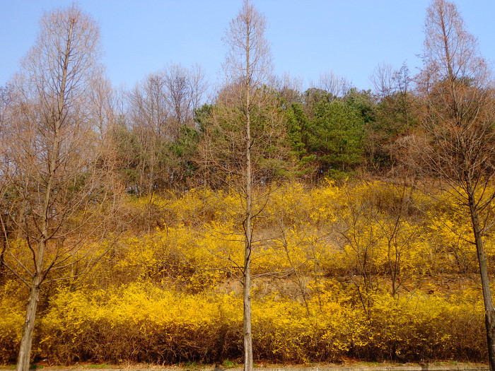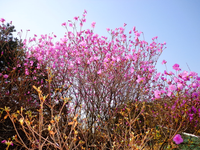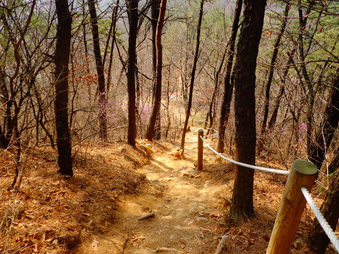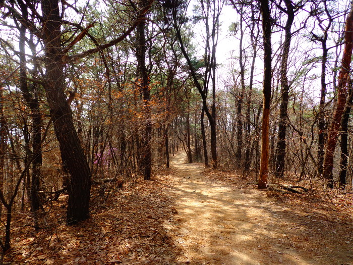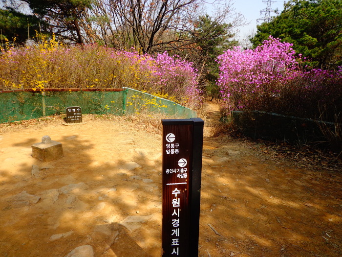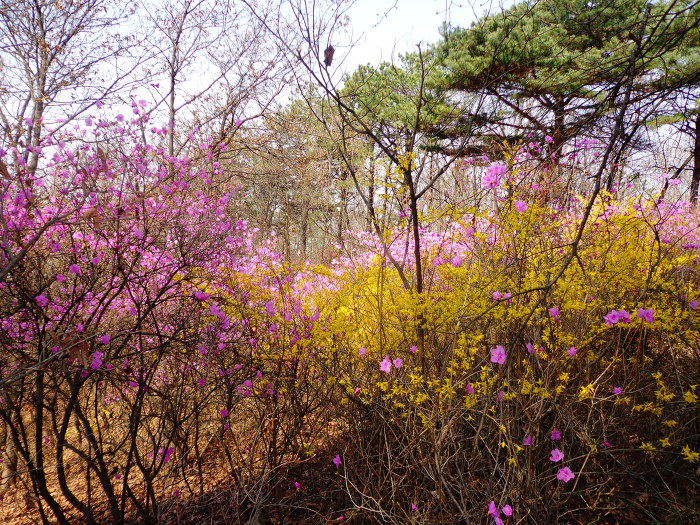 완연한 봄기운으로 개나리, 목련, 진달래와 일찍핀 벚꽃 등도 볼 수 있어서 좋았다. 꽃이 무리지어 많이 있지는 않지만, 드문드문으로라도 계속 꽃이 있어서 좋았다. 시내에 있는 산이고, 주말의 좋은 날씨 탓인지 산에는 가벼운 차림으로 다니는 사람들도 많았다.