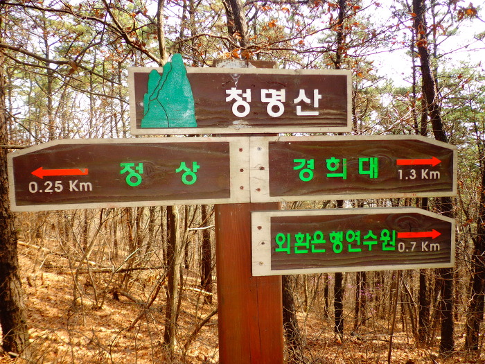 집에서 오전 10시가 지나 집에서 가까운 청명역의 4번 출구로 들어가 1번 출구로 나가므로 큰 길을 횡단했고 가까이에 있는 청명산 등산로로 산에 올르기 시작했다. 청명산은 종주해도 비교적 거리가 짧고, 큰 길을 건너 매미산 방향의 등산로는 길고, 가운데 경희대학교 용인캠퍼스를 두고 한 바퀴 돌아가는 코스이다. 경희대 정문에서부터는 시내 길로 집에까지 올 수 있었다.
