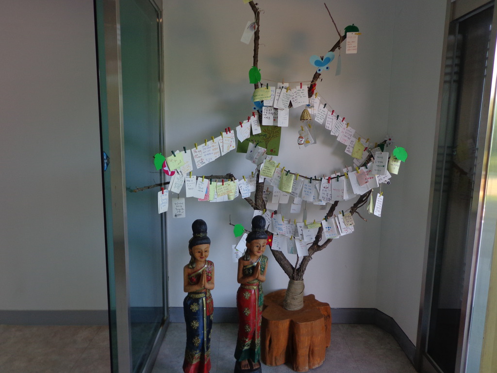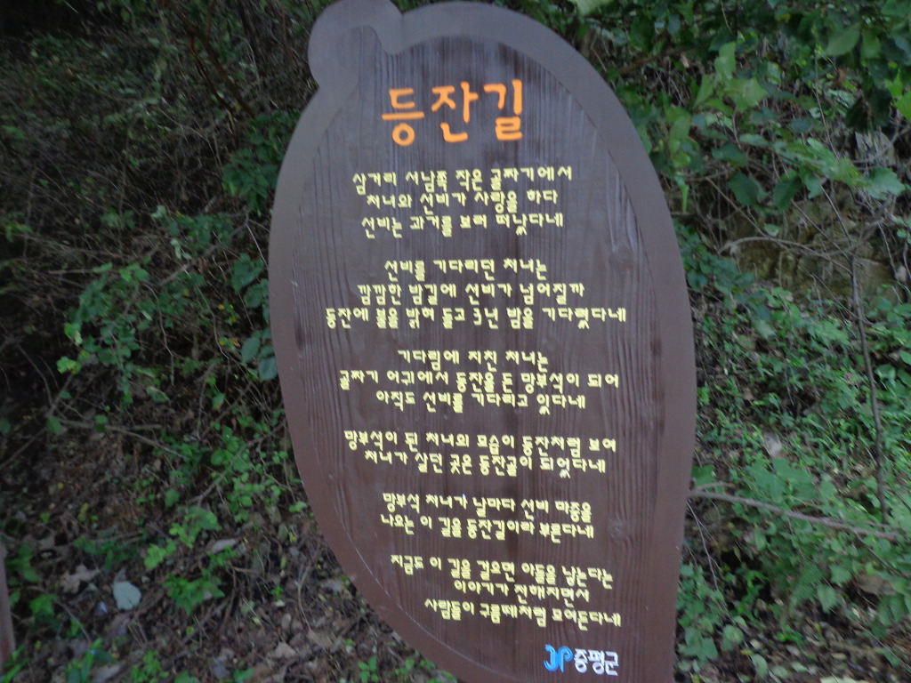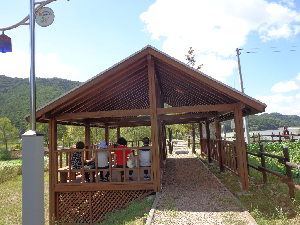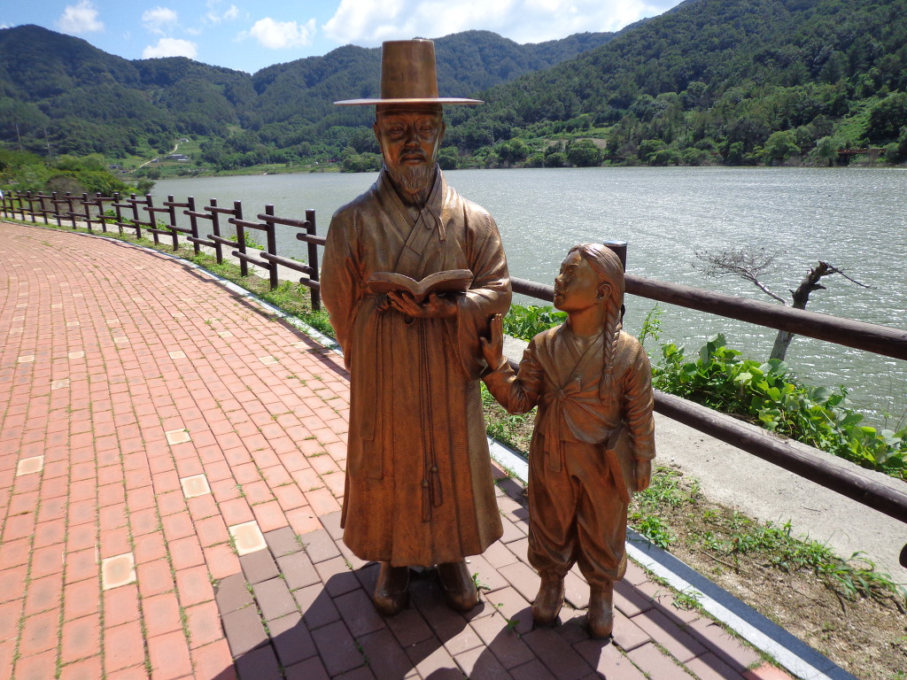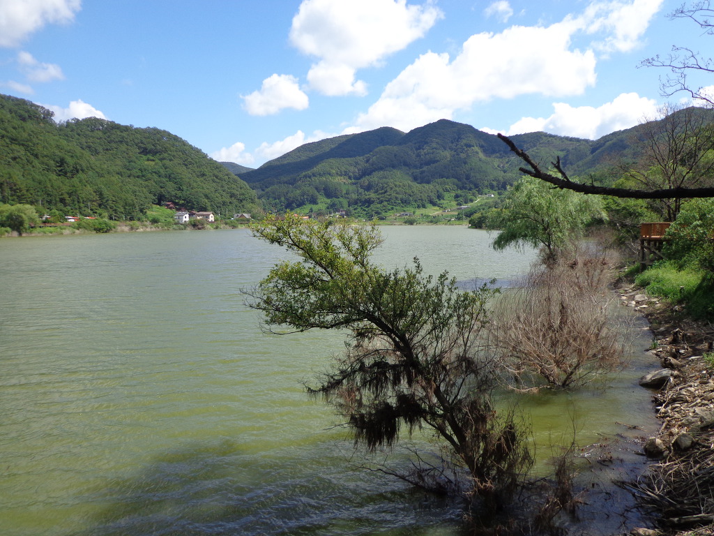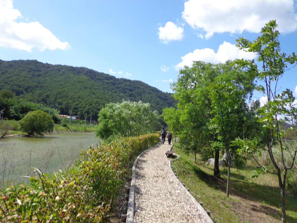 정안마을에서 점심까지 먹고, 오후 1시에 좌구산 아래 삼기저수지로 이동하여, 등잔길이라고 하는, 잘 만들어진 저수지 둘레길 2.2km를 약 50분 동안 트레킹 했다. 더운 날씨였지만 둘레길이 대부분 데크 길이었고, 바람도 불어 주었고, 경치가 좋아서인지 참가자들이 모두 걷는 것을 보았다. 저수지에서 좌구산 쪽으로 올라가면 증평의 아름다운 경치인 구름 다리도 있다고 하는데, 시간 제약으로 생략한다고 해서 서운했다. 교통이 좋지 않아 혼자서는 가기 어려운 곳인데 모처럼의 기회가 아쉬움을 주었다.