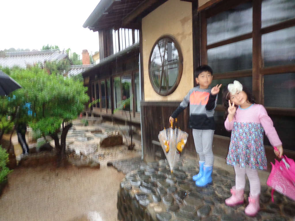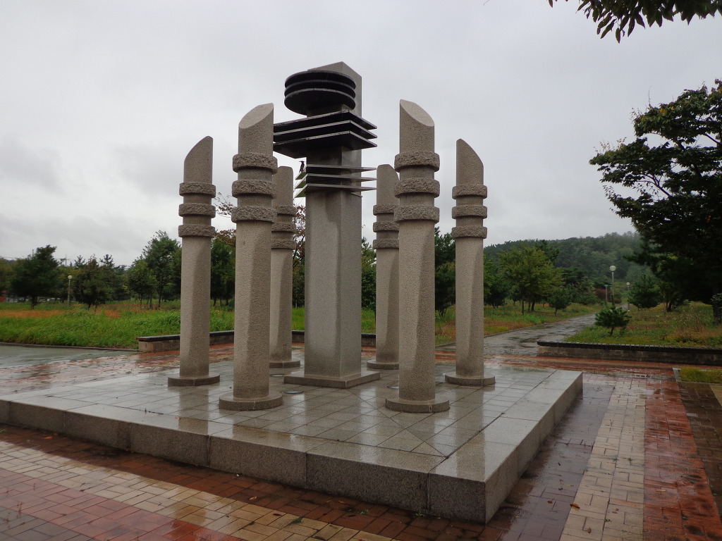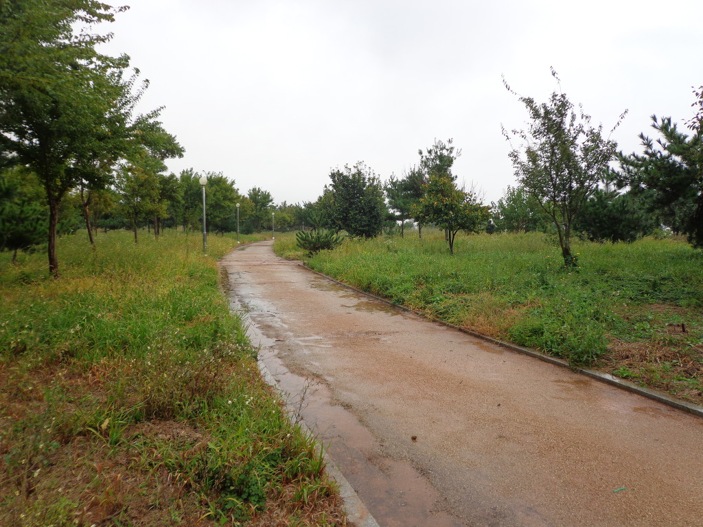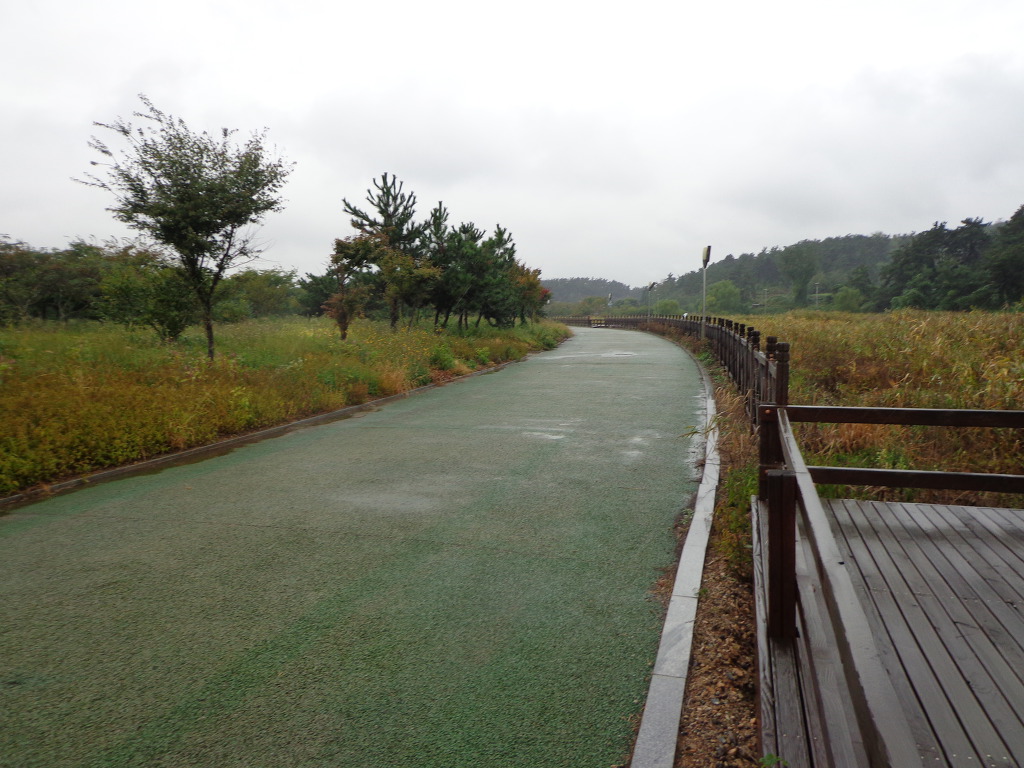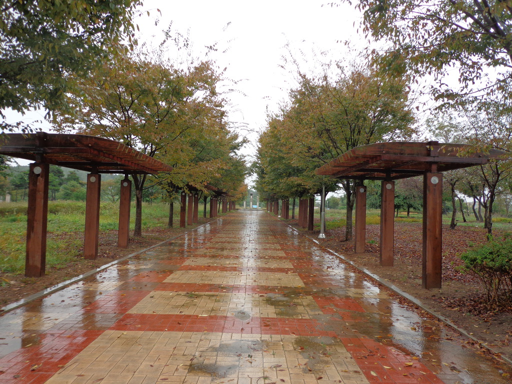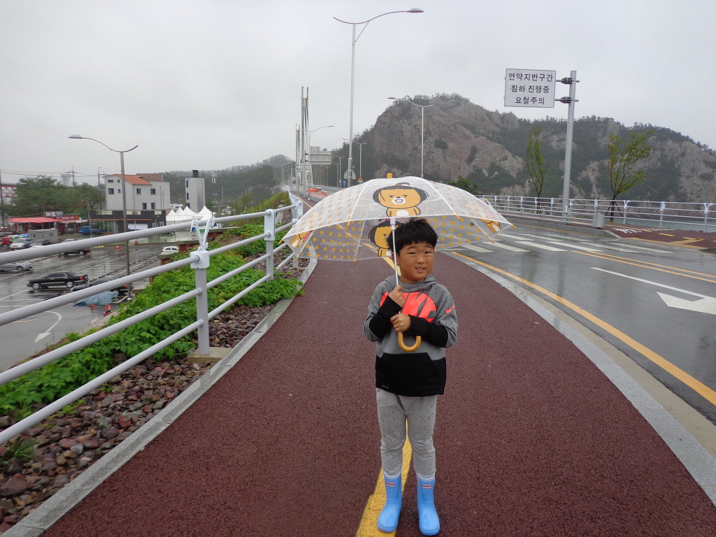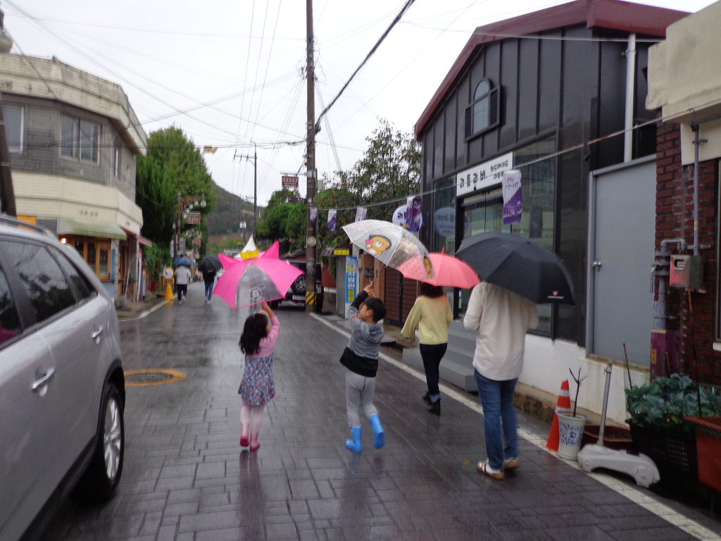 숙소 근처의 내초공원을 우산을 쓰고 산책하며.