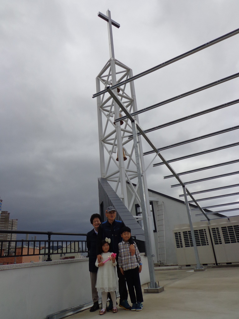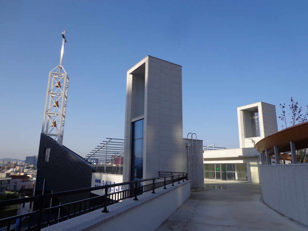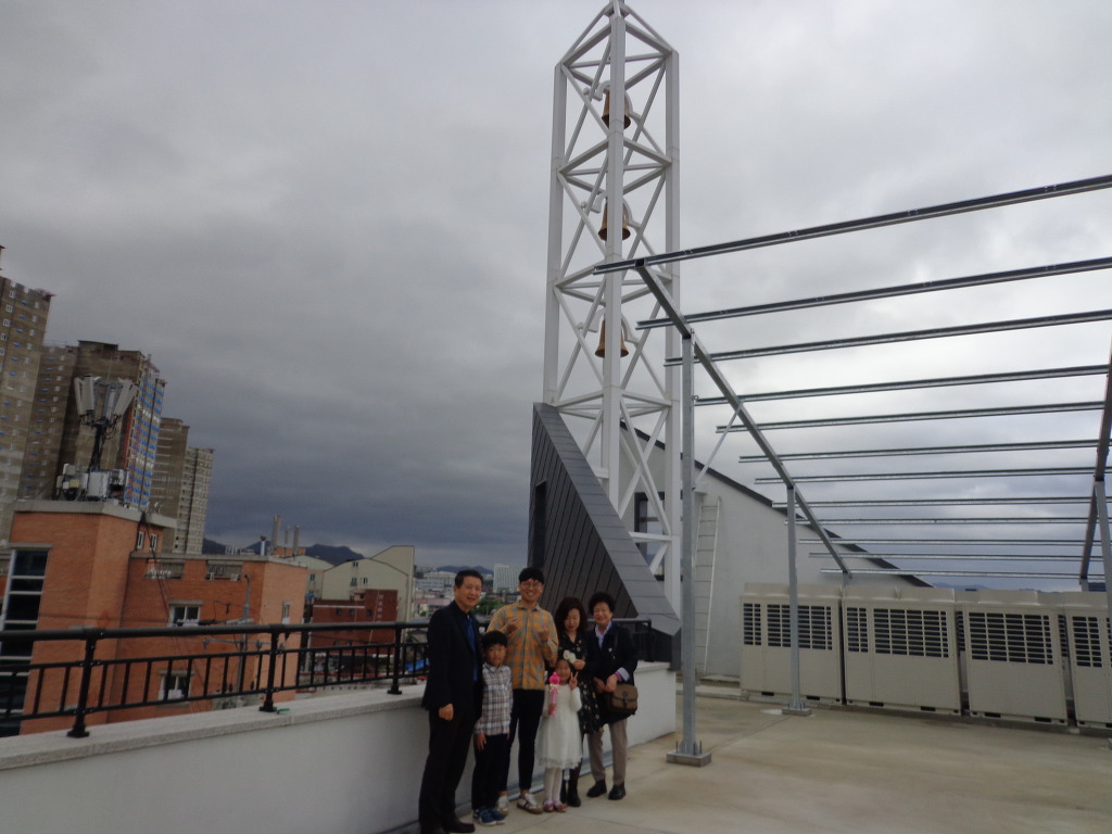 광주 계림교회 종탑. 세개의 종 모습이 우리 어머니가 포함된 설립교인 세분의 상징.