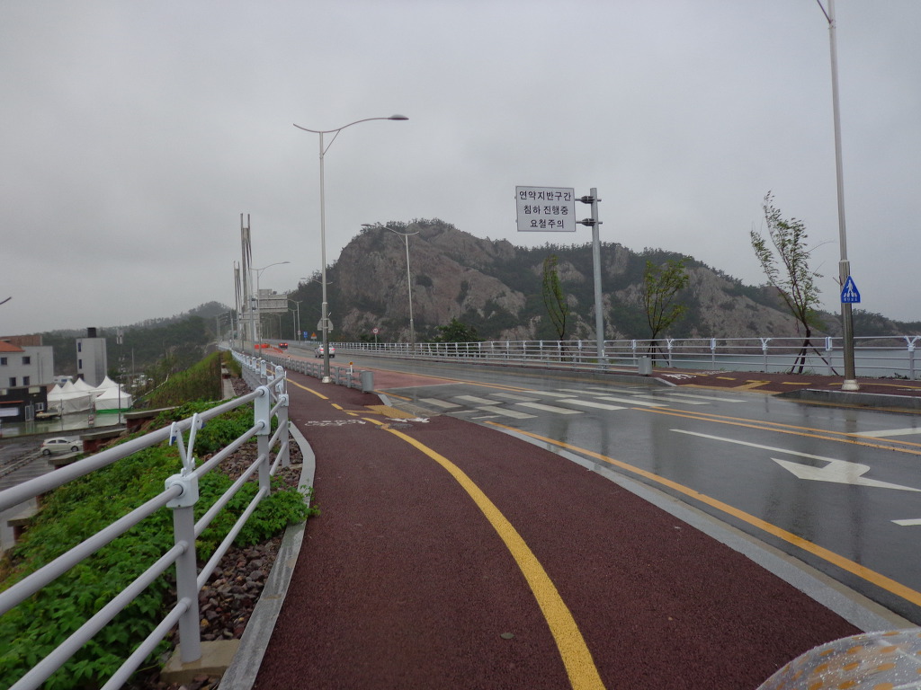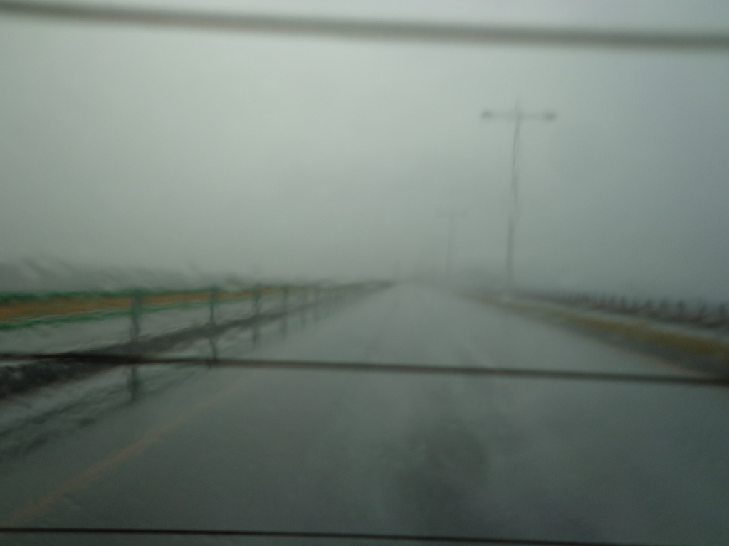 비가 많이 내리고 있는 새만금방조제를 지나면서 차 안에서 바라본 모습.