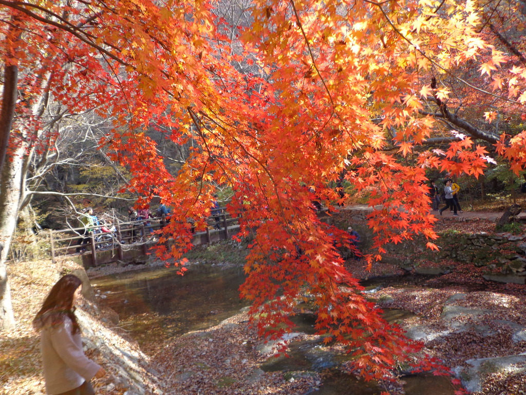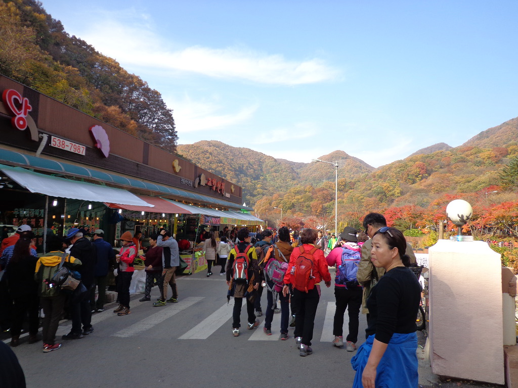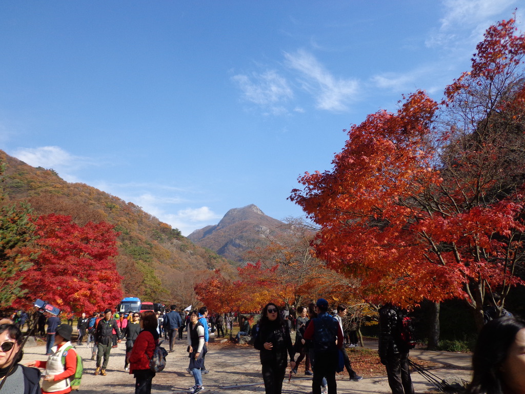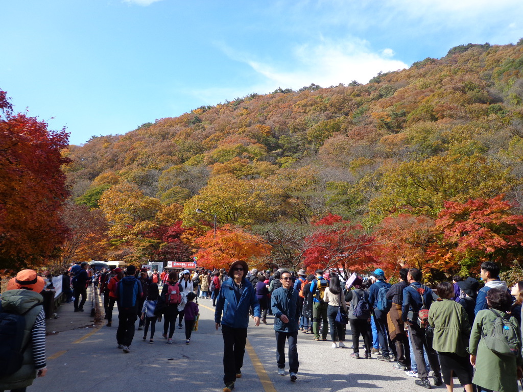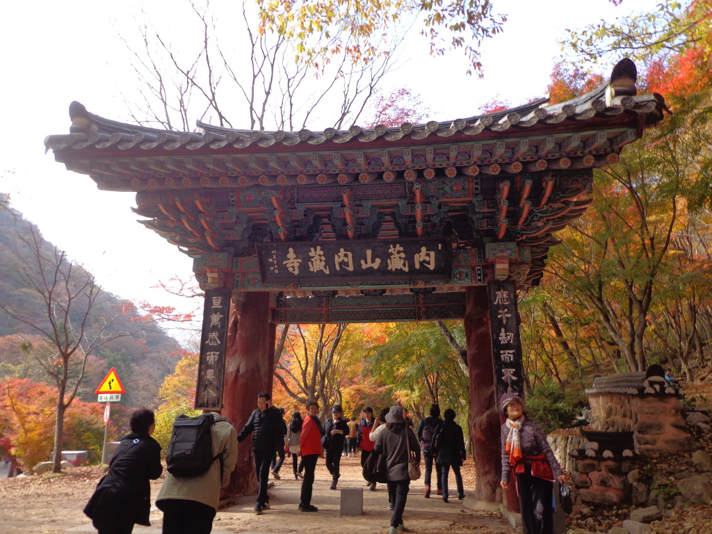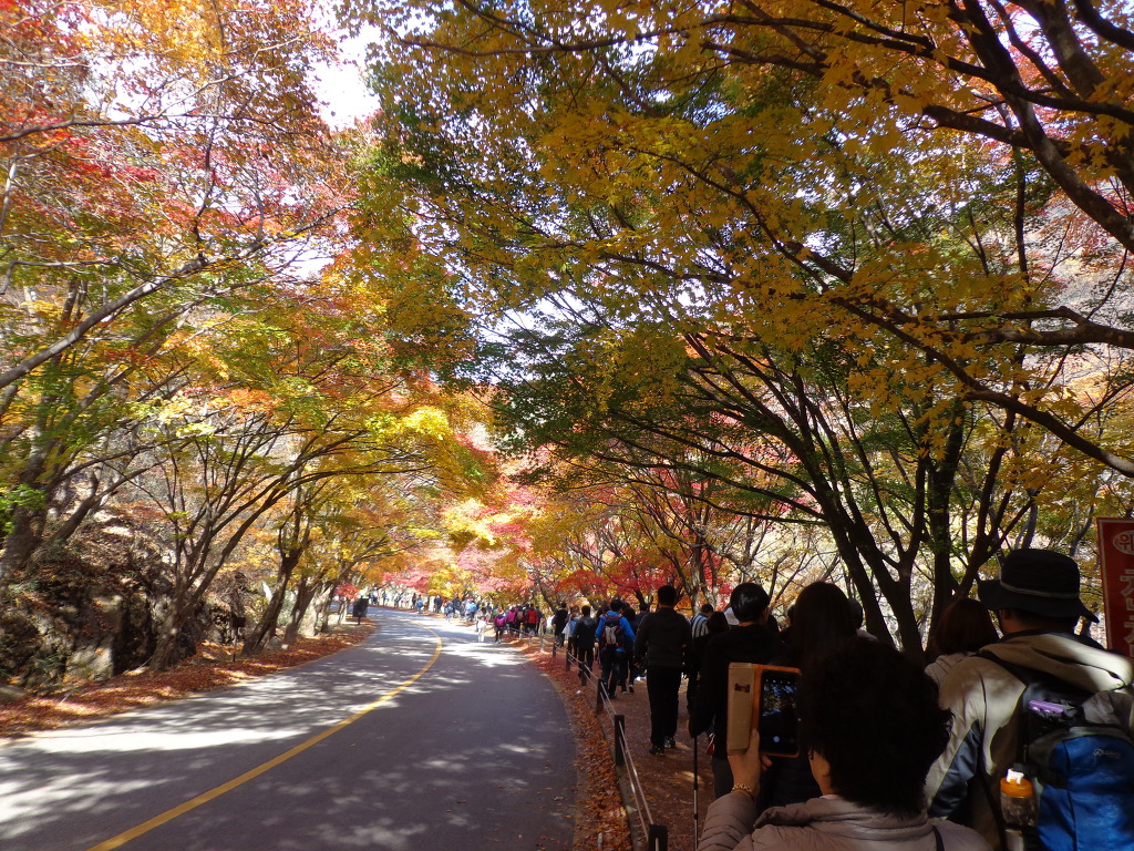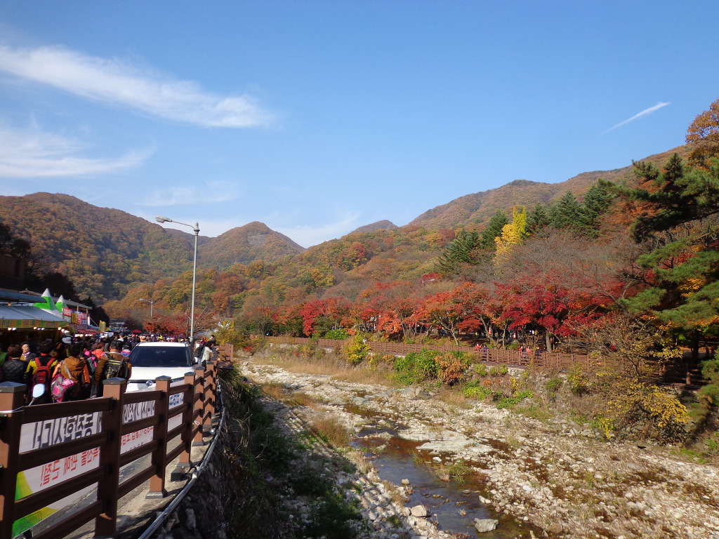 내장산에 가본 것이 오래되어 로망스 투어 여행사의 패키지(21,900원)로 다녀왔다. 옛날에 단풍이 아름다운 기억을 가지고 갔는데, 기대에 미치지 못했다. 자동차와 사람이 너무 많아졌다는 것만 확인한 것 같았다. 불이나게 사람을 실어나르는 셔틀버스 좋은 일만 하는 것 같았다. 내장사에 가까워지면서 차가 많이 밀려서 예정 시간 11시보다 한 시간 늦게 12시에 도착하여 오후 3시 30분까지 자유 시간이 주어져서, 나는 내장사 절까지 왕복 걸어다녔다. 내장사까지 약 3km정도 떨어진 입구 삼거리, 시내버스 정류소 근처에서, 타고 간 버스에서 내렸기에 셔틀을 이용하는 것이 편리했지만, 걸어야 단풍 구경이 되겠기에 걸어다녔다. 셔틀을 이용했으면 산에 약간이라도 오를 수도 있었겠다는 생각을 나중에 했다. 산에 오르지 않고 평지로 절까지만 걸은 것이 아쉬움을 주었다.
