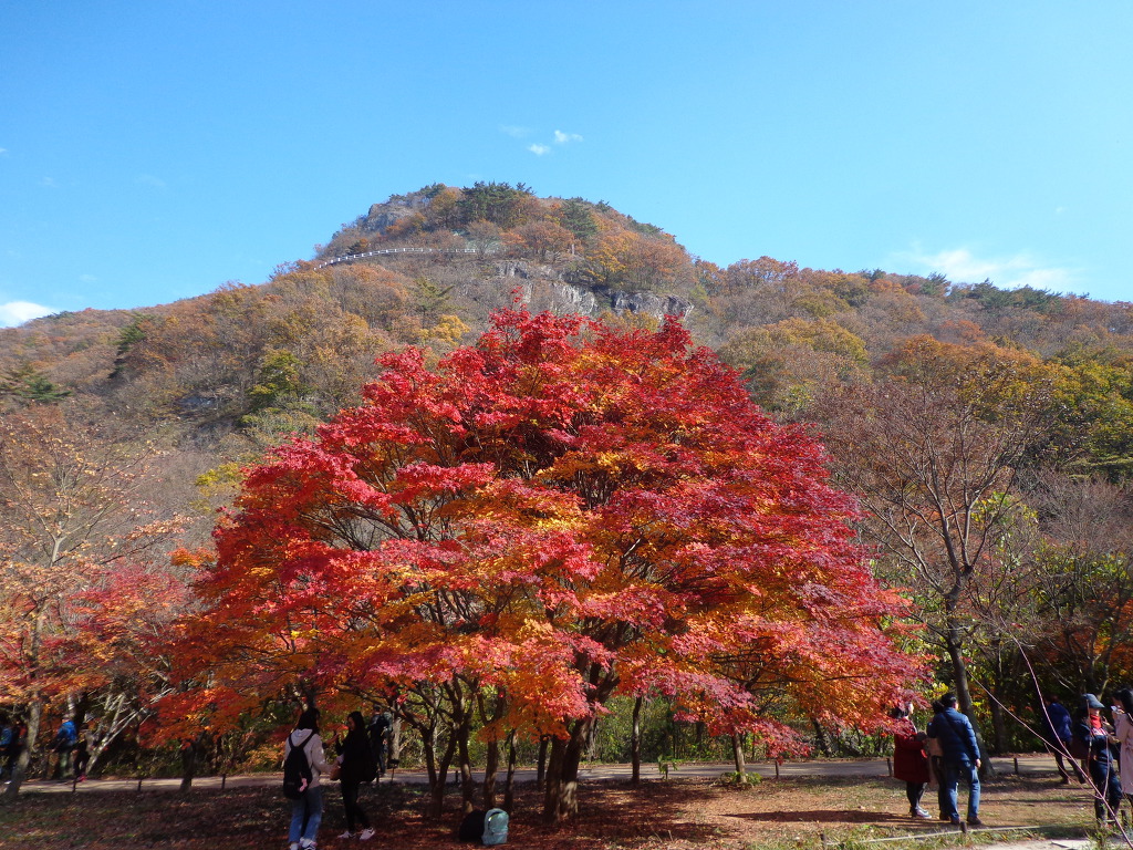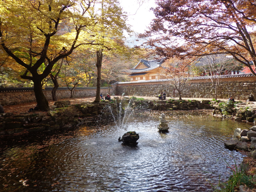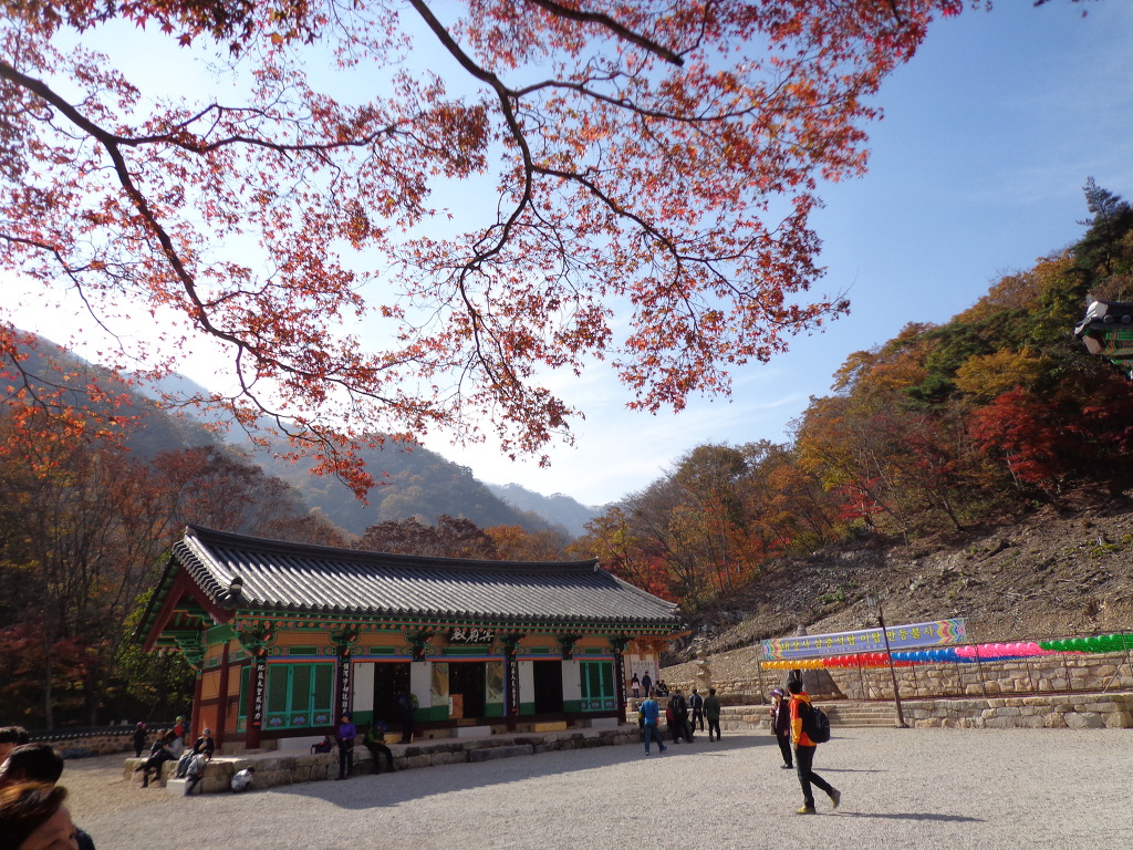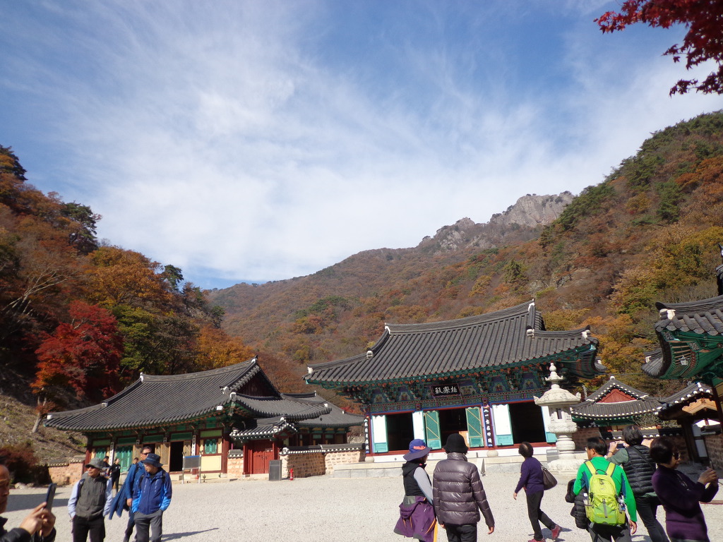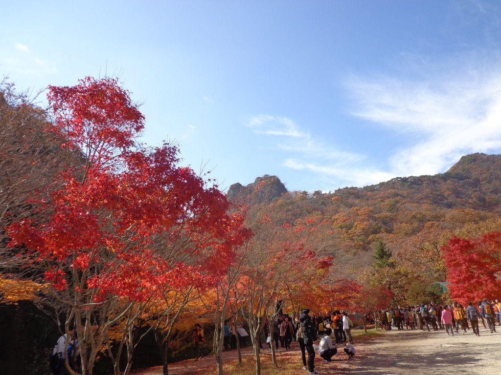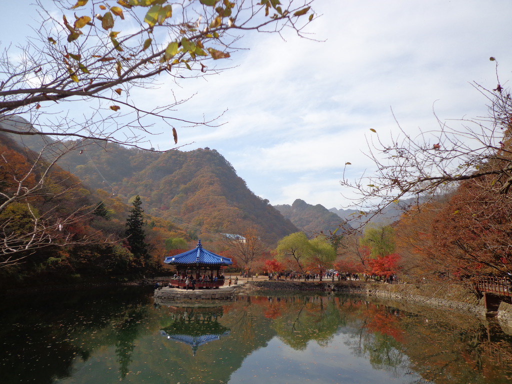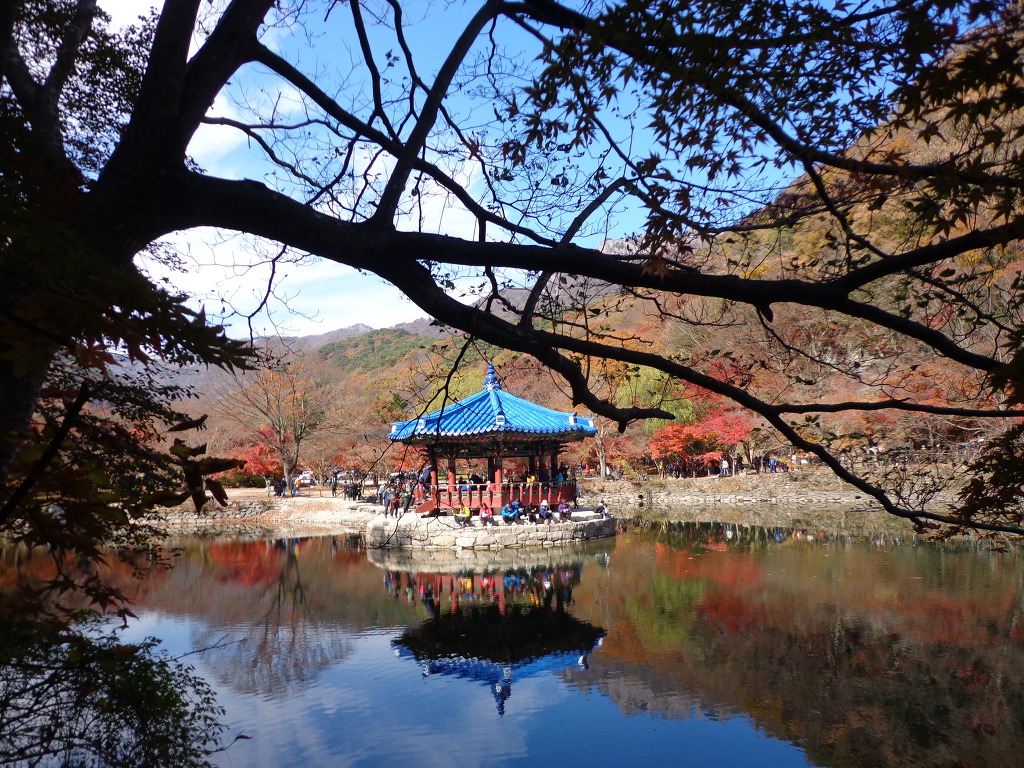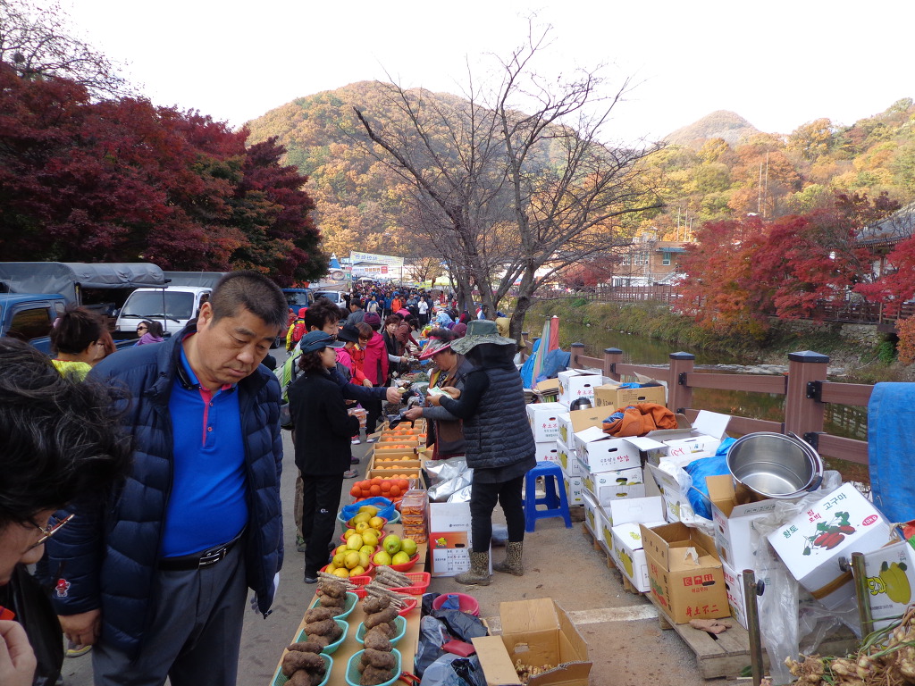 내장산에 가본 것이 오래되어 로망스 투어 여행사의 패키지(21,900원)로 다녀왔다. 옛날에 단풍이 아름다운 기억을 가지고 갔는데, 기대에 미치지 못했다. 자동차와 사람이 너무 많아졌다는 것만 확인한 것 같았다. 불이나게 사람을 실어나르는 셔틀버스 좋은 일만 하는 것 같았다. 내장사에 가까워지면서 차가 많이 밀려서 예정 시간 11시보다 한 시간 늦게 12시에 도착하여 오후 3시 30분까지 자유 시간이 주어져서, 나는 내장사 절까지 왕복 걸어다녔다. 내장사까지 약 3km정도 떨어진 입구 삼거리, 시내버스 정류소 근처에서, 타고 간 버스에서 내렸기에 셔틀을 이용하는 것이 편리했지만, 걸어야 단풍 구경이 되겠기에 걸어다녔다. 셔틀을 이용했으면 산에 약간이라도 오를 수도 있었겠다는 생각을 나중에 했다. 산에 오르지 않고 평지로 절까지만 걸은 것이 아쉬움을 주었다.