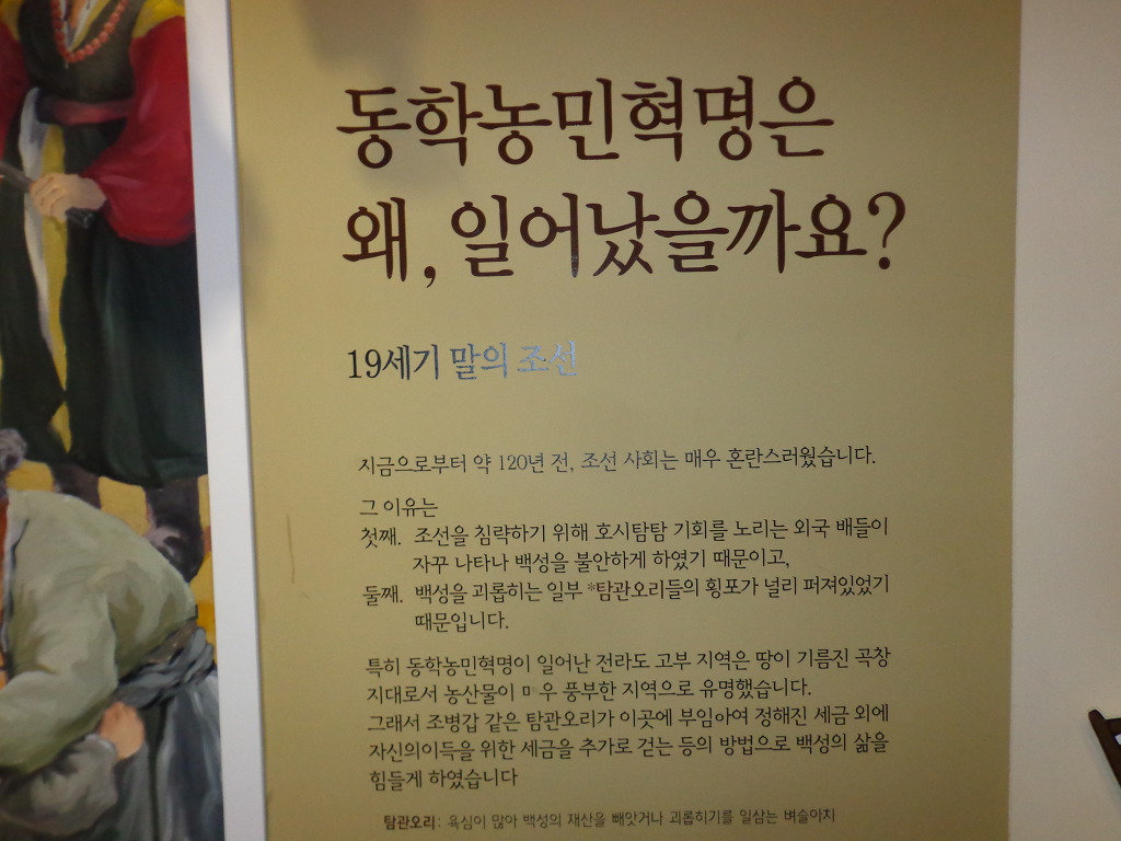 내장사에서 오후 3시 30분에 출발하여 동학농민혁명기념관에 갔다. 30분 정도 둘러보는 시간을 가졌다. 기념관만 보는 것으로 했는데, 기념관 주변 넓은 지역에 동학과 관련된 유적이 또 있는 것 같았다. 시간에 제약을 받아서 잠시 들린 것이 오히려 아쉬움만 주었다. 다시 기회가 주어진다면 유적지 답사를 해 보는 것도 좋을 것 같았다. 정읍과 김제, 부안 지역 등지를 지나면서 넓은 들을 많이 보고 다녔다. 10월에 다닐 때는 온 들이 노랗게 물들어 있었는데, 오늘은 벼가 모두 없어지고, 소에게 먹이기 위해 볏짚을 둥글게 하얀 것으로 싸서 들판에 가지런하게 정렬해 놓은 것을 많이 보았다. 자동차 안에서 들판을 사진 찍어보았다. 풍요로움이 느껴졌다. 마침 서쪽으로 넘어 가는 해가 차창에 곱게 보여 그것도 찍었다. 차를 타고 다니면서 차창밖의 아름다운 경치가 여행의 묘미를 더해 주어서 좋았다. 차가 밀리는 구간이 있어서 집에 저녁 늦게 9시경에 도착했다.