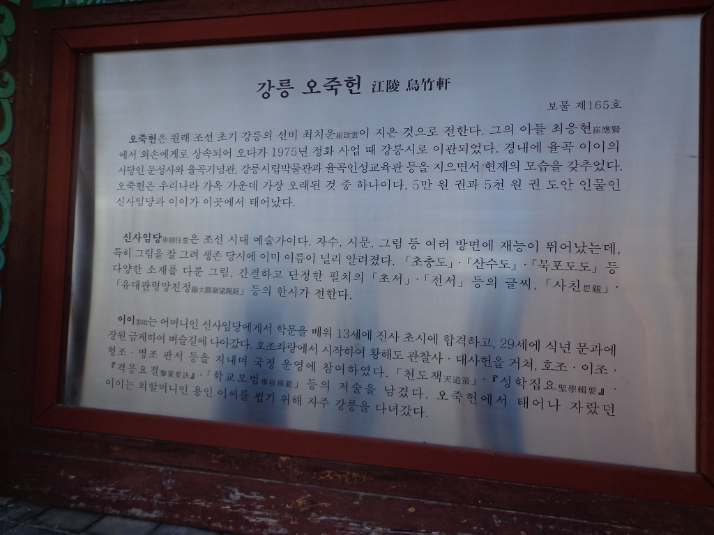 양양의 남애항이 다음 목적지였는데, 경포에서 직접 가는 버스가 없어서 버스 환승을 위해 오죽헌에 갔는데, 시간이 있어서 오죽헌 경내를 돌아보았다. 오래전에 갔을 때와는 전혀 다른 모습의 오죽헌이었다. 아산의 현충사를 생각하게 했다. 율곡과 사임당 동상을 비롯해서 기념관, 인성교육장, 시립박물관 등 많은 건물들이 있었고, 주변에 한옥마을도 있고, 오죽헌 경내가 현충사 못지않게 넓게 조성되어 있었다. 이번 여행계획에 없었는데 다시 간 것을 잘했다는 생각이었다. 오죽헌 버스정류장에서 시내버스로 주문진까지 간 후, 다시 버스로 환승하여 양양의 남애항으로 갔다. 계획은 경포에서 1박하고 다음날 해돋이를 보려고 했는데 시간에 여유가 있어서, 남애항에서 숙박하고 거기서 해돋이를 보기로 했다.