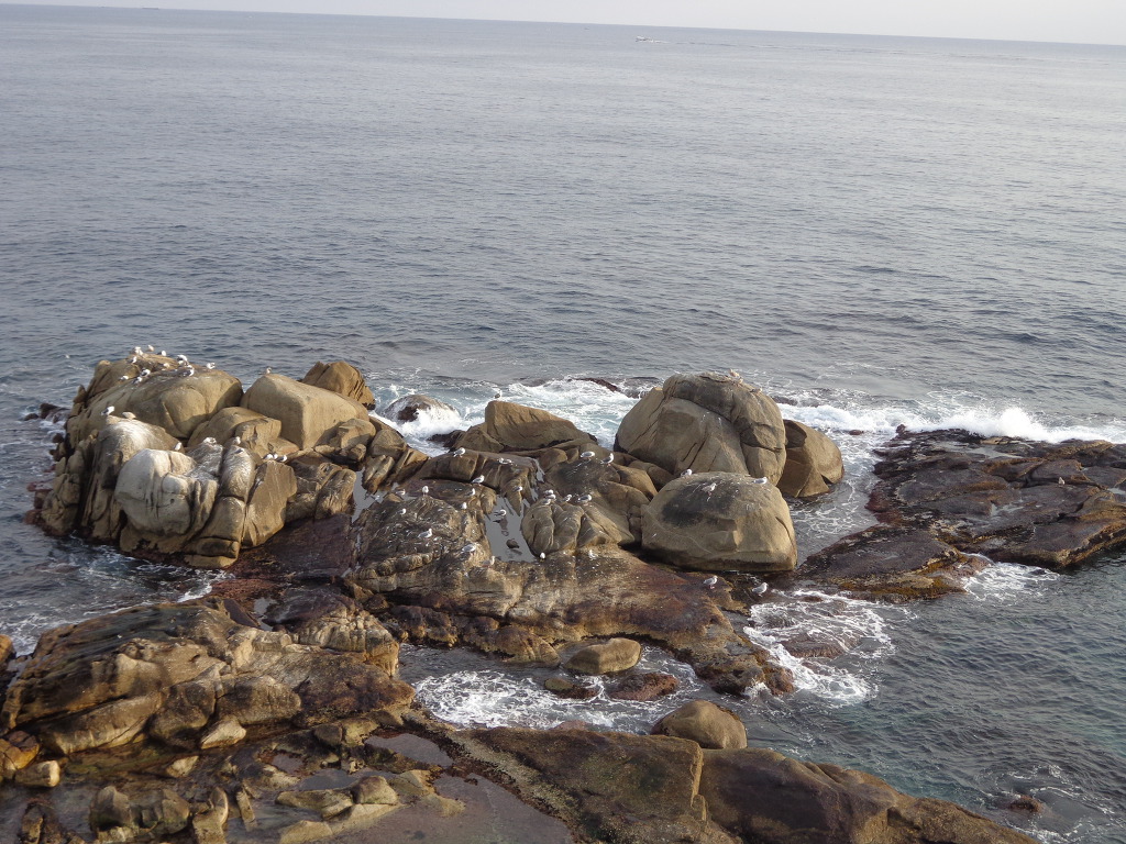남애항의 전망대에 올라 주변 경치를 본 후, 다음 목적지인 죽도해변까지는 해변 길을 따라 걸었다. 해파랑길 41구간이고 낭만의 해변길이라 했다. 아내와 모래를 밟으며 2시간 정도 걸어서 죽도항까지 갔다. 우리 둘만이 동해의 넓은 바다를 안고 모래밭을 걸으며 마음껏 소리 높여 찬양도 하고, 소리도 지르면서 걸을 때, 마음이 탁 트이고 호흡이 시원함을 만끽할 수 있었다. 마을 앞을 지날 때 트럭에서 팔고 있는 사과를 샀는데, 5,000원에 15개가 봉지에 들어 있었다. 모래밭에 앉아 사과를 먹었고 껍질로 우리의 흔적을 남겼다. 배낭이 무거워졌고, 다 먹지 못하고 6개를 남겨서 집에까지 가지고 왔다. 죽도전망대에 먼저 오른 후, 죽도정, 신선바위를 비롯한 바닷가의 예술품인 바위들을 보면서 죽도암을 지나 버스 정류장으로 갔다.