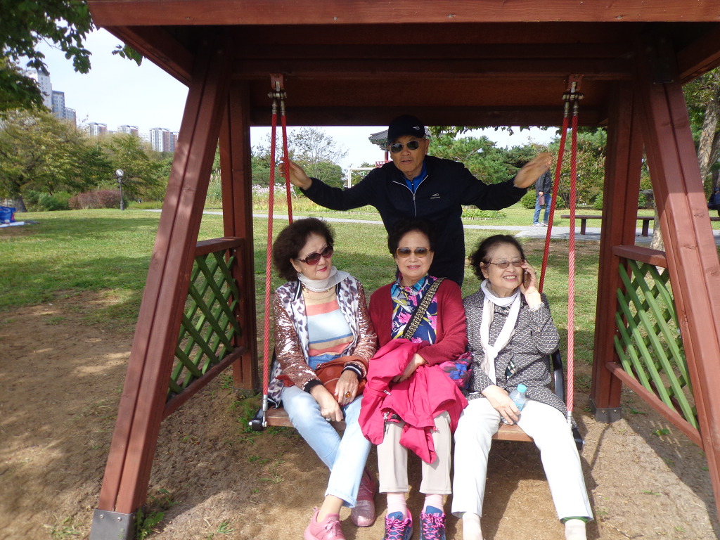 미국에서 온 동생과 독일에서 온 여동생과 서울 누나와 우리부부, 그리고 해지가족 넷, 모두 9명이 스타렉스 12인승 승합차를 렌트해 가지고 참으로 즐거운 여행을 무사히 하고 왔다. 8남매 중에 생존해 있는 4남매가 함께하는 여행이었고, 딸의 배려로 이루어진 여행이었다. 자동차 운전은 Best driver인 동생과 사위가 하고 다녔다. 아무런 거리낌이 없는 친밀한 가족여행이었다. 해지가 숙소예약과 자동차 렌트를 했고 식사비는 누나와 동생과 내가 번갈아가며 부담했다. 동생이 많이 부담한 편이었다. 여행지계획은 내가 했고 서로 의논하며 약간의 수정도 했다. 여행계획표를 복사해서 한 장씩 가지고 다니며 참고로 했다. 여행지가 첫날 오전에 경기도자박물관 관광 계획이 있었는데 출발이 늦어져서 생략되었고, 화담숲에서 충분한 시간을 보내며 산책했고, 가까이에 이틀 밤을 숙박하게 된 곤지암리조트의 L_빌리지가 있어서 편리했다. 둘째 날 가평 남이섬을 가평과의 경계지역인 춘천에 있는 제이드가든 수목원으로 바꾸었고, 쁘띠프랑스는 계획대로 갔는데, 그 곳에는 한국인보다 외국인 관광객이 더 많은 것 같았다. 셋째 날 도라산평화공원을 가려고 했던 것을 아프리카돼지열병 유행으로 출입이 통제되어 가지 못하고 임진각평화누리공원에서 충분히 시간을 보낸 후, 오후시간은 북한 땅을 조망할 수 있는 오두산통일전망대에 올라 임진강 건너 가까이 보이는 북한지역을 무료 제공된 망원경으로 많이 바라보았고, 파주의 관광지로 알려진 헤이리문화예술마을도 돌아보았다. 마지막 날인 넷째 날에는 감악산출렁다리에 올라보려고 갔는데, 주차장에서 사진으로만 보고 와야 했다. 15분 이상 거의 급경사 길을 올라야 되고 시간이 많이 소요될 것 같아 돌아섰고, 대신 일산호수공원에 들려서 호숫가를 산책하며 시간을 보냈다. 렌트한 자동차를 오후 6시까지 반납하게 되어 있어서 오래 있지는 못하고 돌아와야 했다.