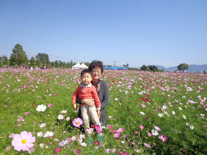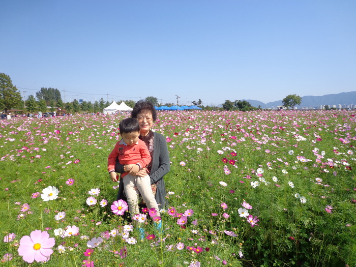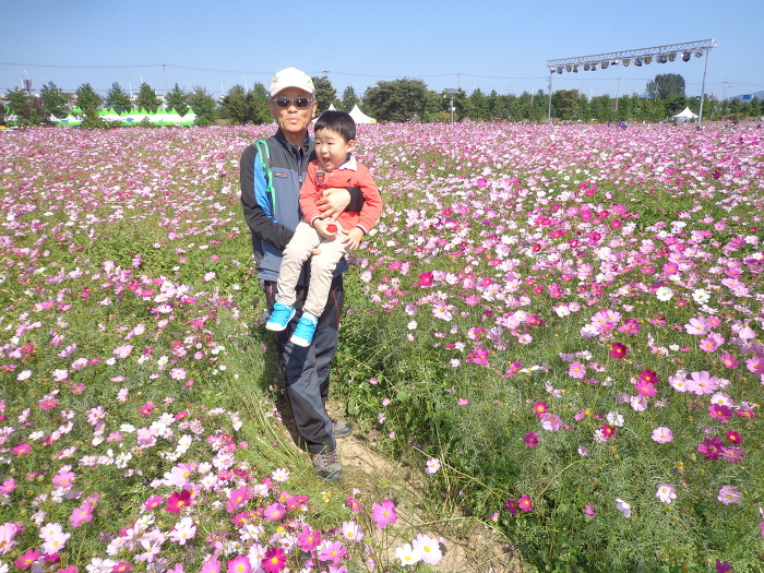 서울 여의도에 있는 호텔에서 예정에 없던 숙박을 하게 되어, 일요일인데도 교회에 가기가 어려워, 구리시 한강공원의 코스모스축제장으로 갔다. 손자를 데리고 다니는데 사진 찍기를 싫어하는 손자와 사진 찍는 것이 어려웠다. 여기저기 세밀하게 관찰을 하는 손자의 질문에 답해 주면서 잘 놀아주는 것이 고마워서 손자와 즐겁게 보낸 하루였다.