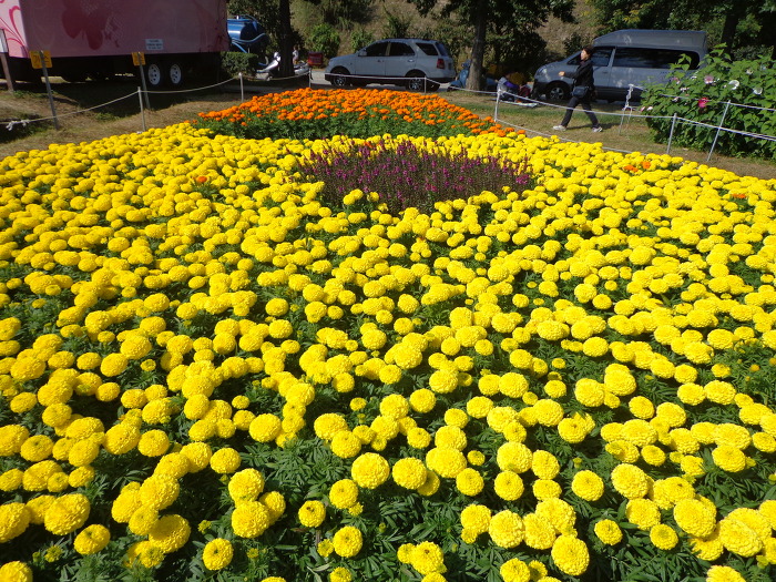 어제 인천의 국화축제장과는 달리 시원한 한강변에 화창한 날씨와 싱싱하게 피어있는 꽃들이 보기 좋았다. 휴일의 좋은 날씨탓인지 자동차들이 홍수를 이루고 있는 것도 장관이었다. 좋은 계절 휴일에, 나들이 하는 사람들이 갈 수 있는 곳이 더 많아서 분산되었으면 좋겠다는 생각을 했다. 한 곳으로 많은 사람이 몰려드는 것은 여러가지로 폐단이 많을 것 같았다.