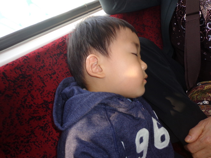 돌아오는 전철 안에서 잠에 푹 빠진 손자녀석.