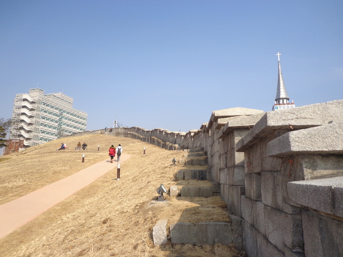 성곽이 없는 곳을 지나 갔다.
