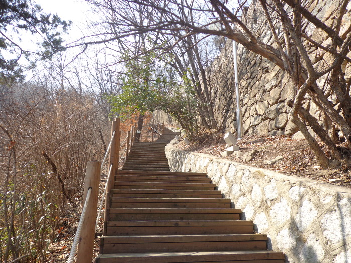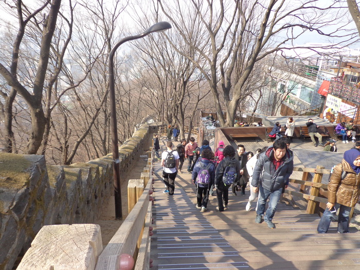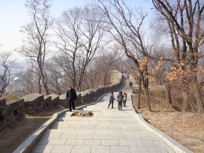 남산에서 숭례문 방향으로 내려가는 성곽 길.