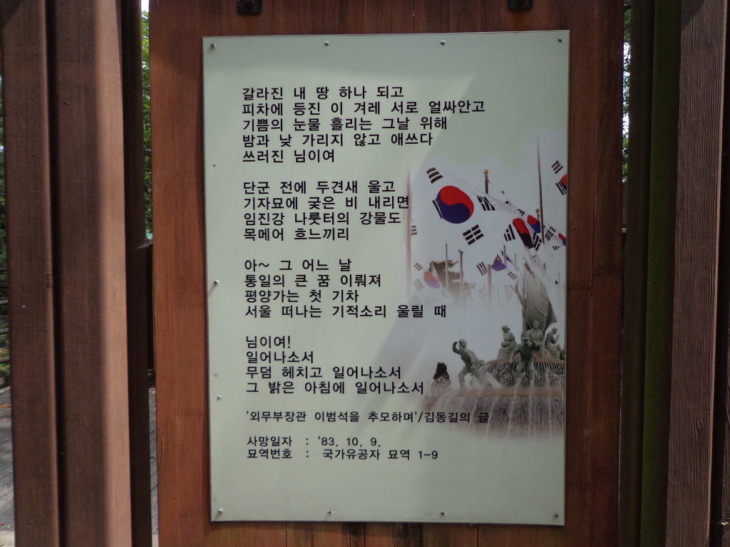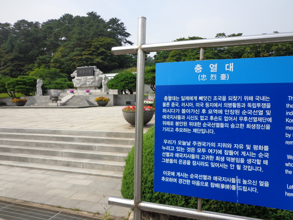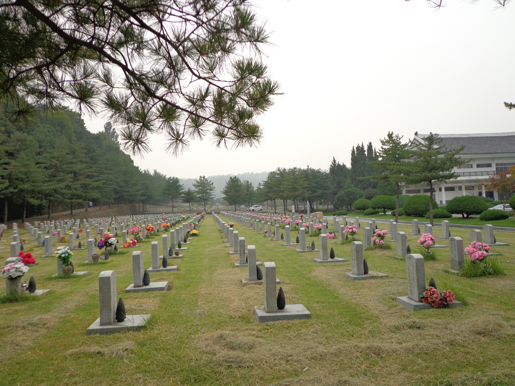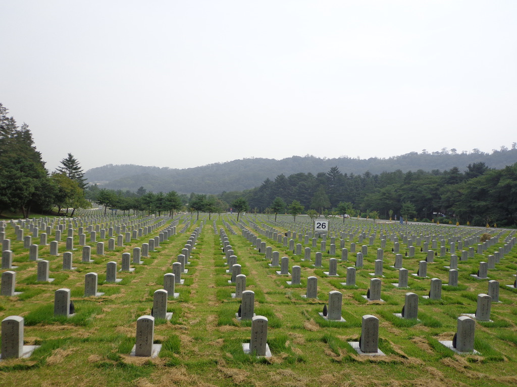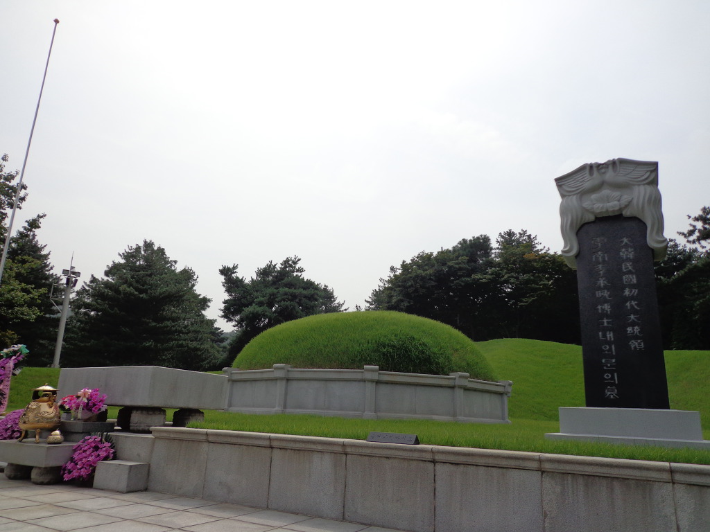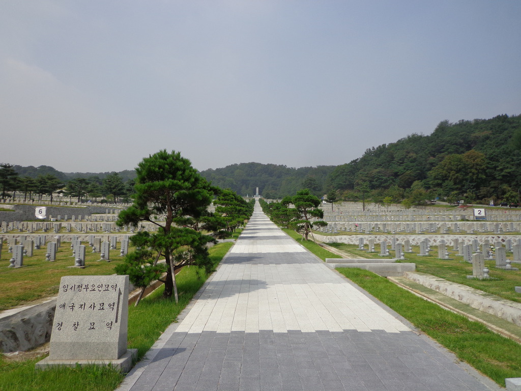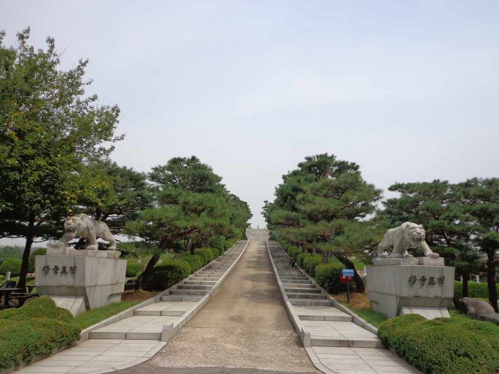 오늘의 코스는 지하철 4호선 동작역에 내려서 8번 출구로 나가 현충원 정문에서 부터 1, 2, 3, 4, 5묘역 옆길로 해서 애국지사묘역과 충열대를 지나 비교적 최근에 안장된 김영삼대통령묘에 갔다. 높은 곳에 넓은 면적을 찾이한 묘로 조성되어 있었다. 다음에 박정희대통령부부의 묘를 보고 김대중대통령의 묘에 갔다. 대통령의 묘 가운데 김대중대통령의 묘가 가장 좁은 면적이고 다른 곳에 비해 주차장 시설도 없어서 마음이 서운 했다. 김대중을 대통령 되게 하기 위해서 부지런히 투표했던 생각이 나서 묘 앞에서 사진을 찍었다.