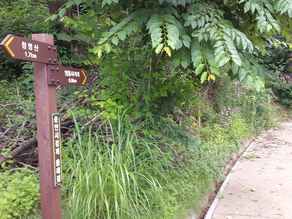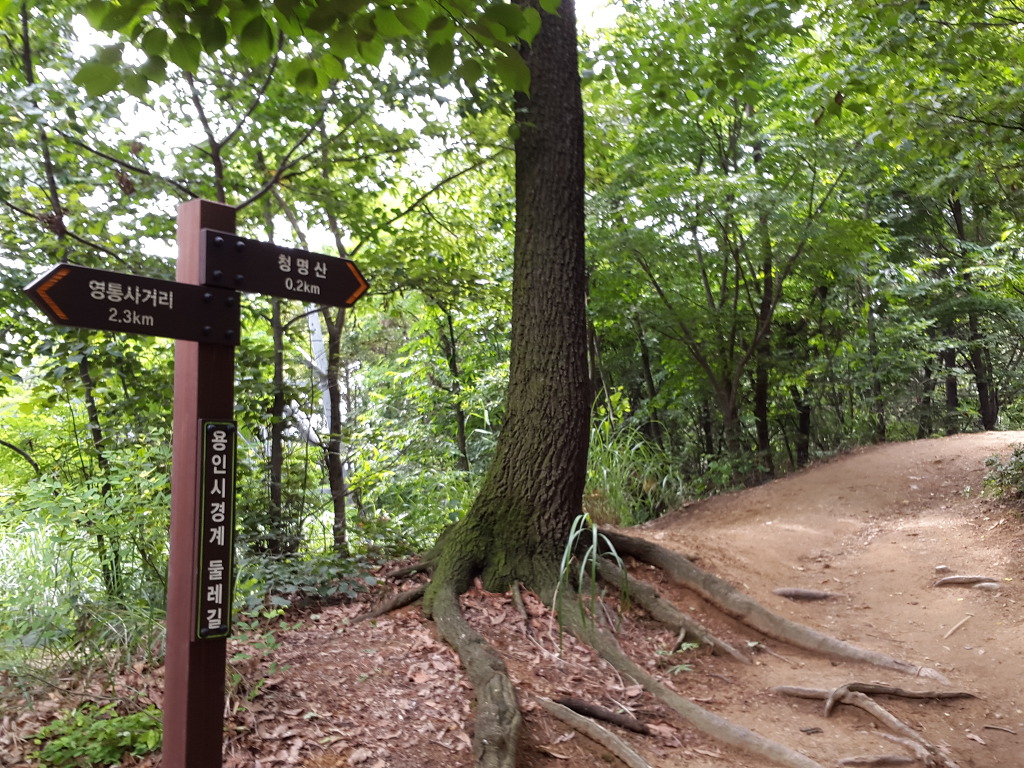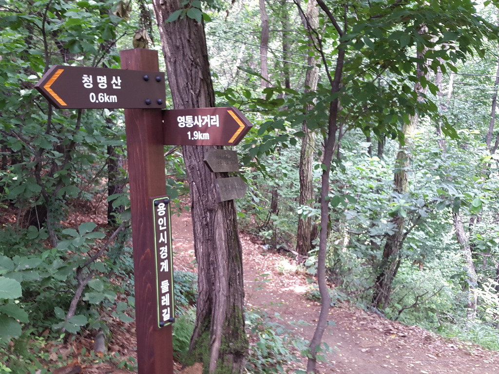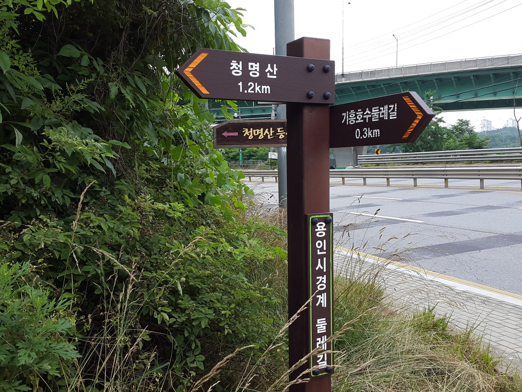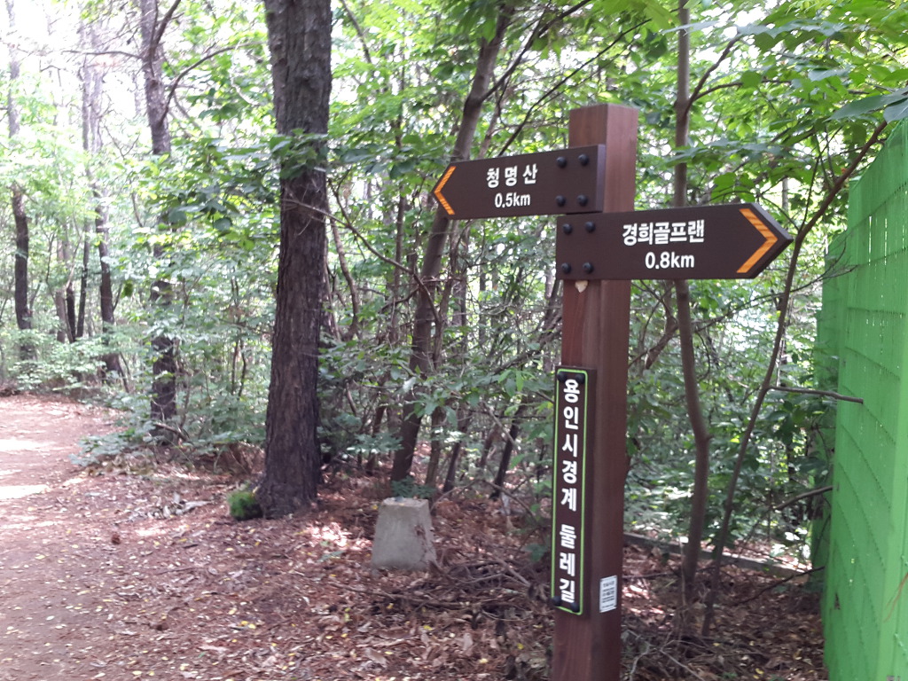 청명산 산책로를 걷다가 새롭게 용인시경계둘레길이라는 안내표시 기둥들이 보여서, 그 시발점으로 가서 사진을 찍으며 걸었다. 시발점은 청명산에서 매미산으로 건너가는 하나은행연수원이 있는 자동차길 도로변에서부터 시작했다. 집에서 오전 9시 30분경 출발하여 약 1시간을 걸어서 시발점으로 갔다. 이후 표지판을 보며 청명산 정상을 지나 청명마을 2단지아파트 가까이 삼거리에서 우측으로 가서 자동차도로 건너편 청명산으로 갔다. 산책로를 따라 걸어서 청명산과 자은공원의 경계가 되는 육교 건너에서, 우측 계단으로 자동차도로로 내려가서 큰길을 따라 영통사거리까지 이어지는 둘레길을 확인했다. 새로운 길이 아니고 그 동안 가끔 걸었던 길인데, 새로운 이름이 붙은 표시판을 보고 다시 걸어본 것이다.