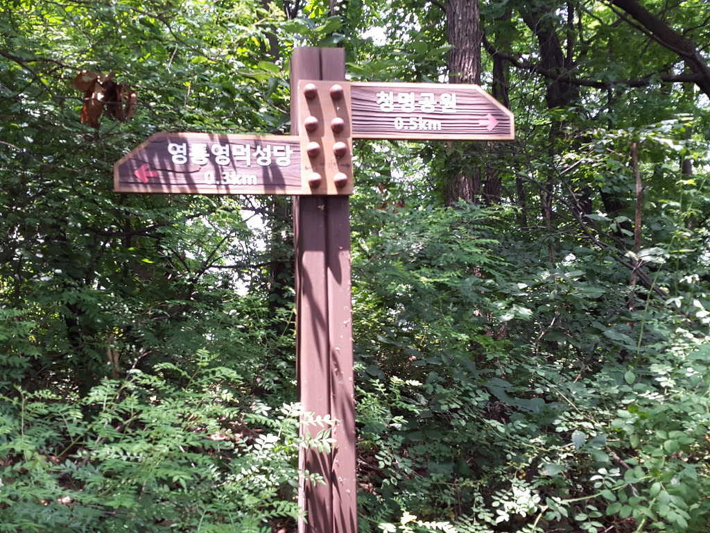자동차 길을 따라가는 길은 가지 않고 다시 육교로 올라와서 자은공원둘레길을 걸어서 영덕천으로 갔다. 흥덕 유아 숲 체험공원이 있는 곳으로 하산하여 영덕천으로 갔다. 처음 걸어본 길이다. 다양하게 산책로가 많음을 확인해본 것이 되었다. 영덕천에서 덕골공원으로 올라가 덕골공원둘레길과 샘골공원둘레길을 걸어 영통빌리지를 지나 귀가했다. 자은공원, 덕골공원, 샘골공원 둘레길은 여러 번 걸었기에 익숙한 길이다. 오전에는 구름이 많았으나 오후가 되면서 해가 비치고 30도 가까이 되는 더운 날씨여서 땀을 많이 흘렸다. 천천히 걸으며 휴식을 많이 했고, 높지 않은 야산 길이 대부분이기에 걸을 수 있었다. 날씨가 더워서인지 산책로에 사람이 드물었다. 아직도 장거리를 걸을 수 있음에 감사하며 집에 오후 4시가지나 도착했다.