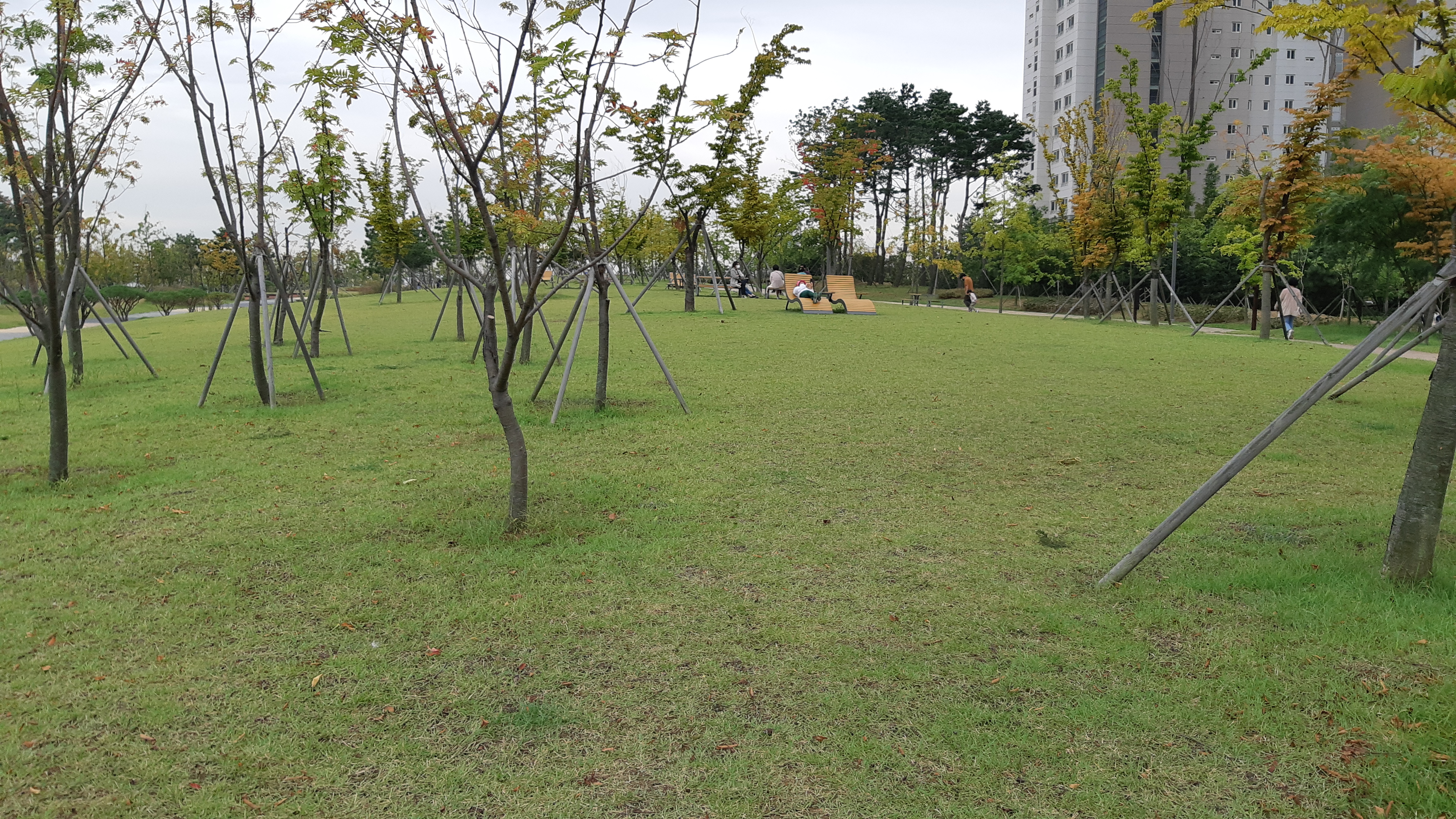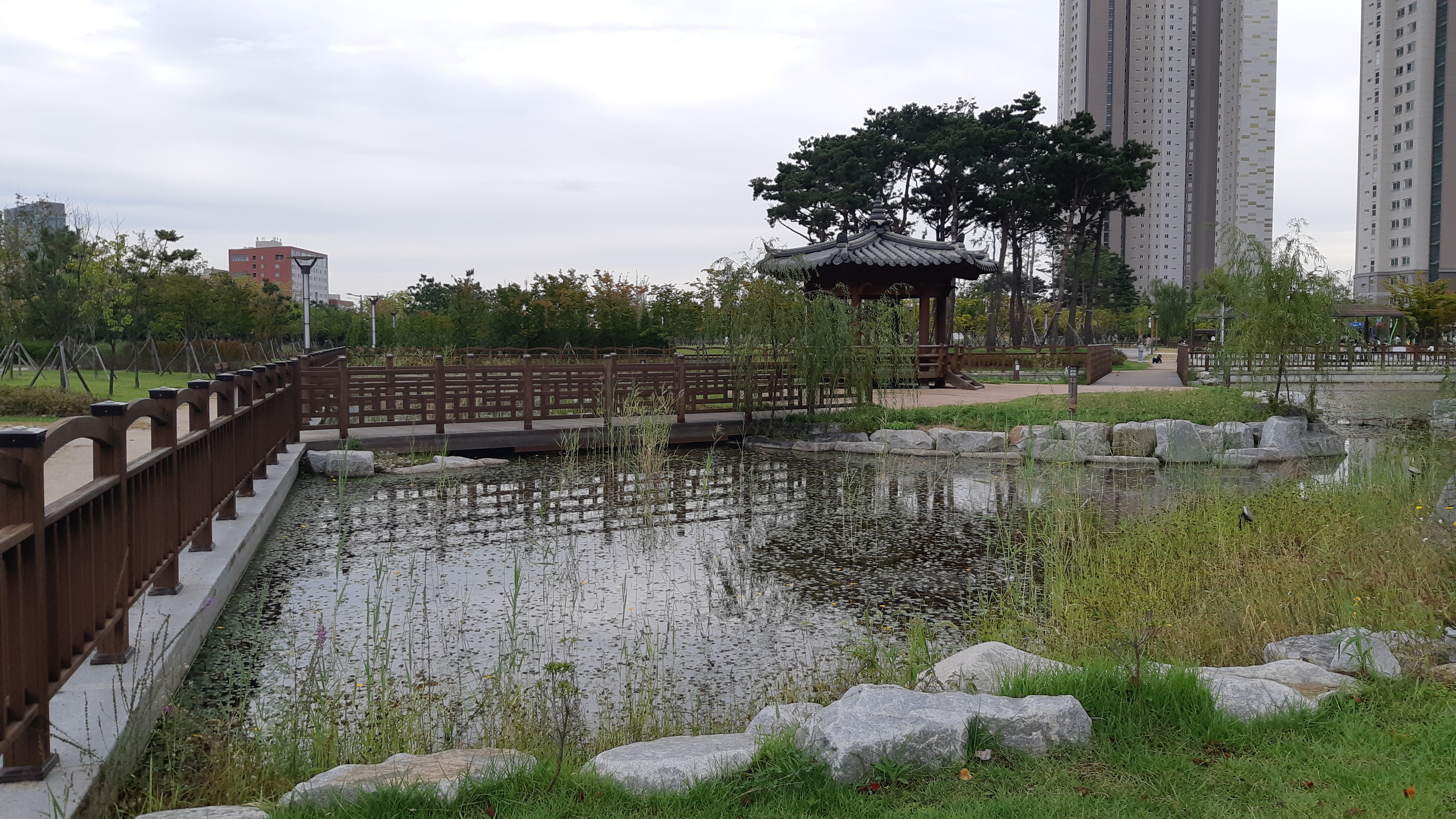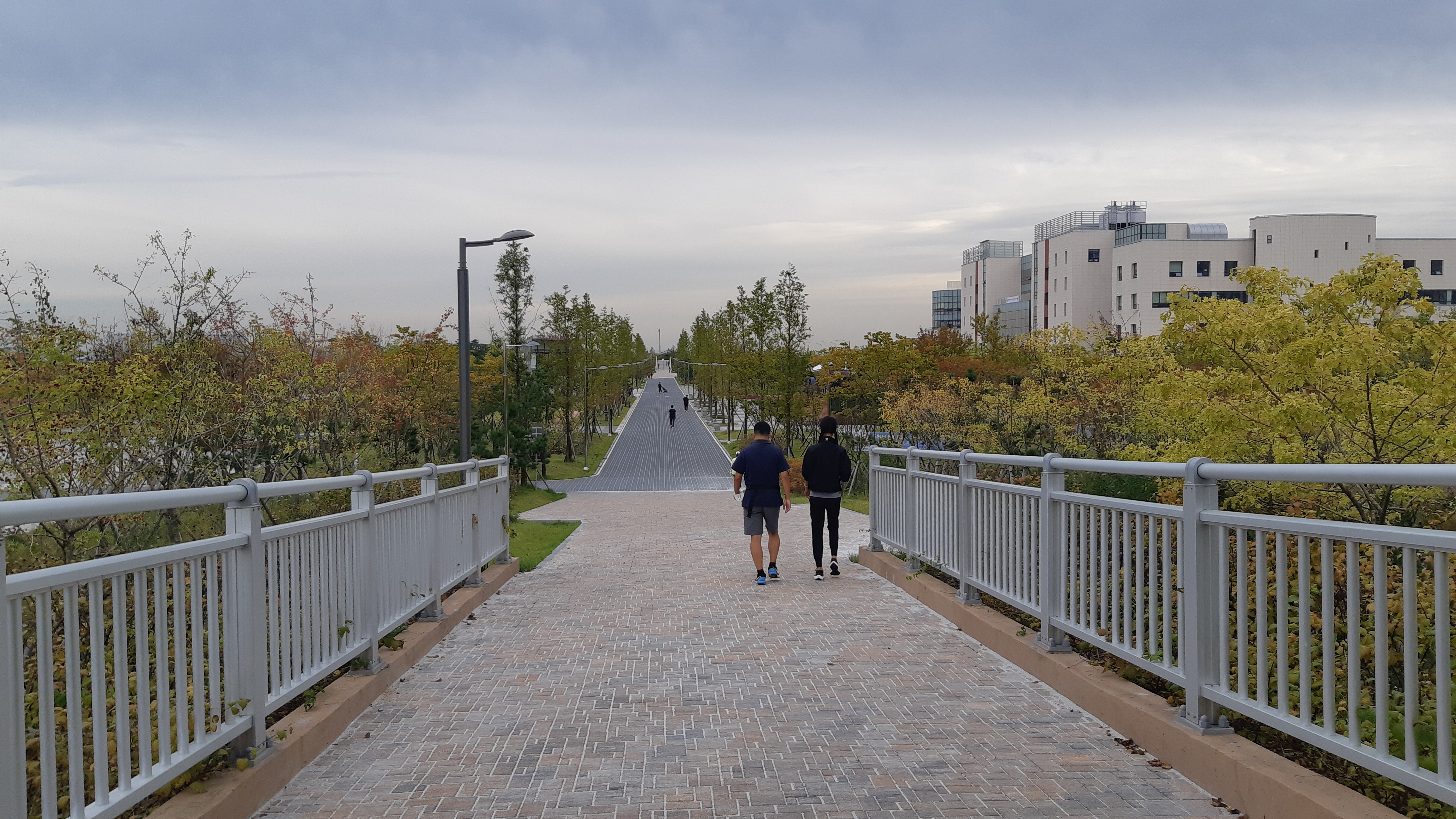 미추홀공원은 직사각형 형태로 길게 세 공원과 이어져 있었다. 공원들은 모두 보행녹도라는 이름의 육교로 연결되어 있어 다니기가 좋았다. 미추홀공원을 돌아보고 보행녹도를 건너 누리공원으로 갔다. 누리공원과 문화공원, 글로벌파크가 연이어 있었고 글로별파크 끝에는 자동차도로가 있고 도로 건너 넓은 갈대밭이 끝이보이지 않게 있었다. 울타리로 막아 놓아서 갈 수는 없었으나 앞으로 개발의 여지가 있는 넓은 곳이었다. 막아 놓지 않았다면 갈대숲 사이를 마음껏 걸어볼 수 있는 곳 같았다. 세 공원에도 잔디밭과 운동할 수 있는 운동장들이 있고, 역시 정자와 의자 등의 휴식 시설들이 잘 되어 있어서 많은 사람들이 운동도 하고 휴식도 즐기는 모습들을 볼 수가 있었다. 가을 기분을 거의 완전하게 느낄 수 있게 약간 추운기도 있고, 종일 해가 보이지 않아 여행하기 좋은 날씨에, 5시간이 넘는 시간을 아내와 함께 아름다운 공원에서 행복하게 보낸 하루의 삶이었다.