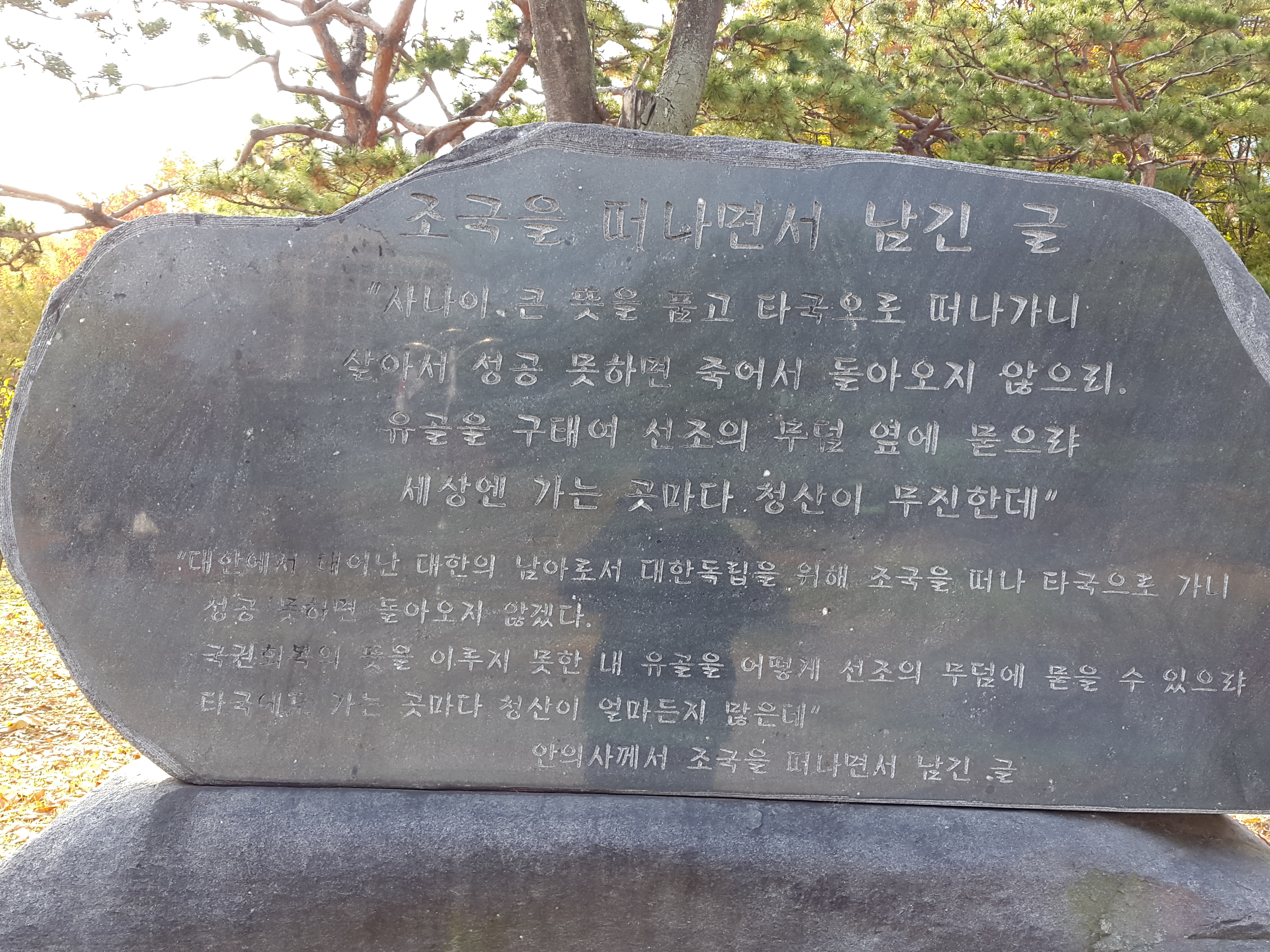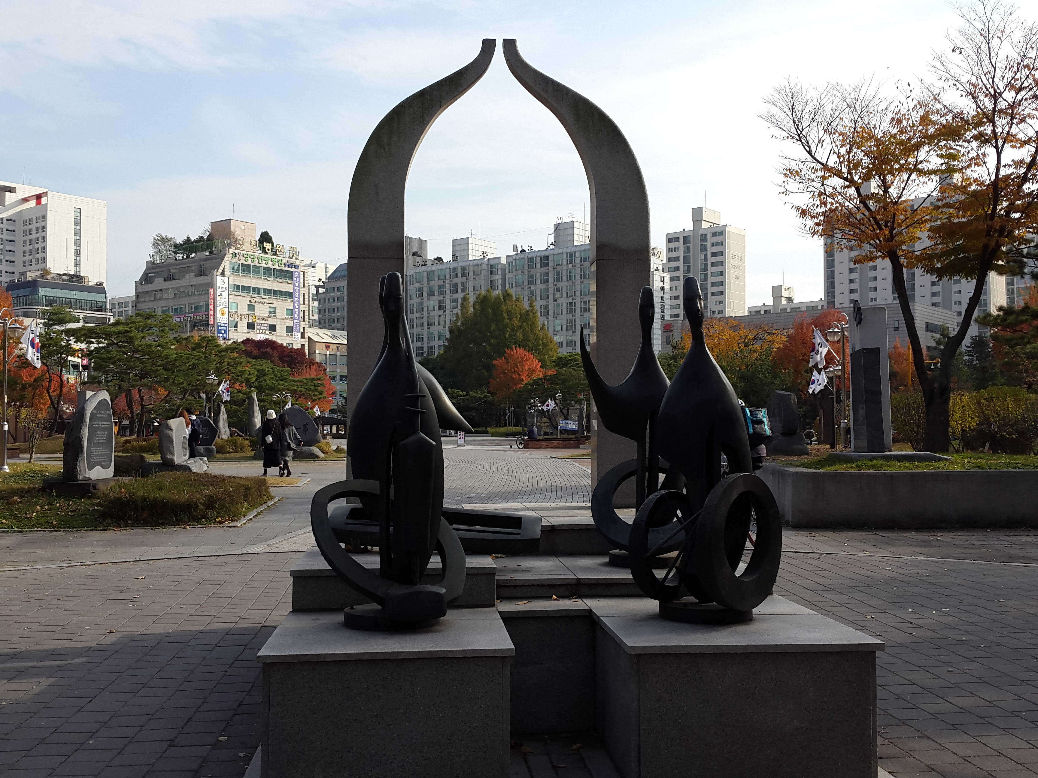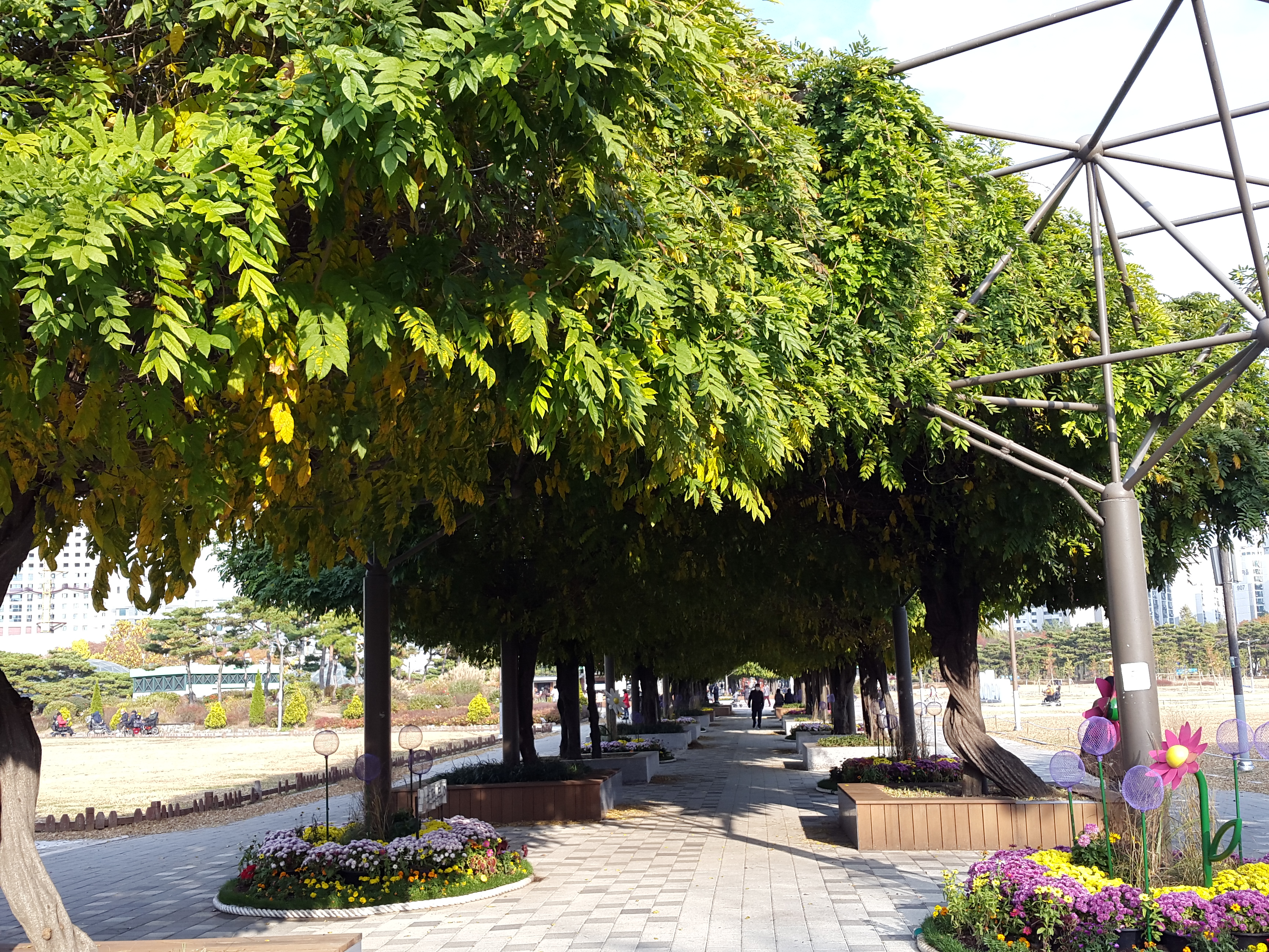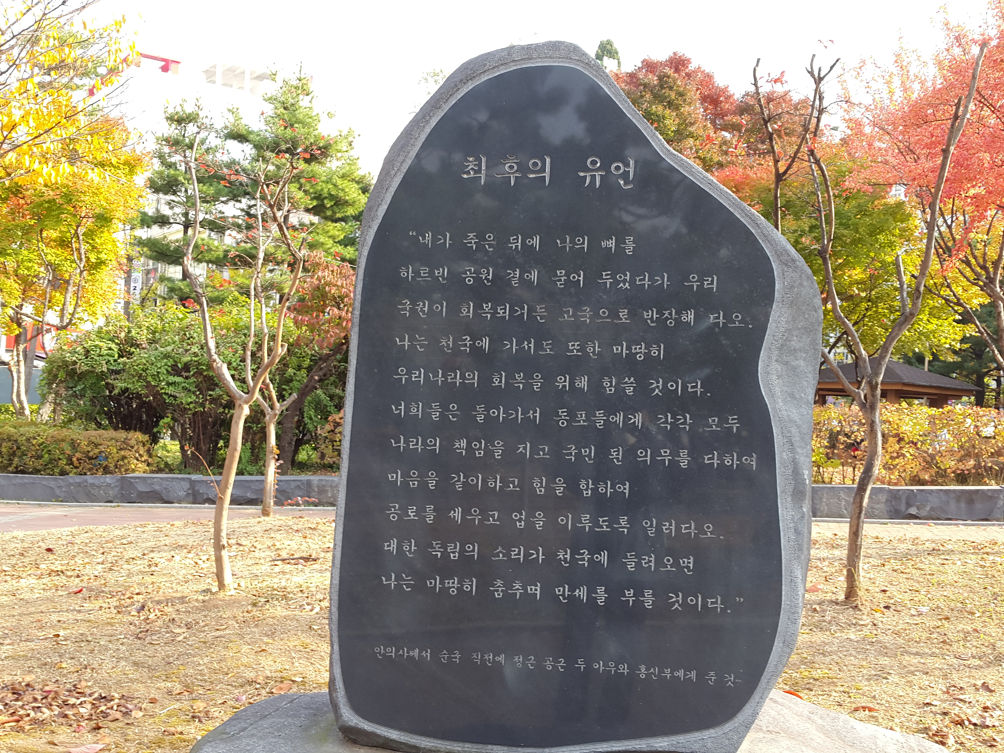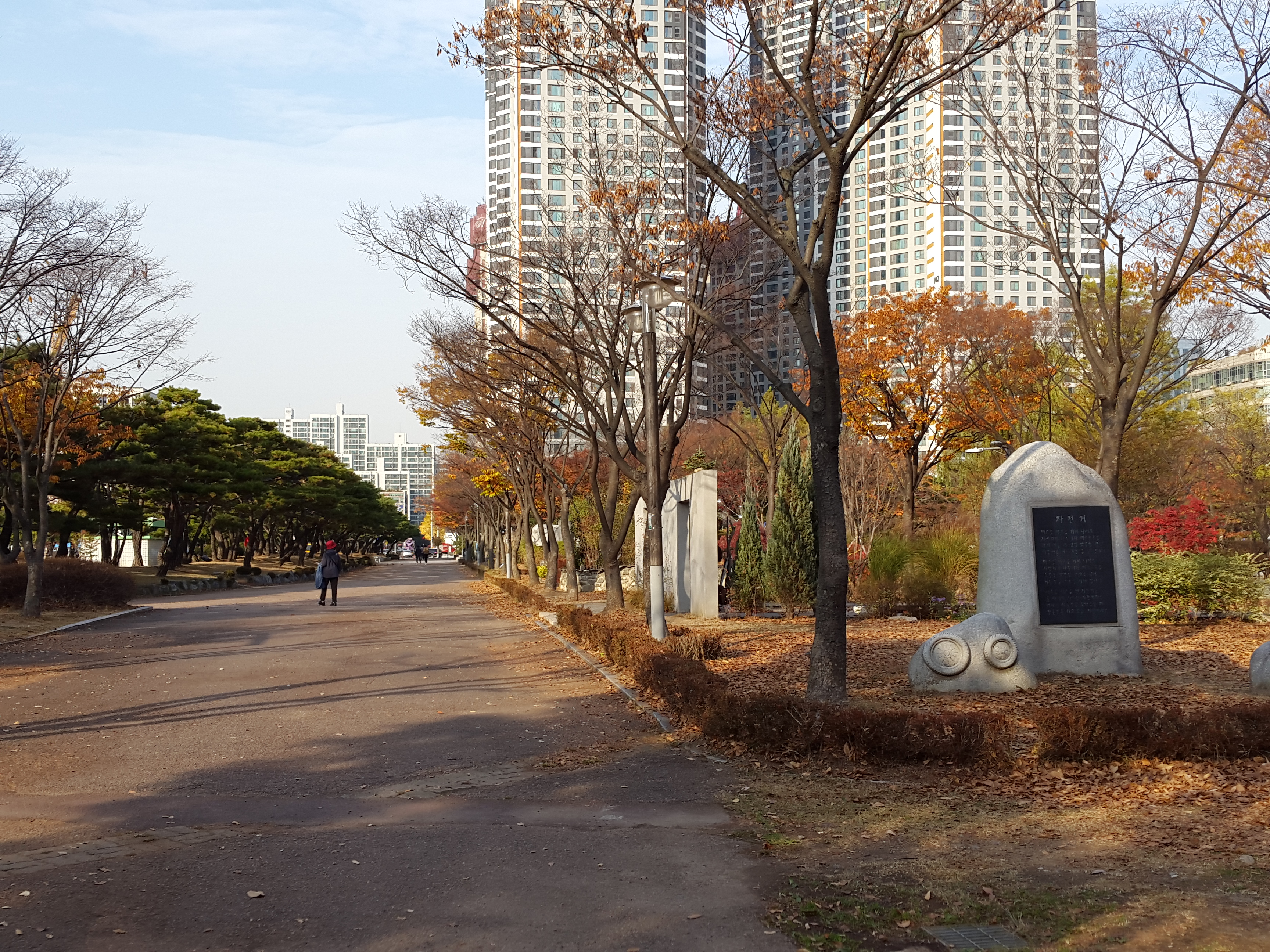 부천의 자연생태공원을 돌아보고, 다음 목적지를 향해 지하철 7호선 까치울역으로 가서 지하철을 타고 삼산체육관역까지 가서 역 가까이에 있는 상동호수공원으로 갔다. 호수공원의 둘레길을 한 바퀴 돌아보고 약 1.5km 시내 길을 걸어서 부천중앙공원으로 갔다. 가는 도중에 안중근공원이 있어서 들어가 보았다. 안중근의사와 어떤 인연인지는 알 수가 없었으나 그의 어록을 돌비석으로 많이 설치해 놓은 아담한 작은 공원이었다. 부천중앙공원은 부천시청 부근의 도심공원으로 넓이가 부천에서 가장 넓은 공원으로 알려진 곳이기에 가보았다. 시내 중심지에 시민들의 휴식공간으로 소나무 숲이 아주 좋았고, 산책로도 잘 만들어져 있으며, 편의시설과 조형물들이 조화를 이루는 좋은 곳이었다. 오늘의 여행은 여러 곳을 돌아보아서 다소 피곤했으나 하루를 꽉 채워서 산 것 같은 기분이었고, 아름다운 새로운 것들을 보는 재미로 잘 다녔다. 중앙공원에서 가장 가까운 7호선 부천시청역으로 가서 전철을 이용하여 귀가했다. 오후 7시경에 집에 도착했다.