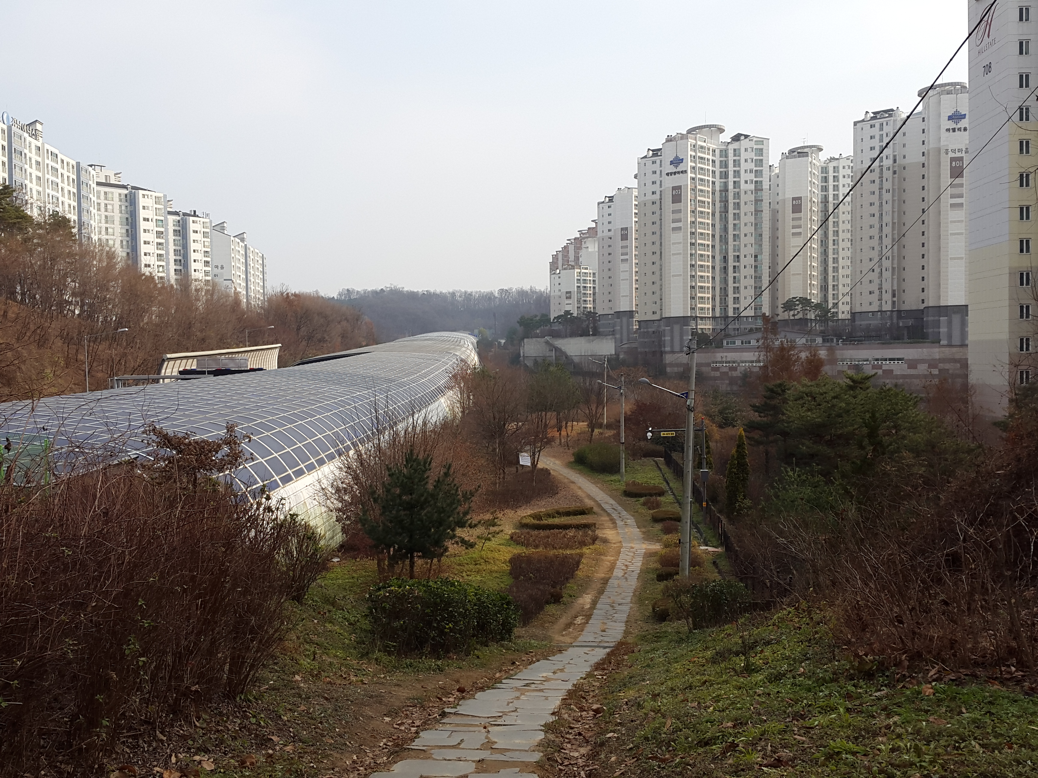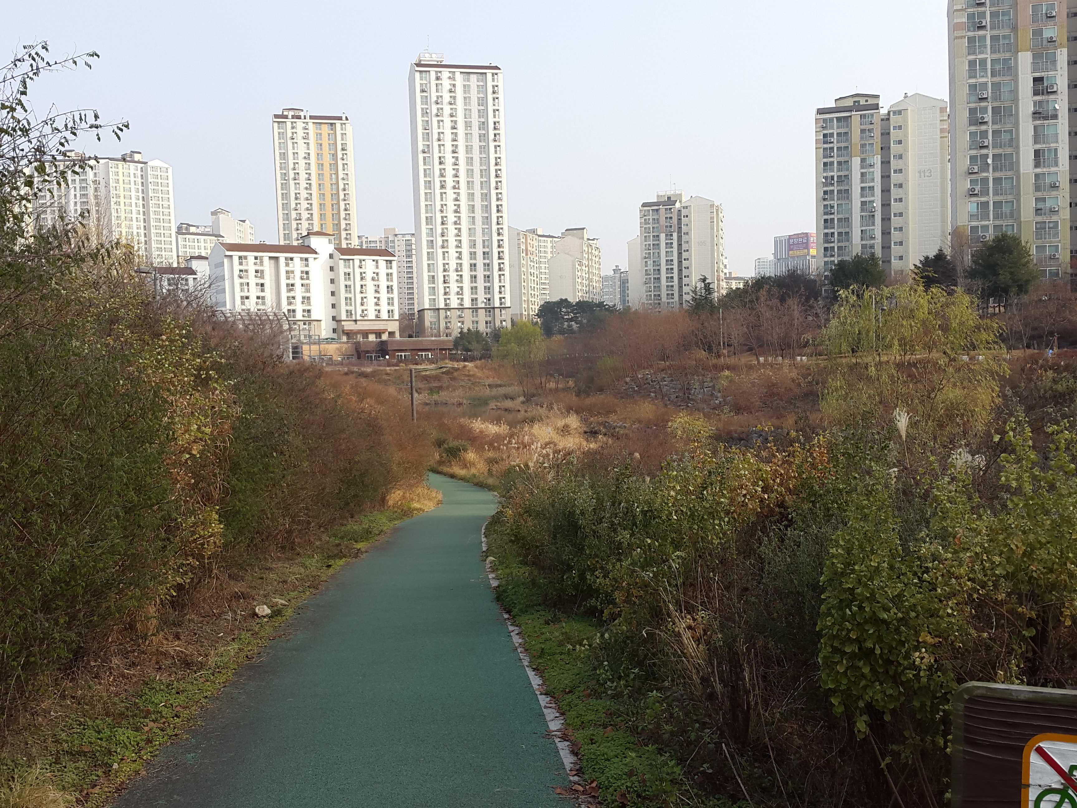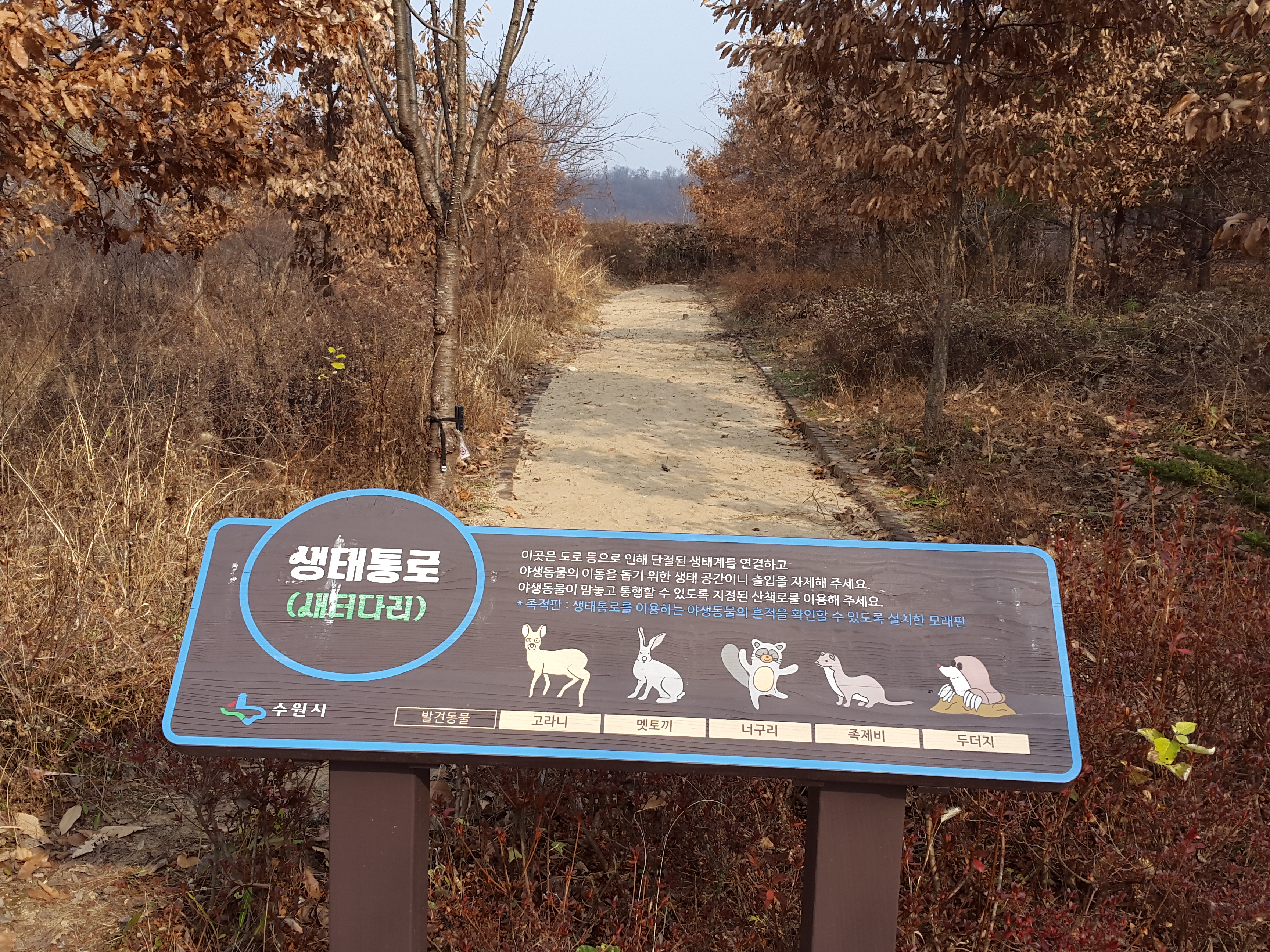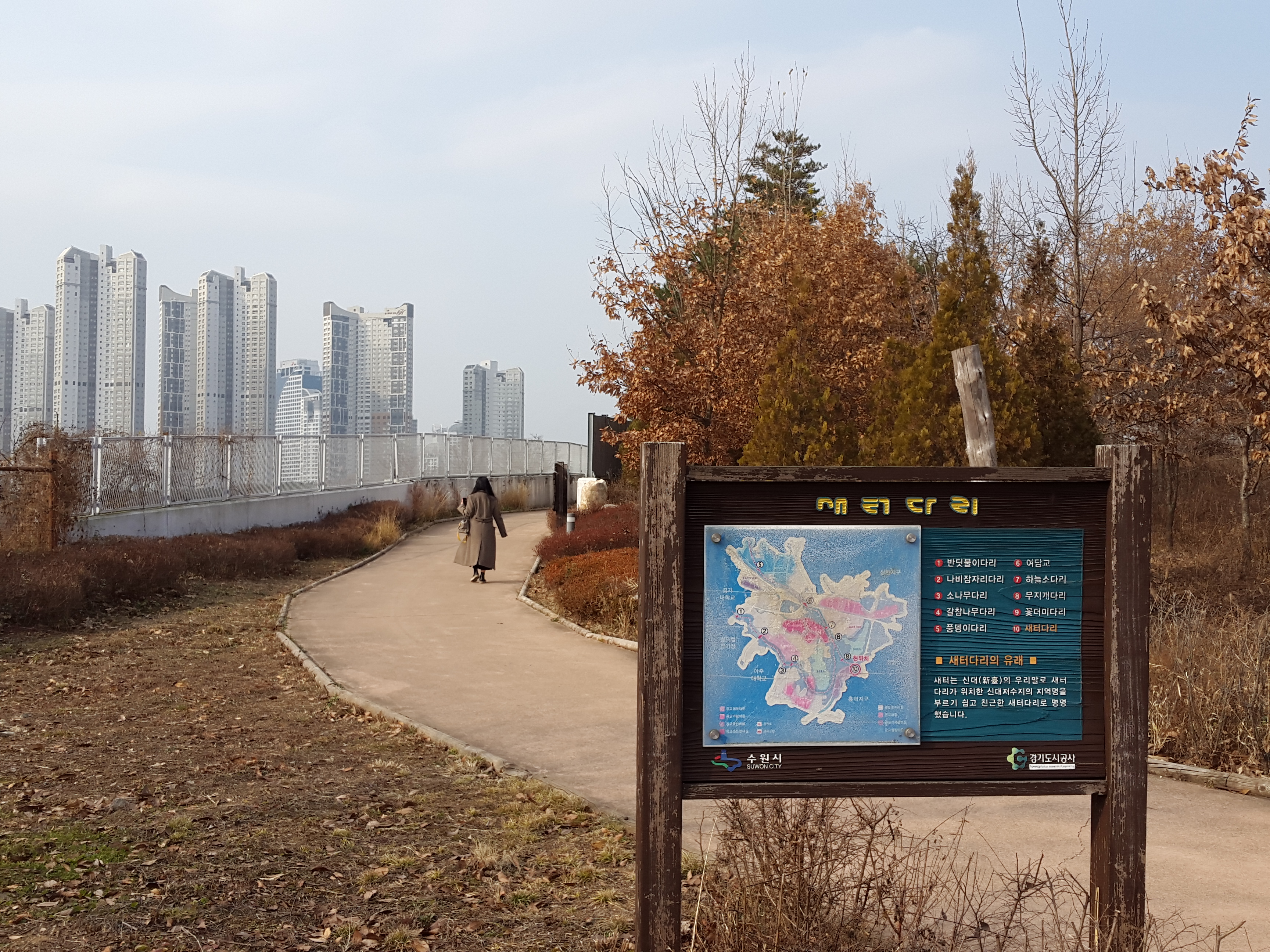 원천호수 전망대 옆 도서관에서 신대호수로 이어지는 산책로로 나가 신대호수로 갔다. 이어서 신대호수 하늘정원 - 생태통로로 이어지는 산책로 - 영덕천 산책로 - 흥덕유아숲체험원 - 파밀리에 아파트 단지 옆길로 하산 - 영통입구로 해서 귀가했다.