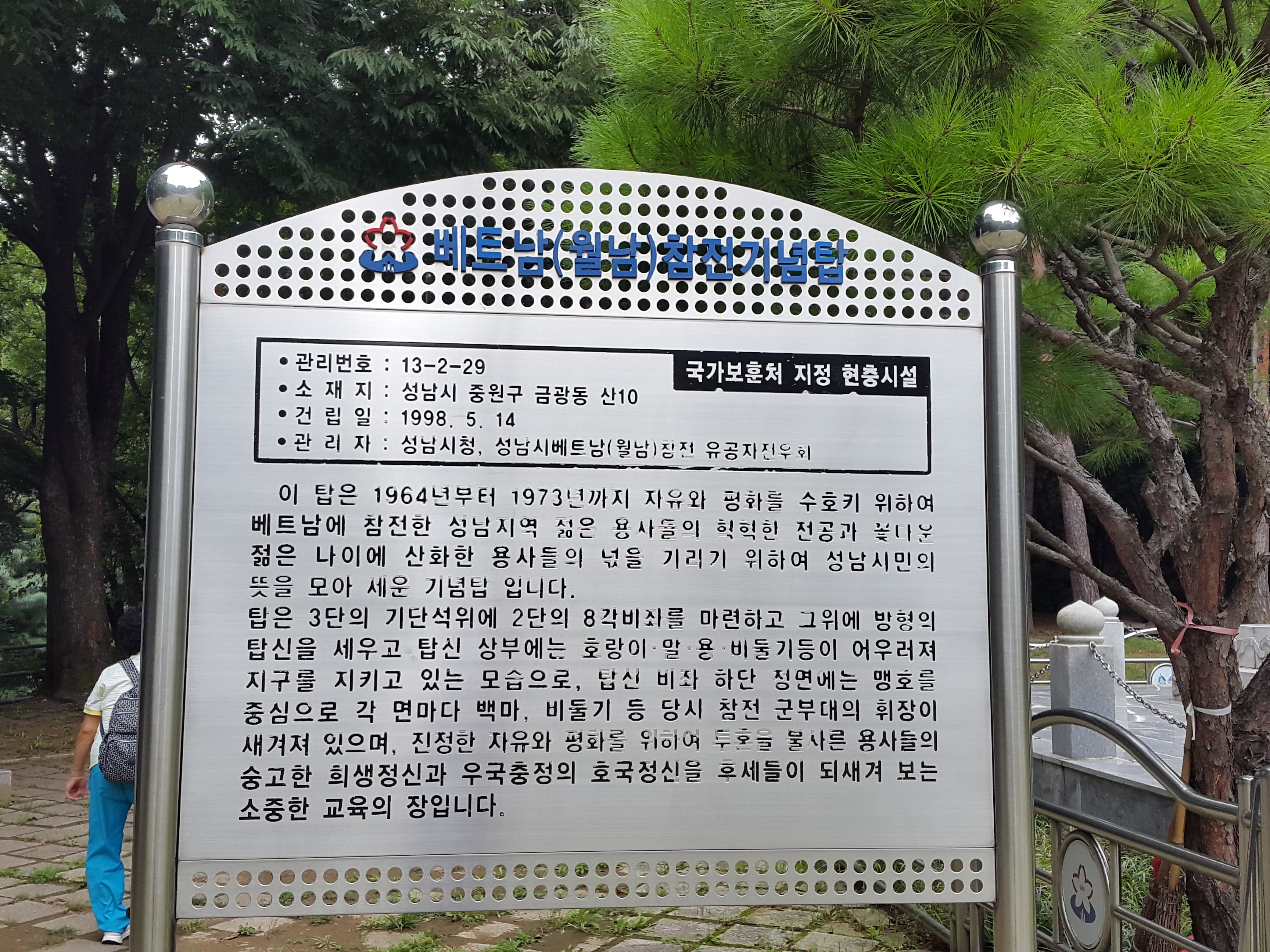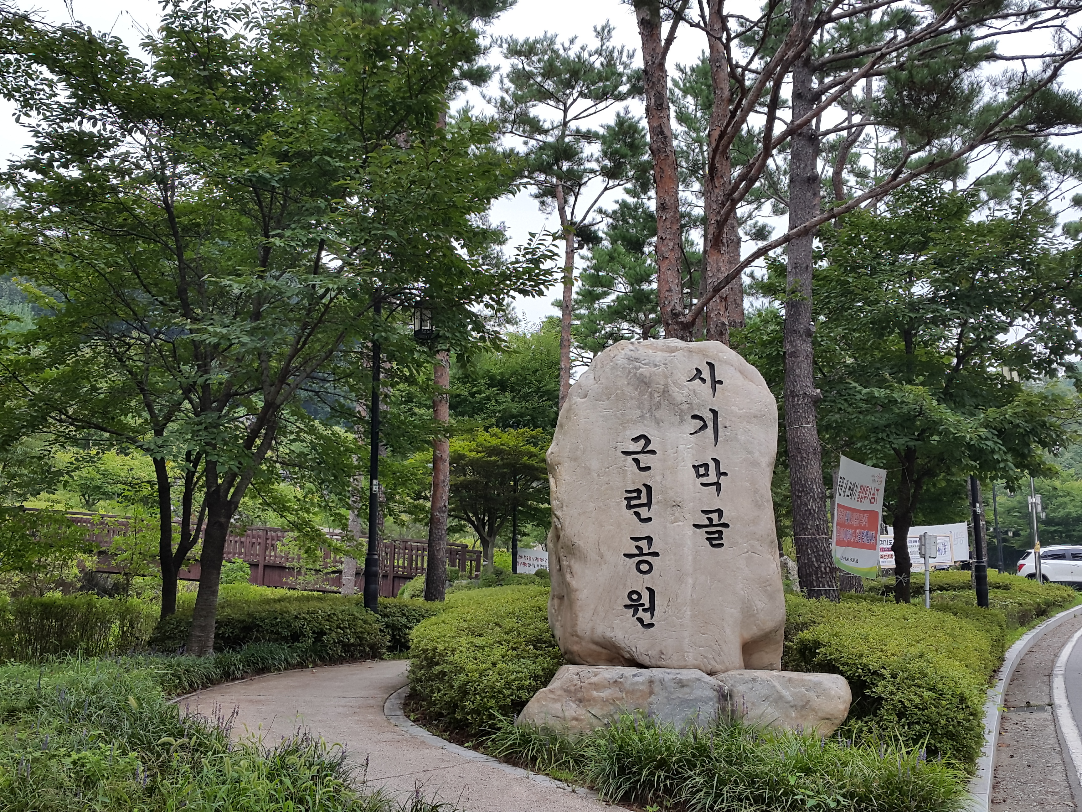 부석봉에서 검단산 방향으로 가지 않고, 황송공원으로 하산할 수 있는 안내표시를 따라 내려가니 공원이 있었다. 공원은 크지 않고 아담했다. 공원을 한 바퀴 돌아보고, 월남전에 참가한 성남시 청년들의 월남참전기념탑도 찾아본 후, 가까이에 있는 사기막골 공원으로 갔다.