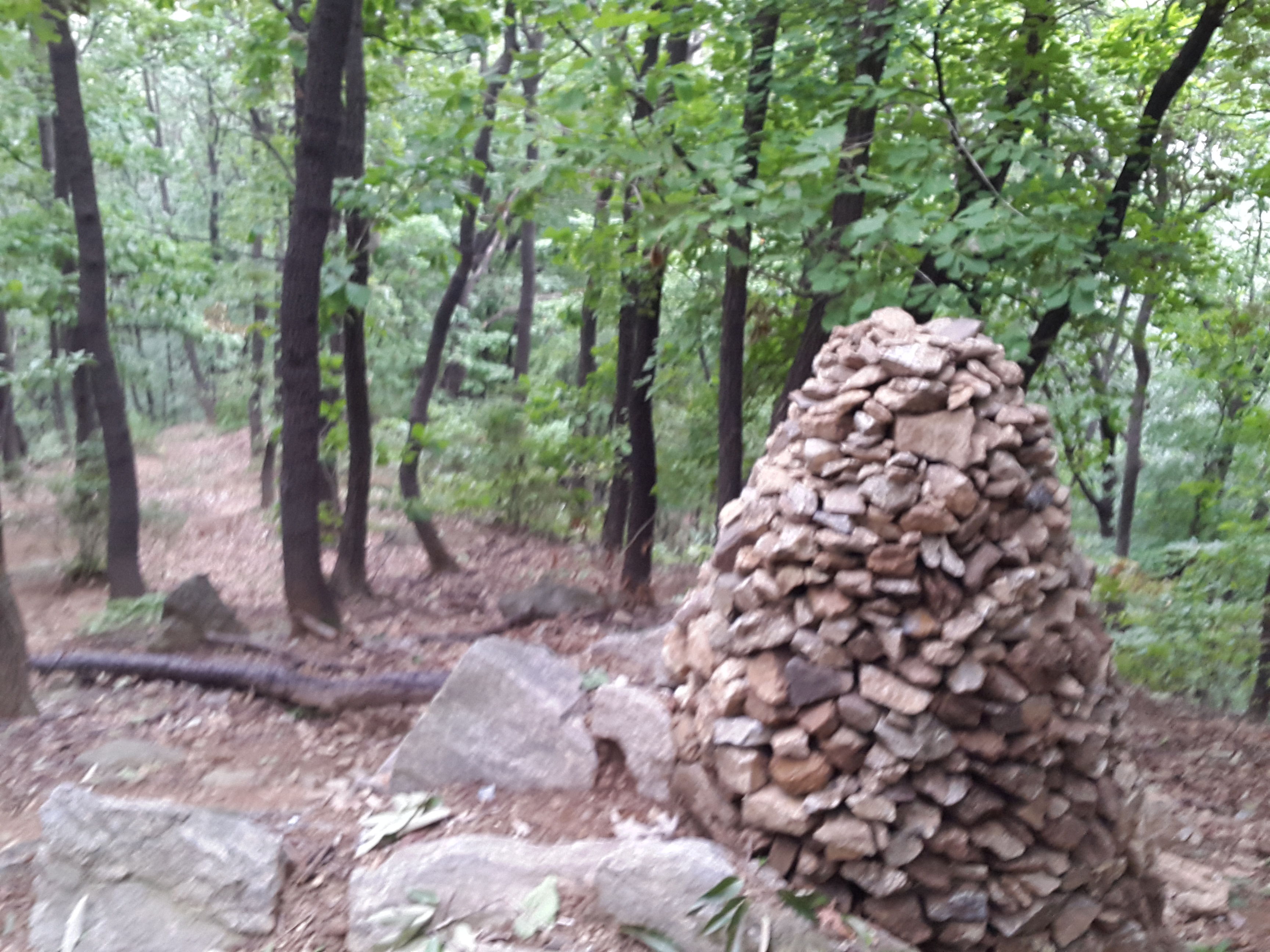 황송공원의 입구를 찾으려고 근처에 있는 사람에게 물었더니 황송게이트볼구장이 있는 입구를 가르쳐 주어서 입구에서부터 오르막길을 따라갔더니 약수터가 있었다. 약수터에서 내가 목을 축일 때, 물병이 없는 것을 확인한 노인 한 분이 친절하게 자신이 가지고 온 500ml 병에 물을 받아주면서 가지고 가라고 해서 받았다. 관심을 가지고 염려 해주는 것이 너무 고마웠다. 약수터에서 황송공원으로 가는 길이 우측으로 있었는데, 계속 오를 수 있는 등산로가 있어서 공원으로 가지 않고 등산로를 따라 올라갔다. 검단산으로 가는 등산로였다. 경사가 상당히 급한 등산로를 따라 올라가니 바위로 된 봉우리가 있었고 누군가 허술하게 써부친 부석봉이라는 표말이 있었다.