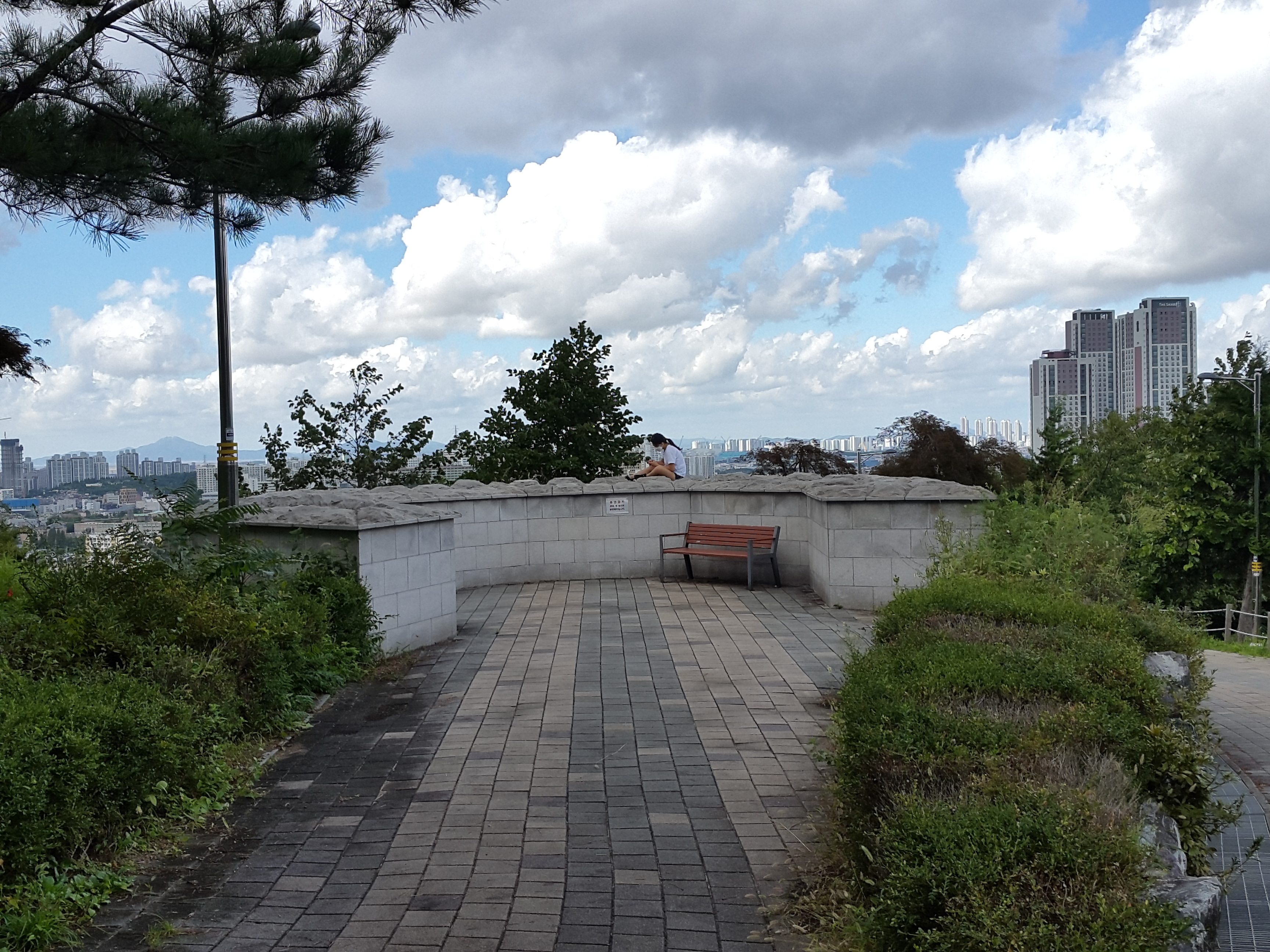 아내와 함께 천천히 수봉산 둘레길을 한 바퀴 돌았다. 둘레길이 정상을 지날 수 있어서 공원의 중심부라 할 수 있는 정상을 둘러보았고, 공원의 동쪽과 서쪽에 있는 두 군데의 전망대에서 인천 시내를 바라볼 수 있었다. 오늘 날씨가 밝고 하늘에 뭉개 구름의 아름다운 모습을 많이 볼 수 있었으며, 날씨와 어울리는 인천 시내의 모습도 깨끗하게 전망되었다. 지하철을 타고 다니면서 어천역과 사리역 사이에 넓은 들의 벼가 온통 노란색으로 물들어 있고, 하늘에 하얀 깨끗한 뭉게구름과 어울림이 눈을 즐겁게 해주었다. 수봉공원은 계단 길이 많았고 산책로가 잘 정비되어 걷기에 좋았다. 2시간 반 정도 공원에서 산책을 하고, 휴식도 하며 머물다 다시 지하철을 이용하여 귀가했다.