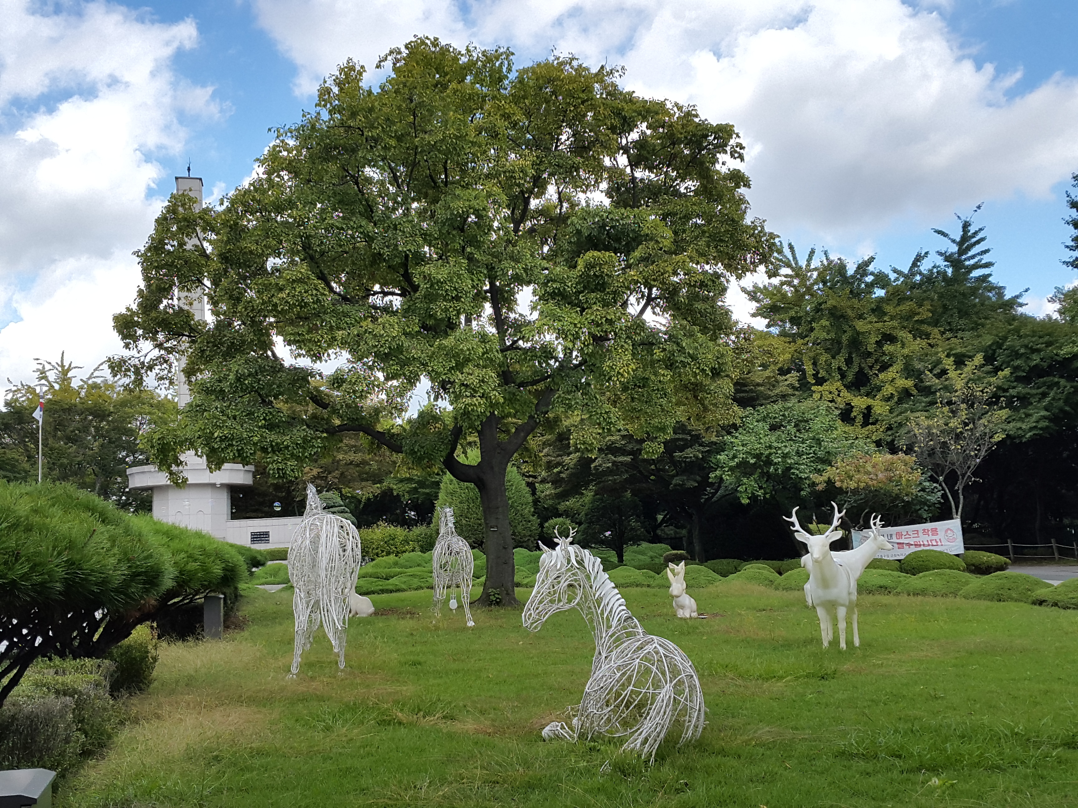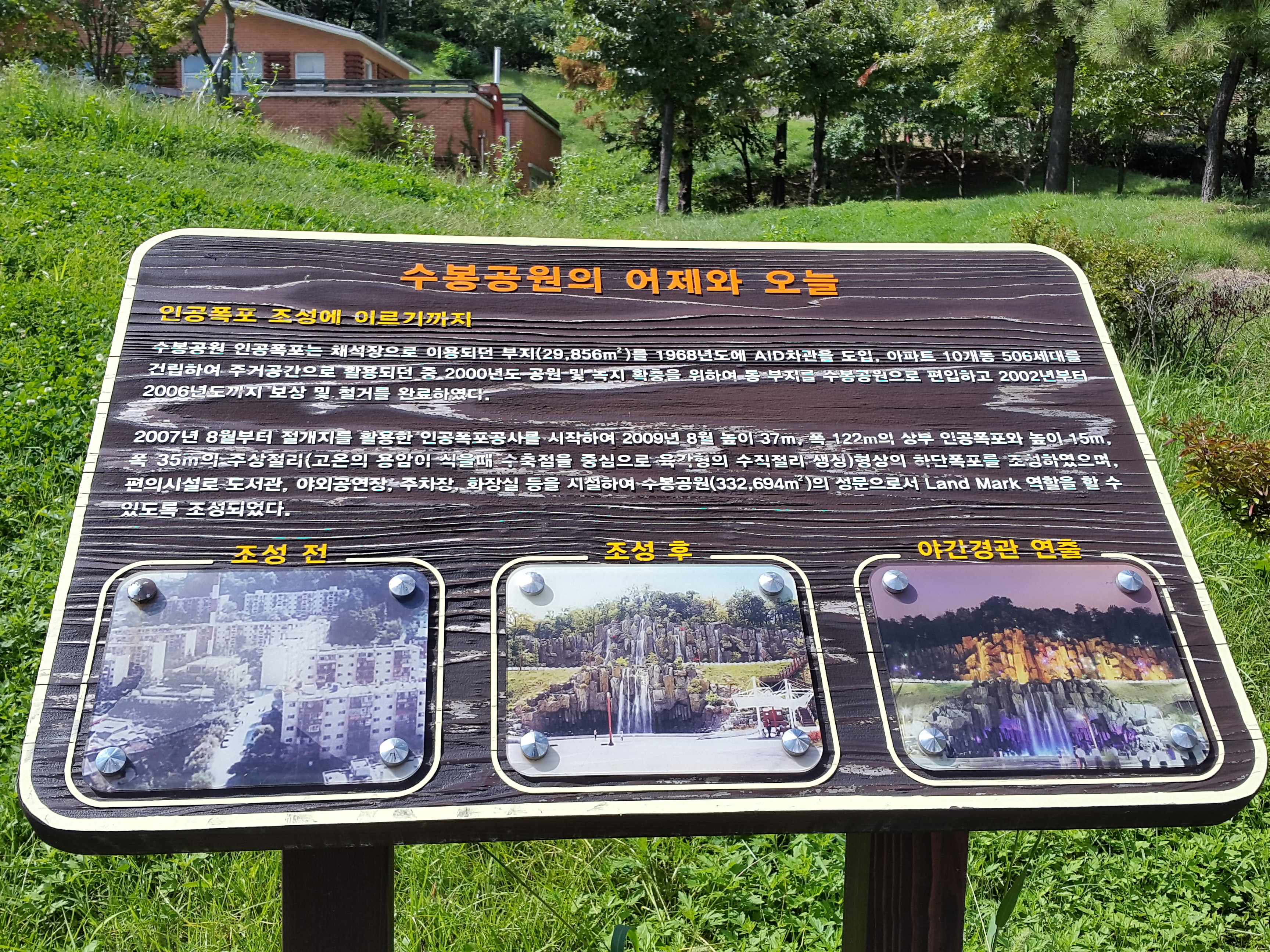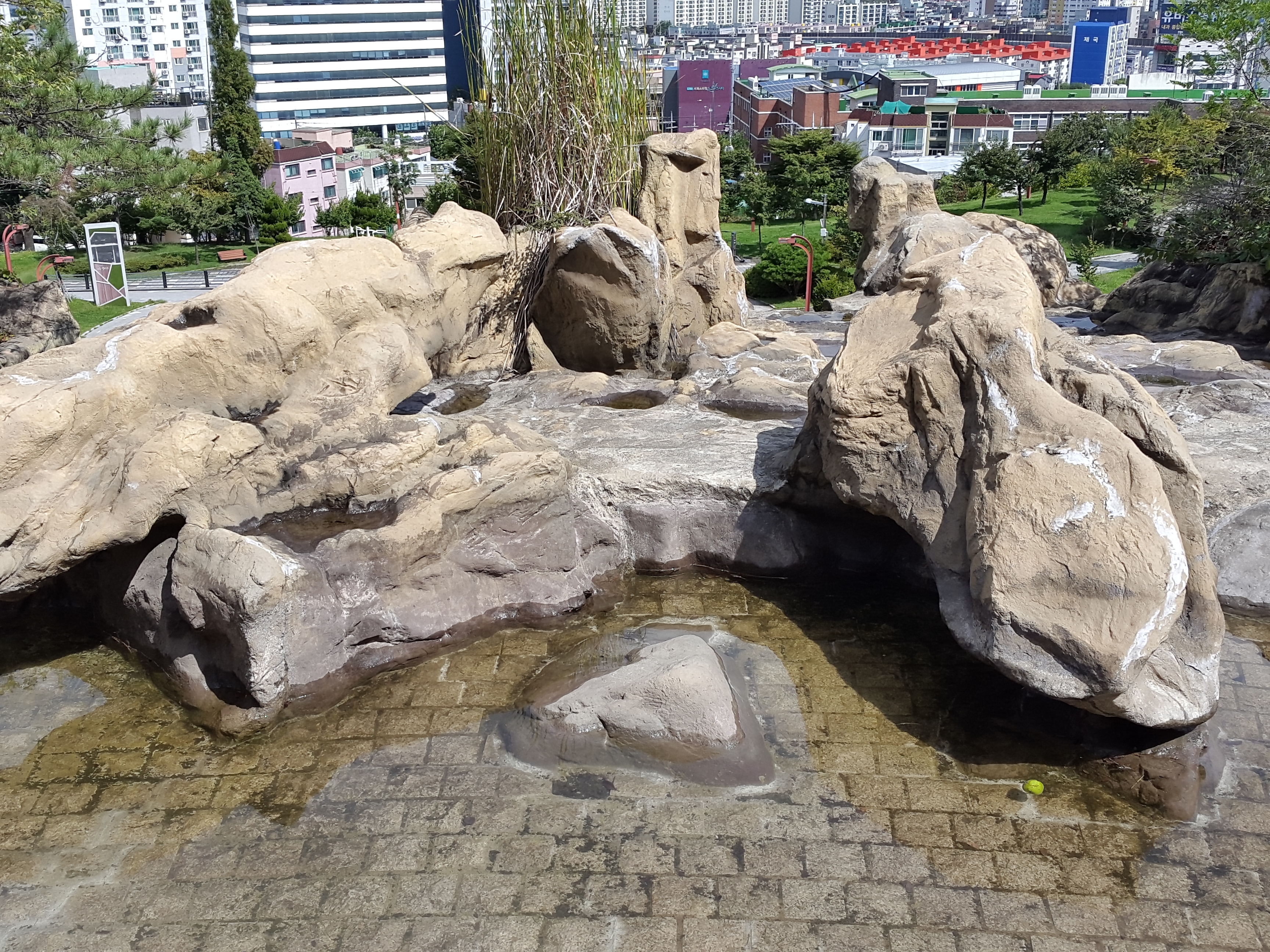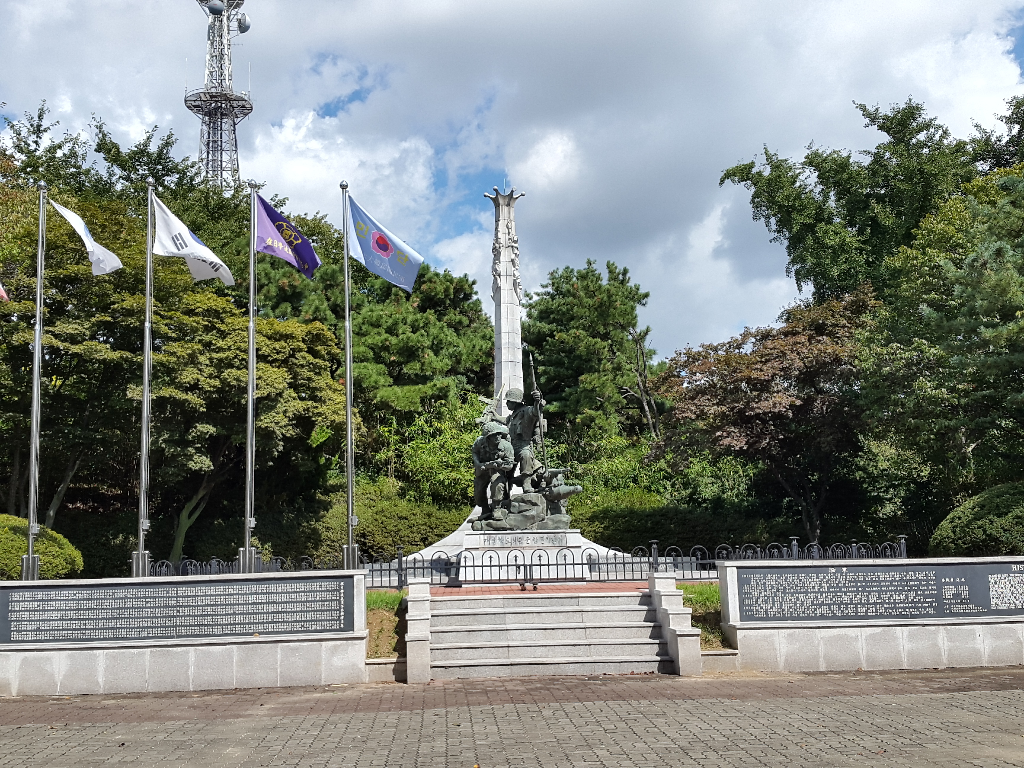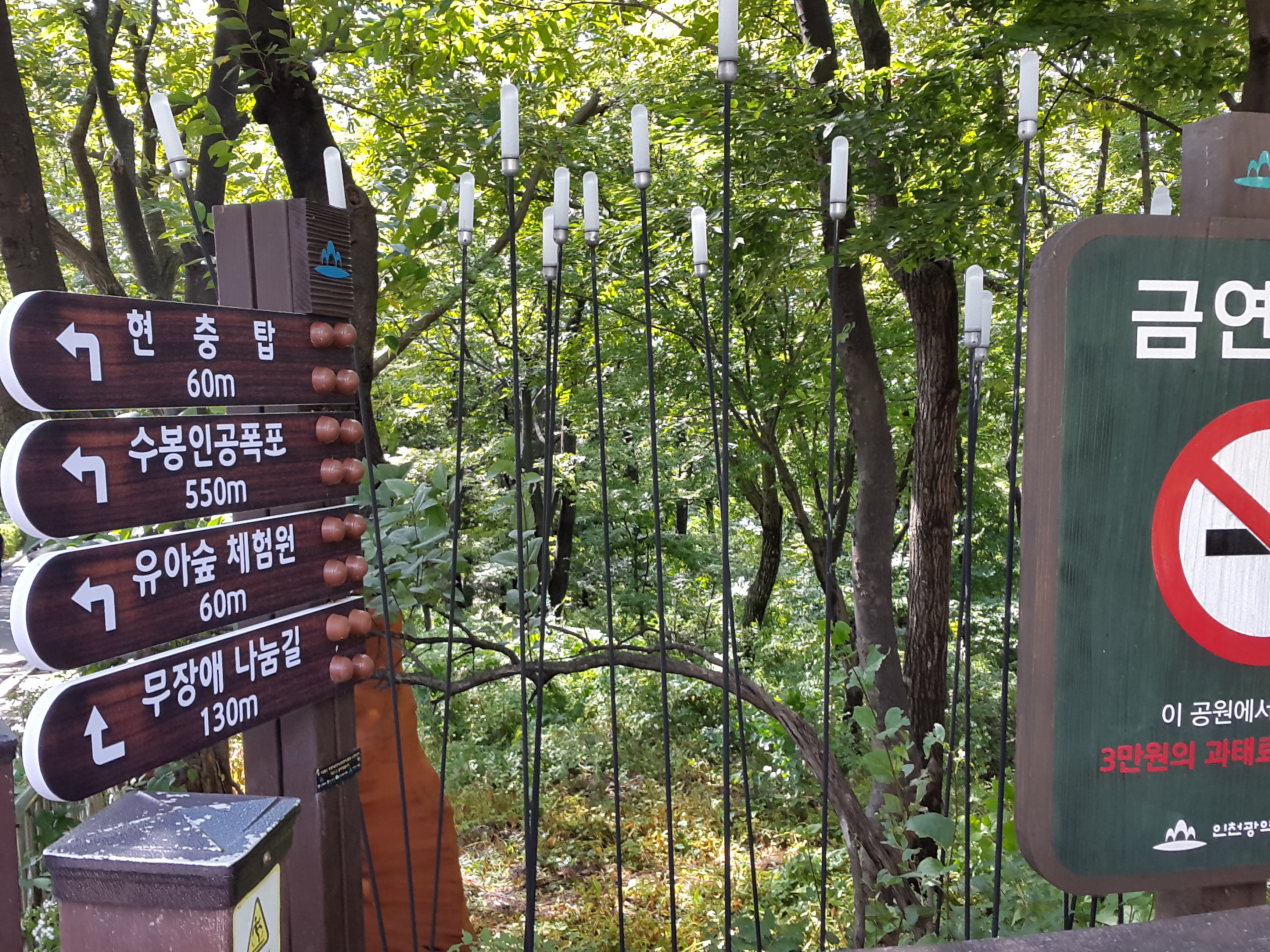 추석연휴가 계속되는 오늘 아내와 함께 인천에 있는 수봉공원에 다녀왔다. 지하철 청명역(수인분당선) - 인천역(1호선) - 도화역 2번 출구로 나가서 도보 5분 거리인 수봉공원에 도착했다. 공원에 도착하기까지 2시간이 소요되었다. 수봉산을 중심으로 산기슭에 체육시설과 운동장, 어린이 놀이터, 인공폭포 등의 공원시설이 있고 산 정상에 충혼탑과 인천통일관, 자연학습원, 여러 휴식시설과 조형물 등이 있는 잘 조성된 공원이었다. 특히 인공폭포를 이룬 바위가 장관이었는데 폭포수가 흐르는 것은 여름에만 한다고 해서 물을 볼 수 없음이 아쉬웠다.