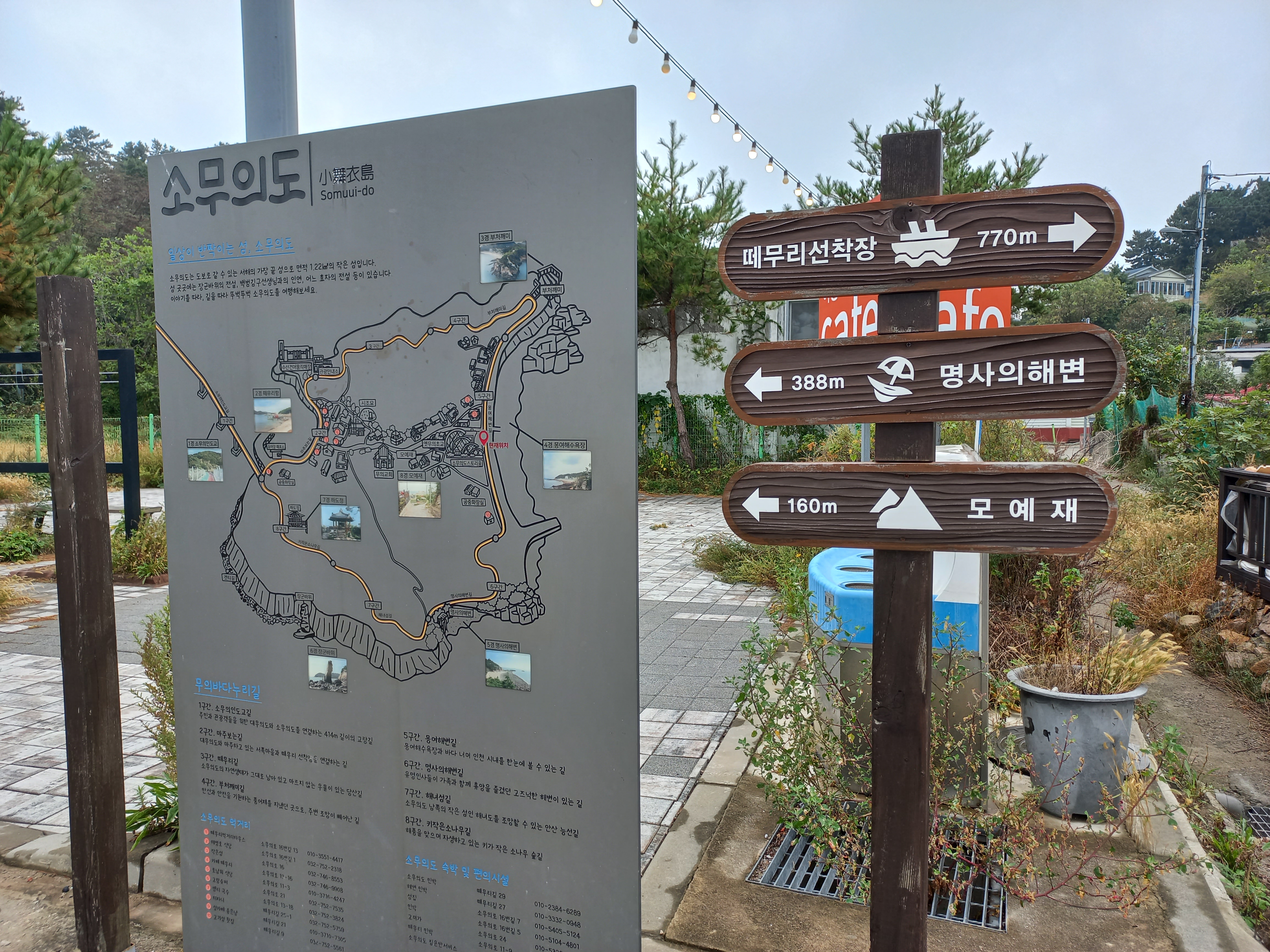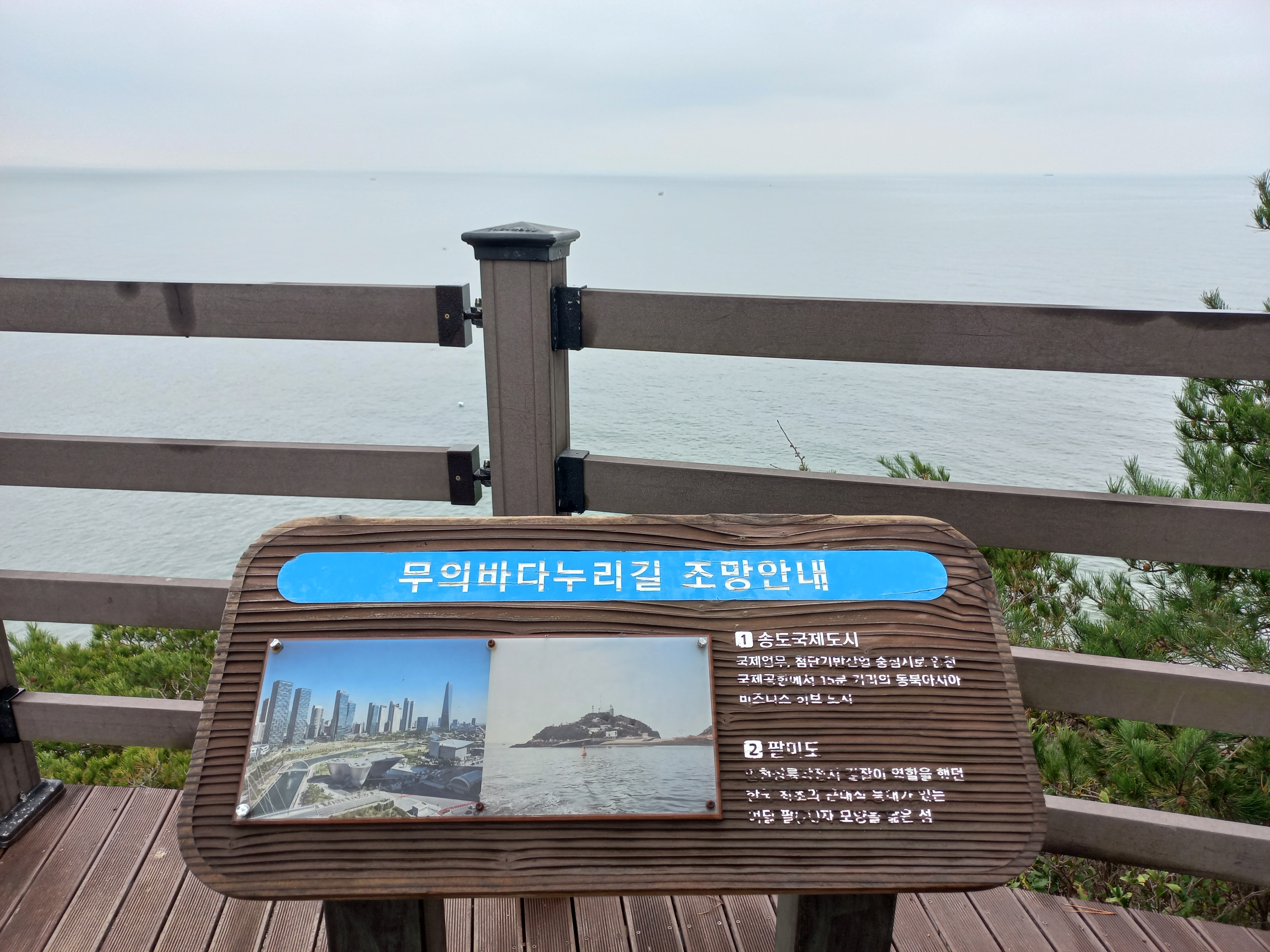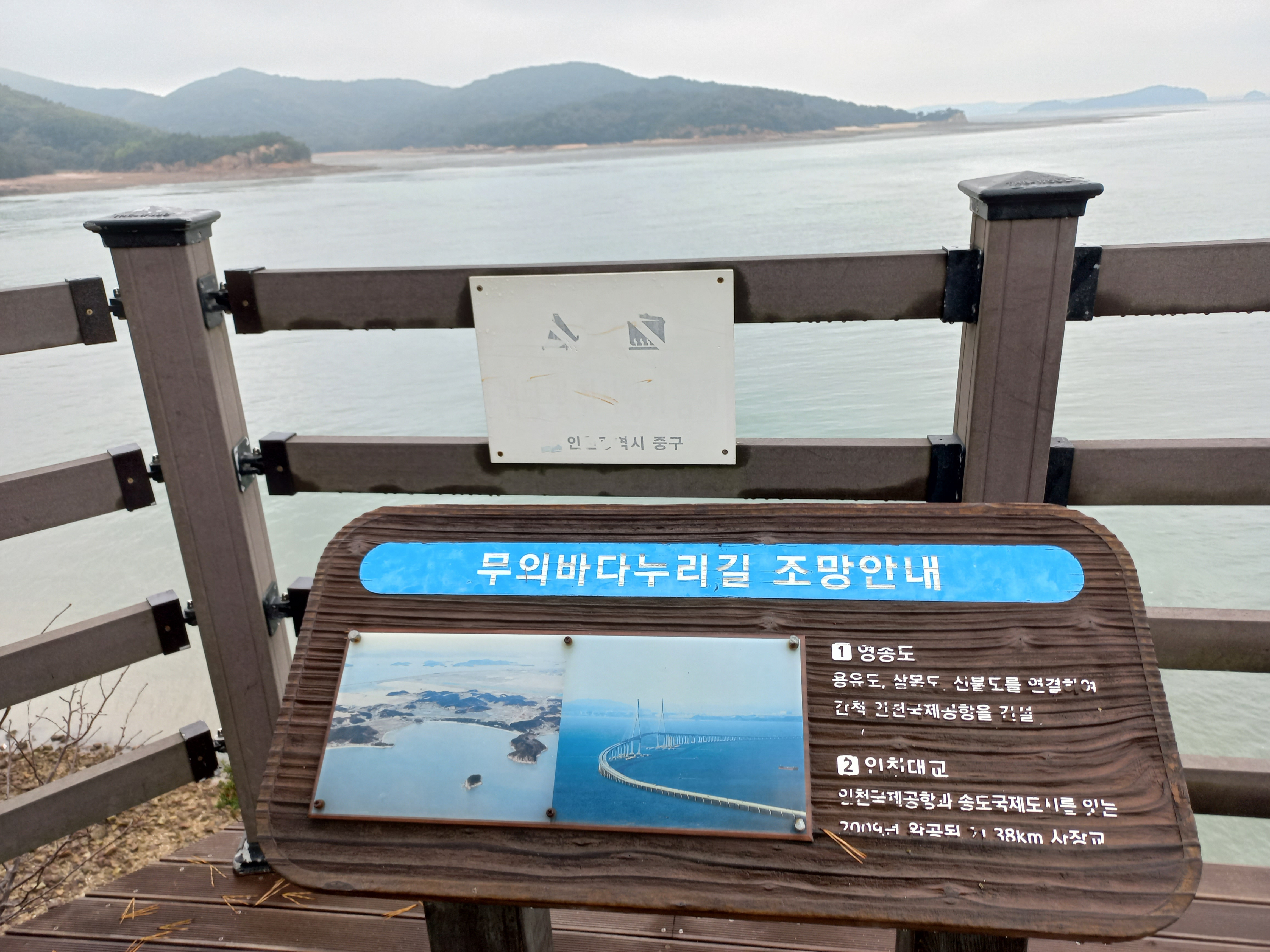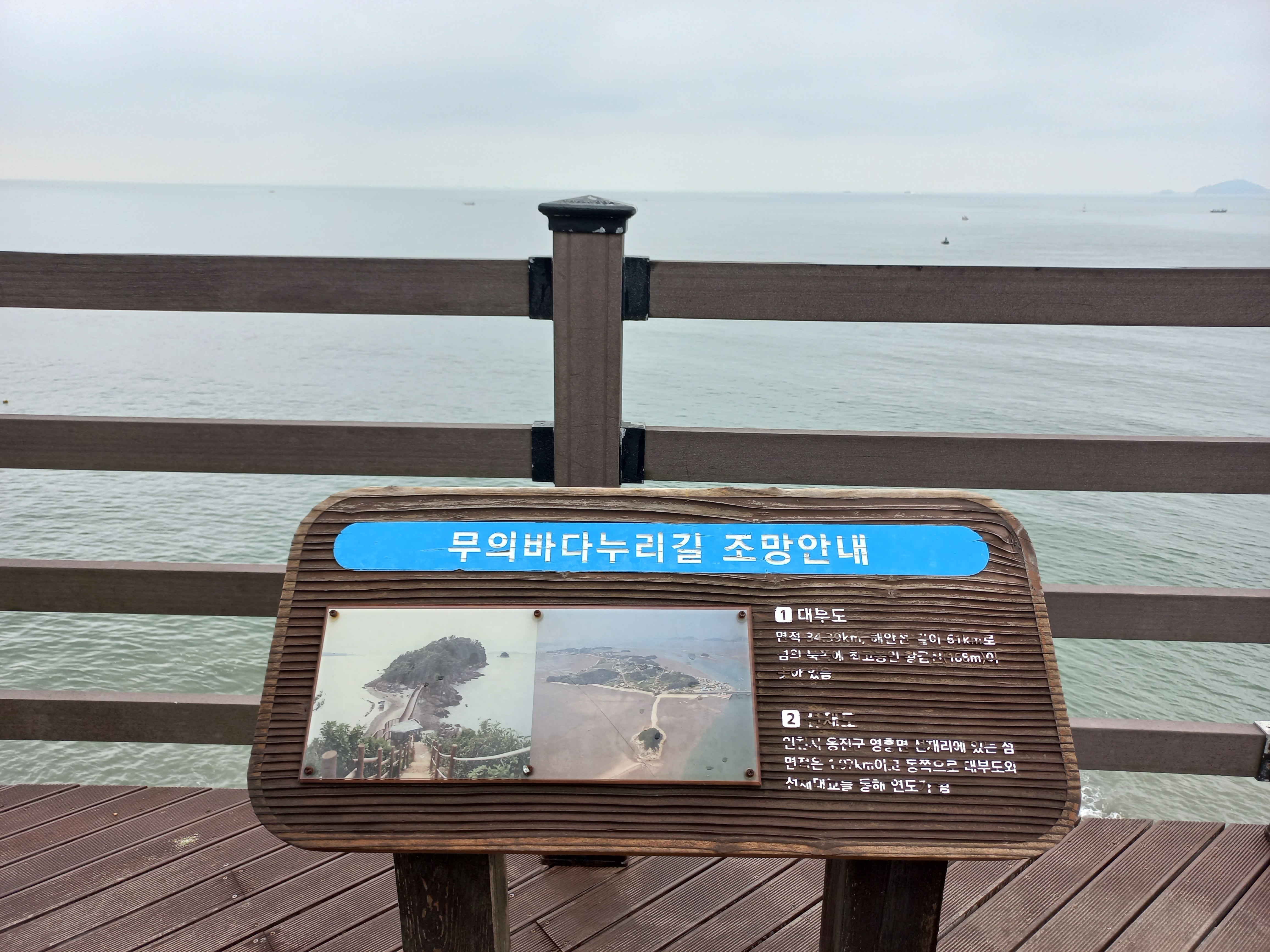 오늘은 인천공항1터미널 버스정류장 7번홈에서 9시 40분 출발 무의 1번 버스로 종점인 광명항까지 갔다. 가보지 않은 소무의도를 가기 위해서였다. 무의도와 소무의도가 소무의인도교로 연결되어 걸어서 소무의도에 갈 수가 있었다. 자동차는 갈 수가 없는 인도교이다. 인도교 끝에서부터 소무의도를 한 바퀴 돌 수 있는 무의바다누리길이 8개 코스로 나뉘어 조성되어 있었다. 1코스부터 8코스까지 차례대로 소무의도를 한바퀴 돌았다. 오르고 내리는 길에 계단길을 많이 걸어야 했다. 전체 둘레길이 2.2km라 해서 두 시간이 다 걸리지 않은 코스였지만 상당히 힘들었다. 섬이기에 사방이 바다로 경치가 아주 시원하고 좋을 것 같았는데, 오늘 안개가 상당히 짙은 흐린날씨여서 좋은 전망을 볼 수 없었다. 전망대 안내판에 보면 송도국제도시, 팔미도, 영종도, 인천대교, 대부도 등이 모두 조망이 된다고 되어 있는데 하나도 제대로 볼 수가 없어 아쉬웠다.
