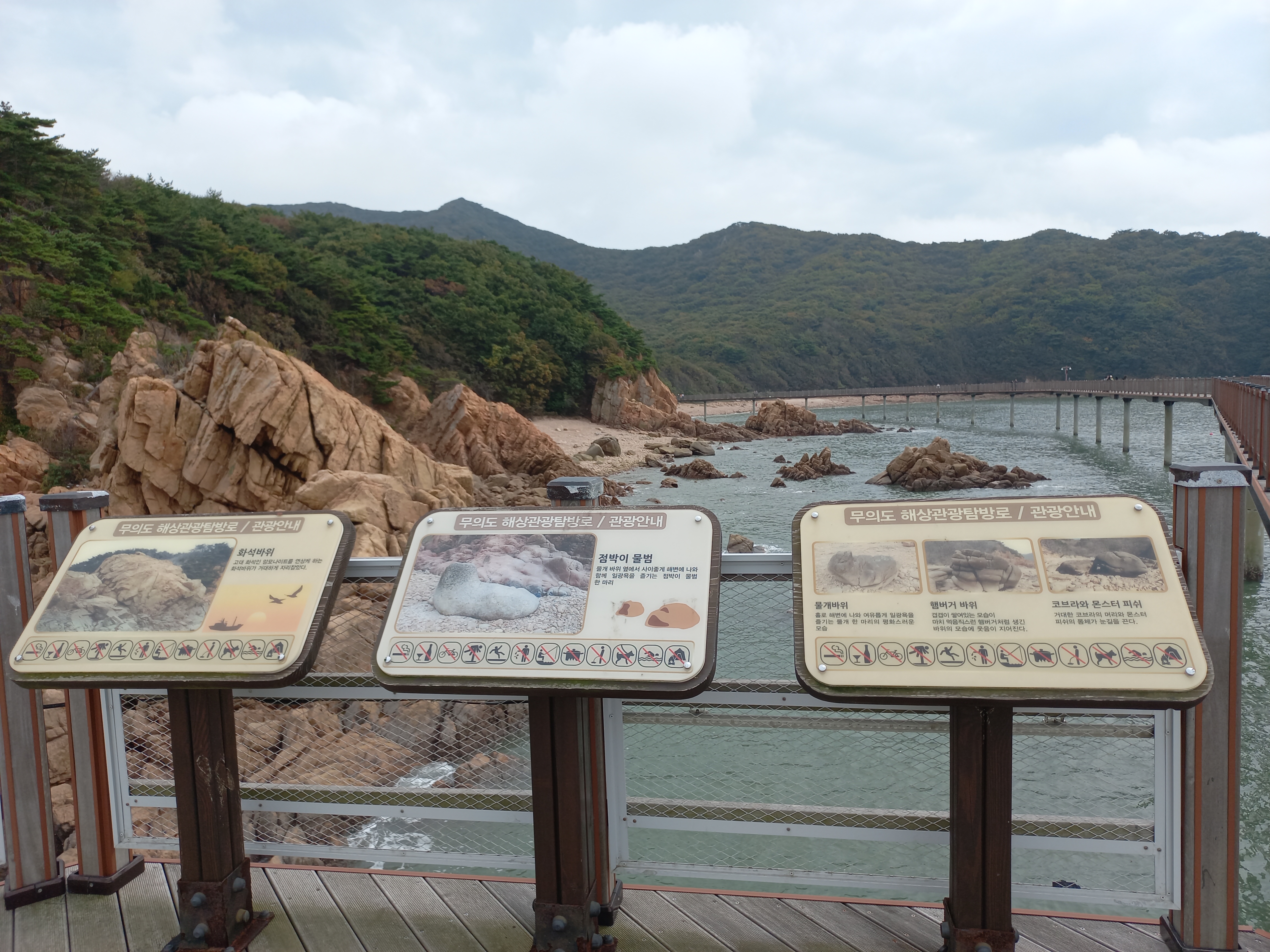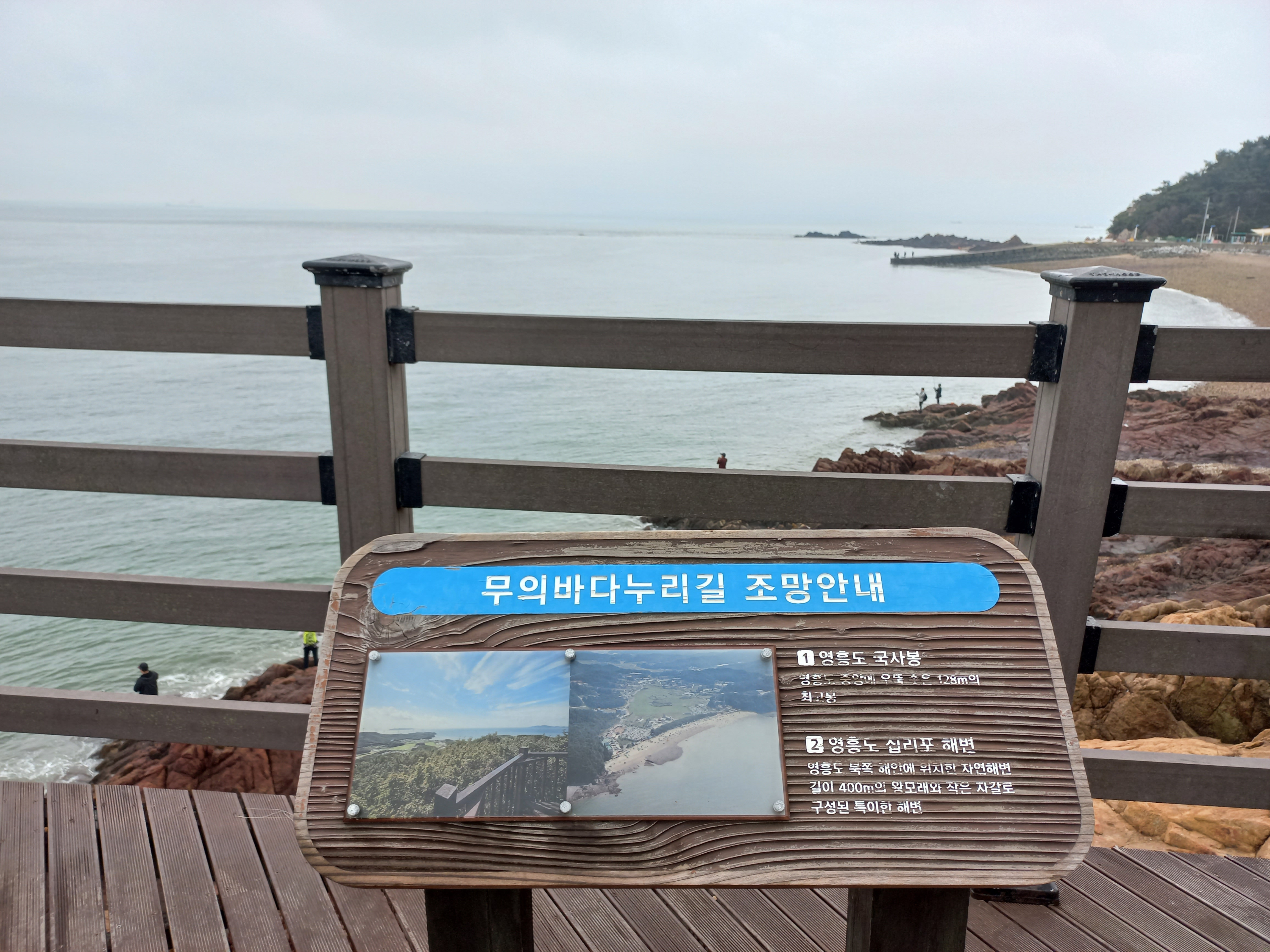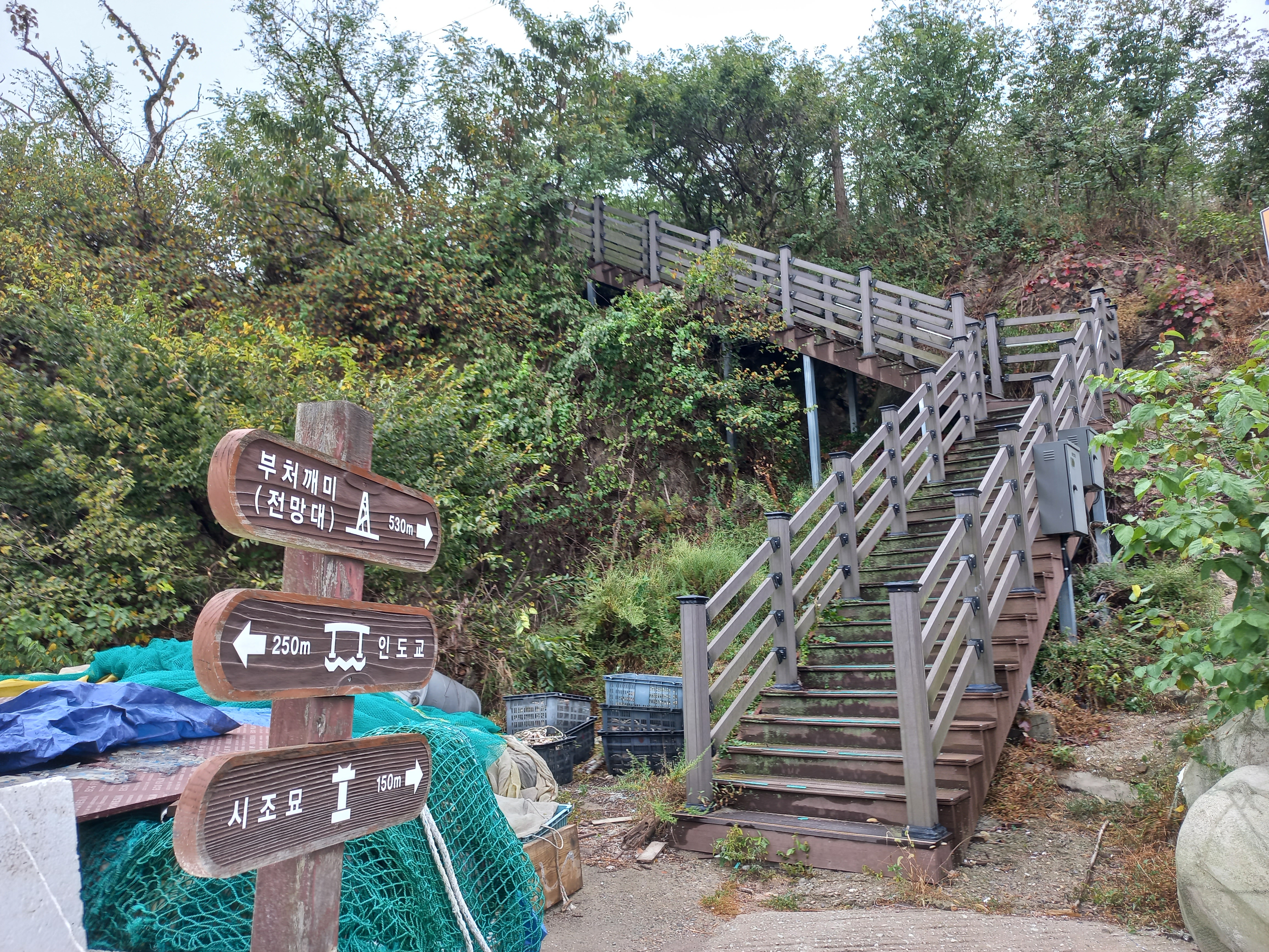 오늘은 인천공항1터미널 버스정류장 7번홈에서 9시 40분 출발 무의 1번 버스로 종점인 광명항까지 갔다. 가보지 않은 소무의도를 가기 위해서였다. 무의도와 소무의도가 소무의인도교로 연결되어 걸어서 소무의도에 갈 수가 있었다. 자동차는 갈 수가 없는 인도교이다. 인도교 끝에서부터 소무의도를 한 바퀴 돌 수 있는 무의바다누리길이 8개 코스로 나뉘어 조성되어 있었다. 1코스부터 8코스까지 차례대로 소무의도를 한바퀴 돌았다. 오르고 내리는 길에 계단길을 많이 걸어야 했다. 전체 둘레길이 2.2km라 해서 두 시간이 다 걸리지 않은 코스였지만 상당히 힘들었다. 섬이기에 사방이 바다로 경치가 아주 시원하고 좋을 것 같았는데, 오늘 안개가 상당히 짙은 흐린날씨여서 좋은 전망을 볼 수 없었다. 전망대 안내판에 보면 송도국제도시, 팔미도, 영종도, 인천대교, 대부도 등이 모두 조망이 된다고 되어 있는데 하나도 제대로 볼 수가 없어 아쉬웠다.