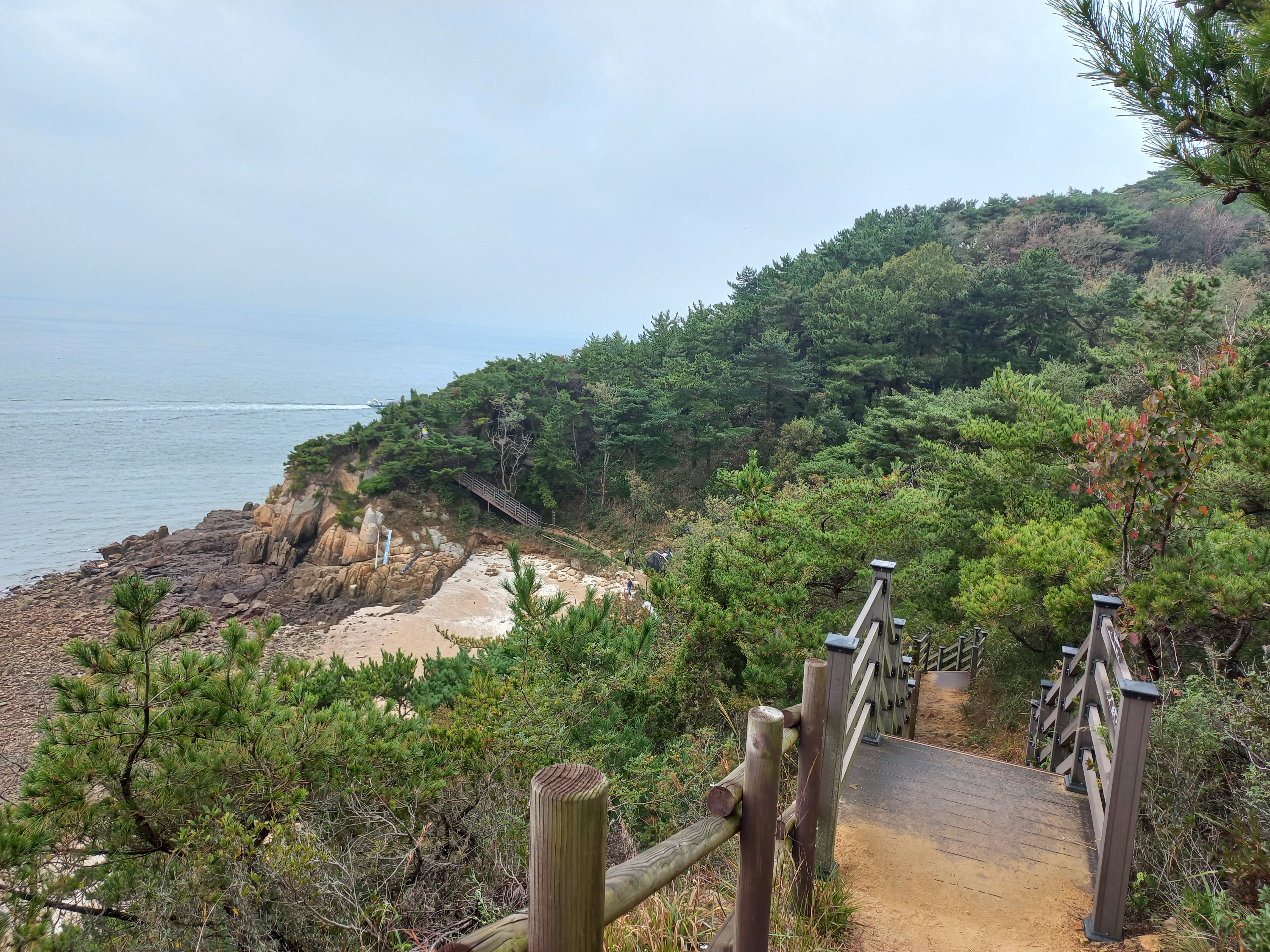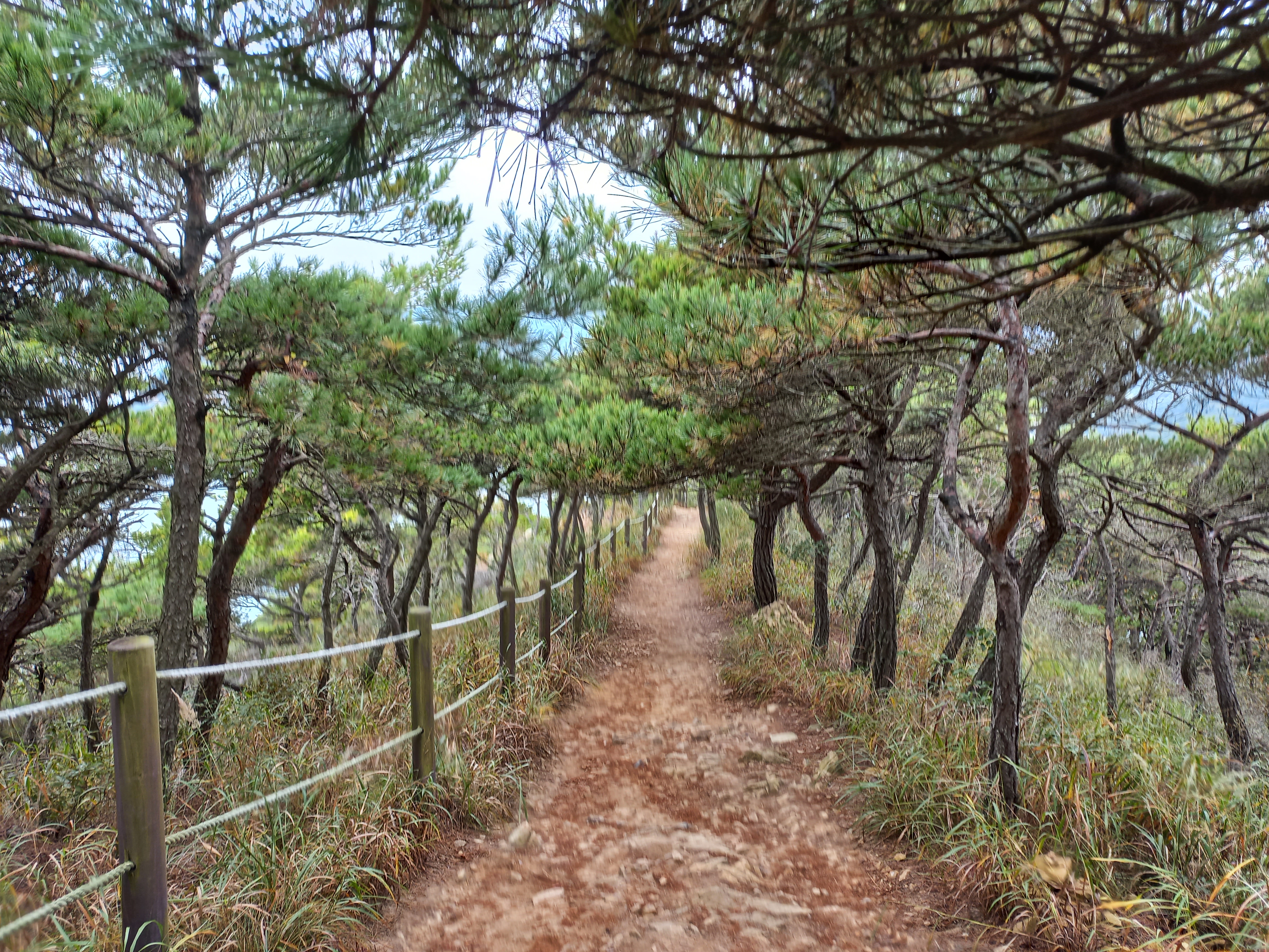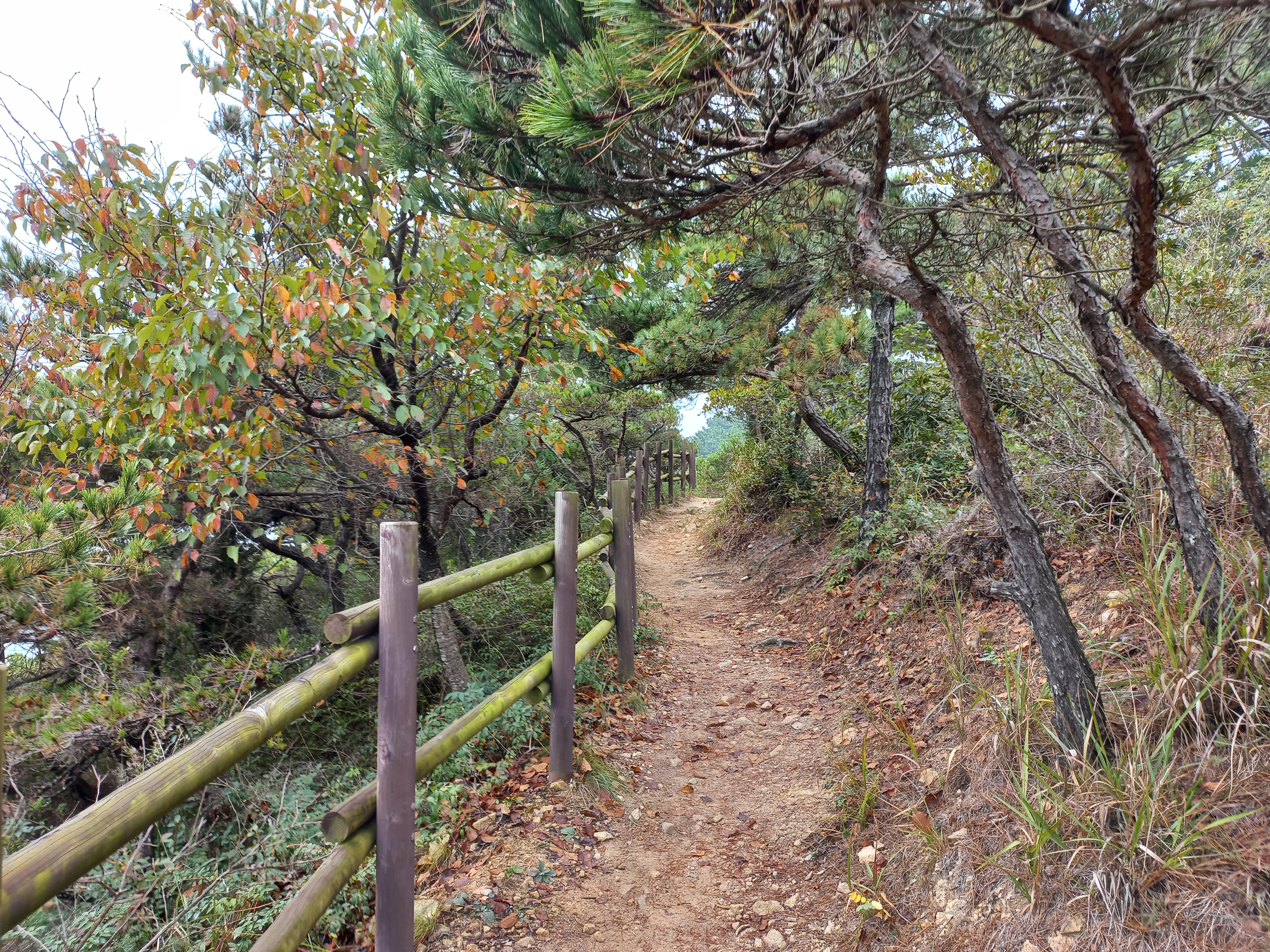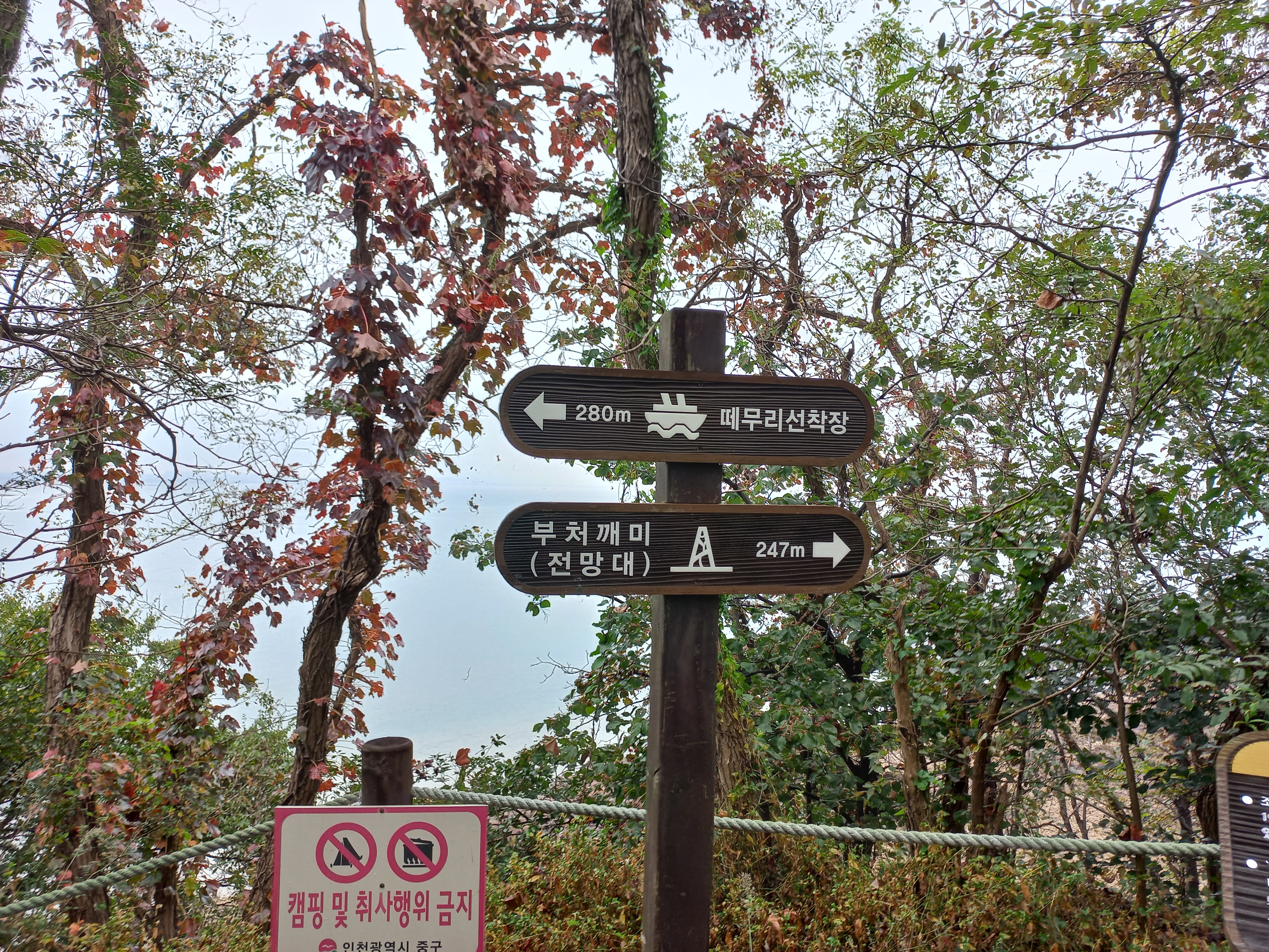 오늘은 인천공항1터미널 버스정류장 7번홈에서 9시 40분 출발 무의 1번 버스로 종점인 광명항까지 갔다. 가보지 않은 소무의도를 가기 위해서였다. 무의도와 소무의도가 소무의인도교로 연결되어 걸어서 소무의도에 갈 수가 있었다. 자동차는 갈 수가 없는 인도교이다. 인도교 끝에서부터 소무의도를 한 바퀴 돌 수 있는 무의바다누리길이 8개 코스로 나뉘어 조성되어 있었다. 1코스부터 8코스까지 차례대로 소무의도를 한바퀴 돌았다. 오르고 내리는 길에 계단길을 많이 걸어야 했다. 전체 둘레길이 2.2km라 해서 두 시간이 다 걸리지 않은 코스였지만 상당히 힘들었다. 섬이기에 사방이 바다로 경치가 아주 시원하고 좋을 것 같았는데, 오늘 안개가 상당히 짙은 흐린날씨여서 좋은 전망을 볼 수 없었다. 전망대 안내판에 보면 송도국제도시, 팔미도, 영종도, 인천대교, 대부도 등이 모두 조망이 된다고 되어 있는데 하나도 제대로 볼 수가 없어 아쉬웠다.