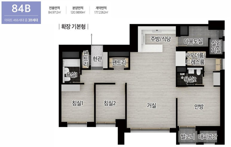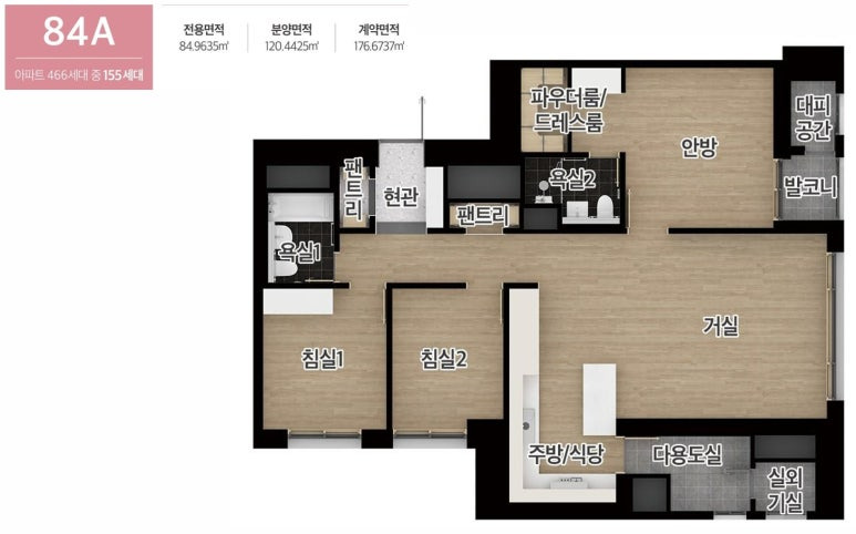 ▶ 지하4층 ~ 지상49층, 2개동 총 508세대 선호도 높은 중형 평형대 판상형 위주로 공급
