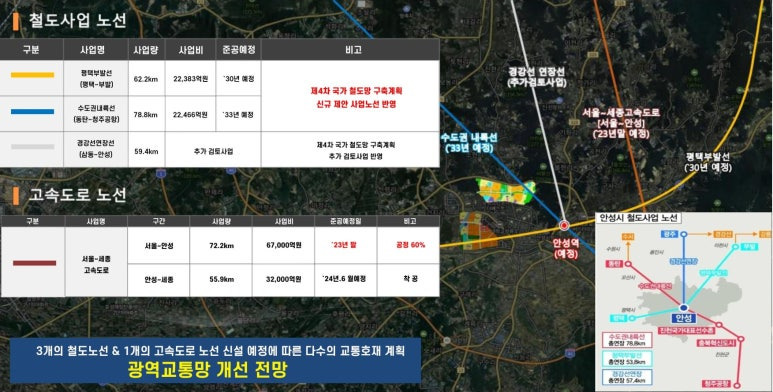 ▶ 3개의 철도 노선 & 1개의 고속도로 노선 신설 추진으로 수도권 접근서이 향상 대며, 지역발전에 기대