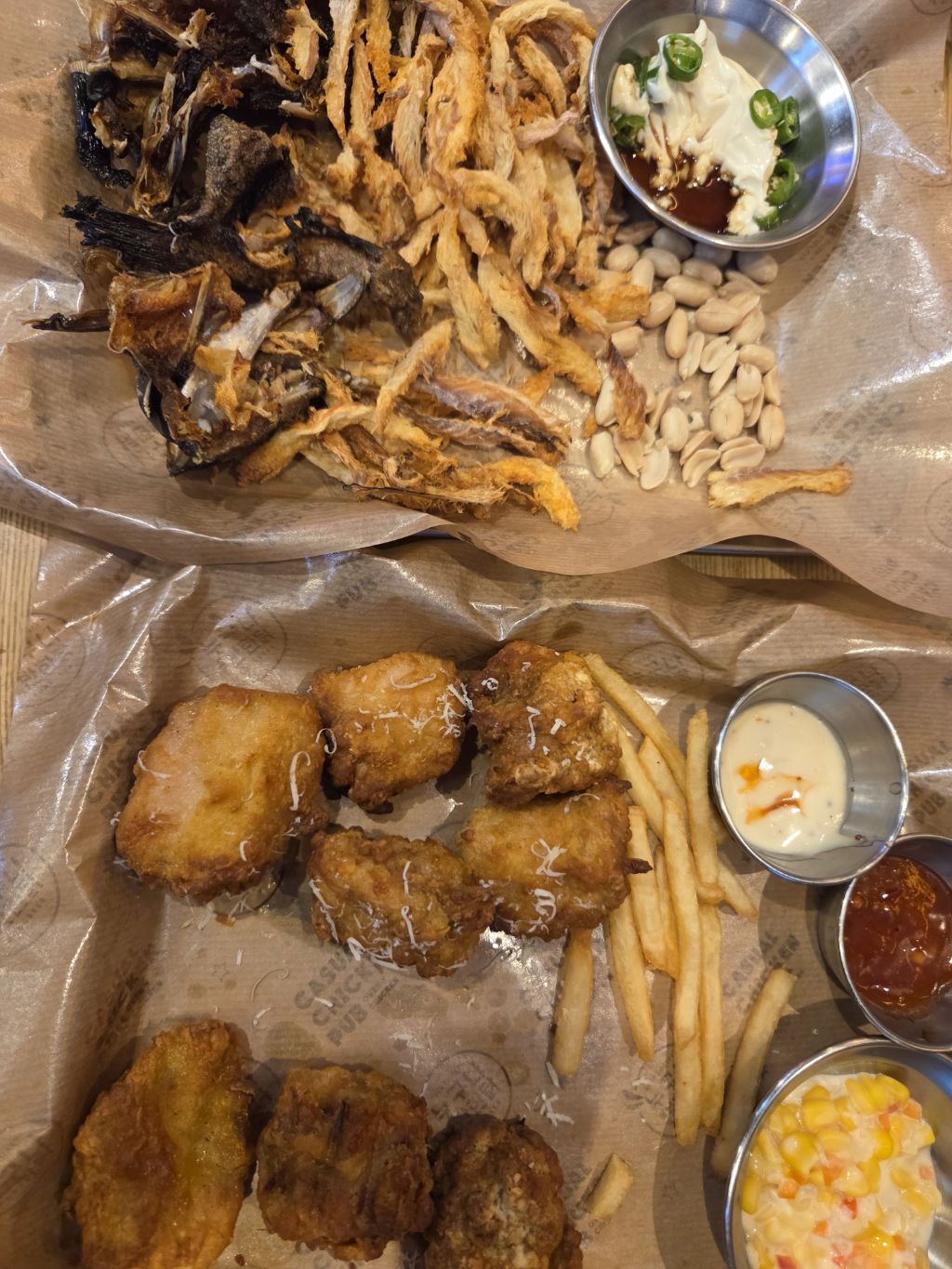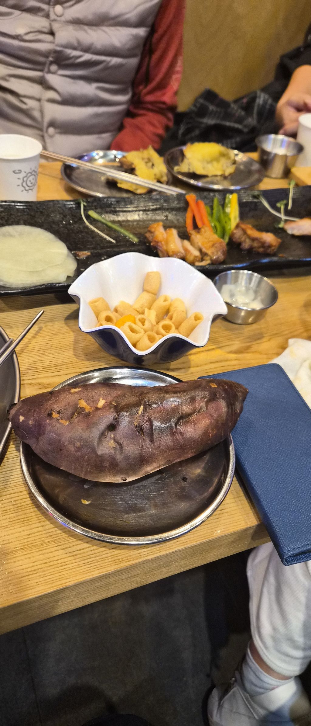 치킨 야채쌈 골뱅이무침 오델로사장님 군고구마