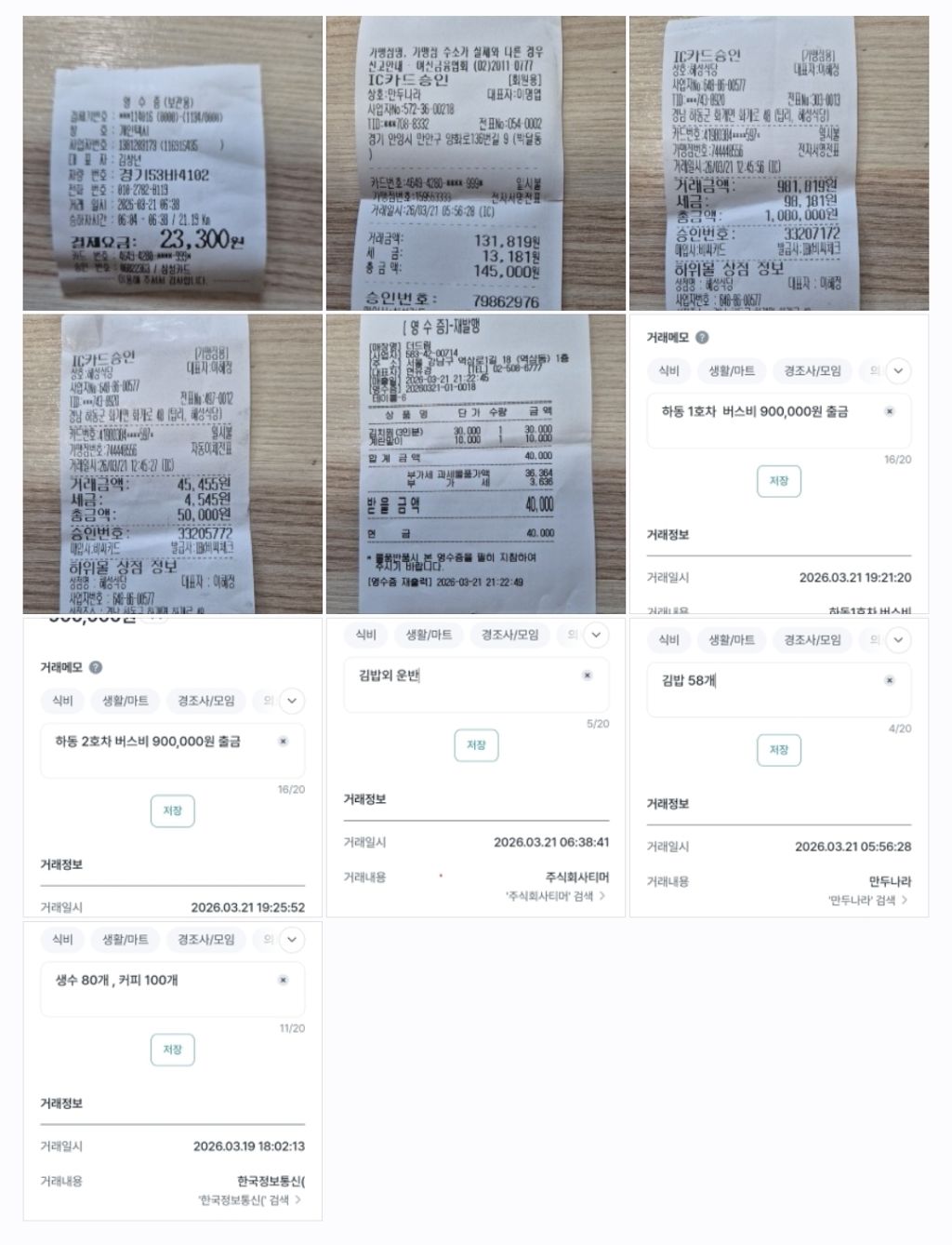 ※ 모시 지출한 영수증 사진이나 파일 올려주세요.
