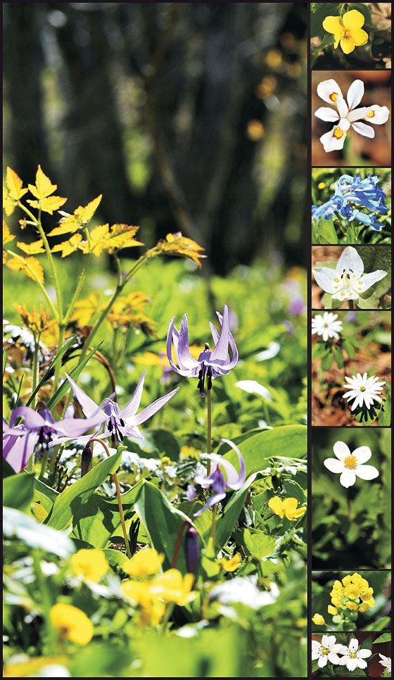 선괭이눈, 얼레지, 갈퀴현호색, 꿩의바람꽃,