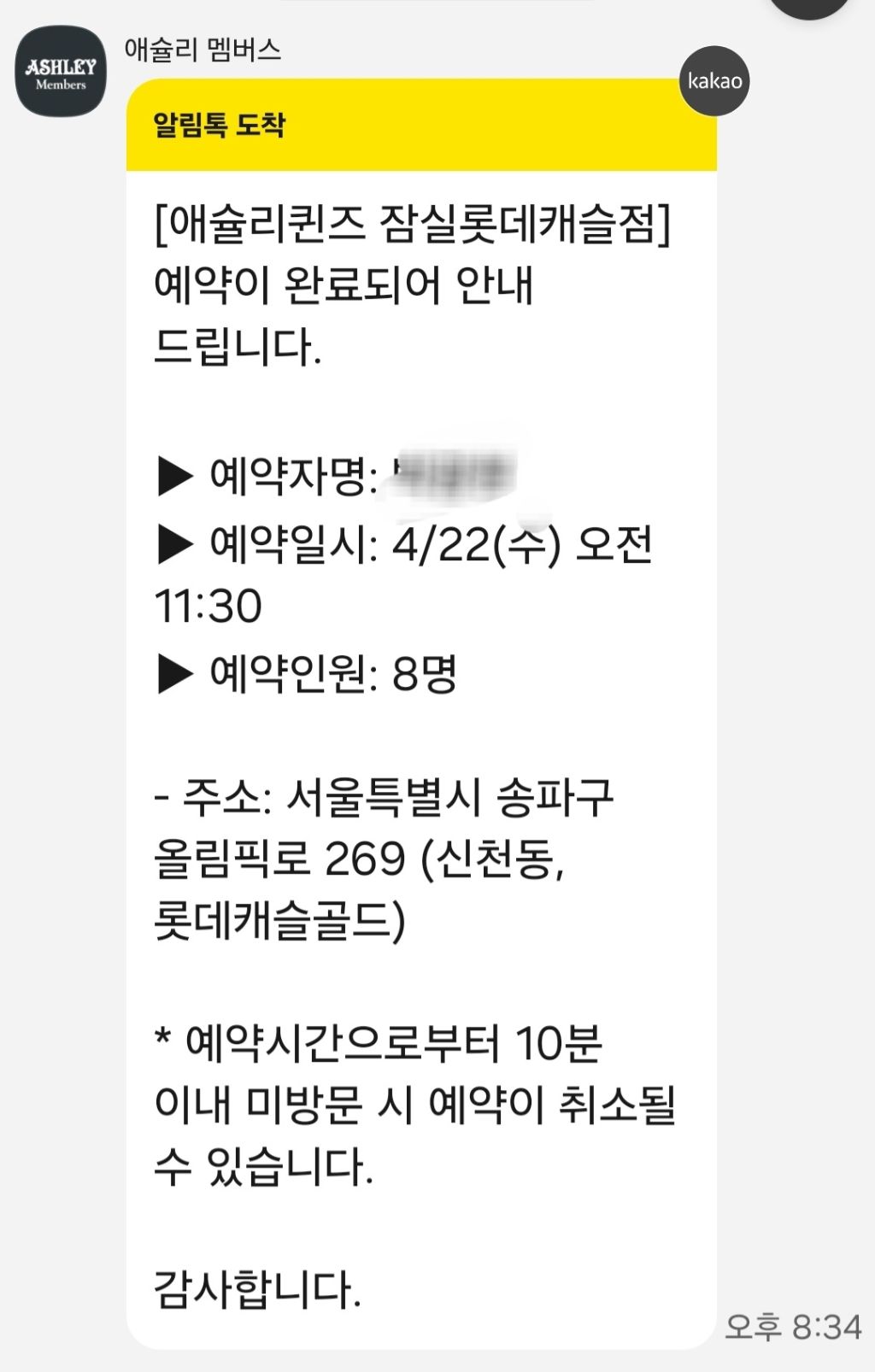 | ▼모임 일정▼ 가보신 분들은 아시겠지만, 애슐리퀸즈 잠실롯데캐슬점은 평일 점심시간이면 웨이팅이 장난 아닙니다. 그래서 미리 앱으로 예약하지 않으면 입장이 어렵습니다. 8명 예약 했습니다. 예약의 경우 입장과 동시에 전액 결제해야합니다. 그러므로 지각하지 않을 자신 있는 분만 신청해주세요~^^ | |