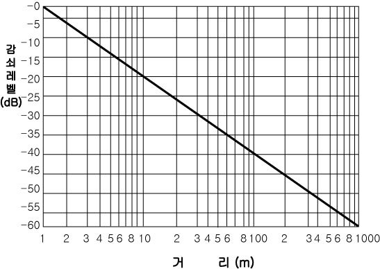 위의 그래프는 거리에 의한 음압레벨 감쇠표 이다.
