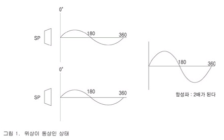 즉 스피커의 극성을 한쪽은 반대로 해놓는 것과 똑 같은 결과가 생기는 것이다.