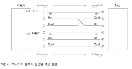 두 번째로 확인을 해야 할 문제는 오디오 시그널 컨넥터의 극성을 정확히 해야 하는