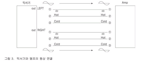 Left, Right 신호 모두 정확히 연결했다면 아무문제 없이 앰프에는 동상의 두 신호가