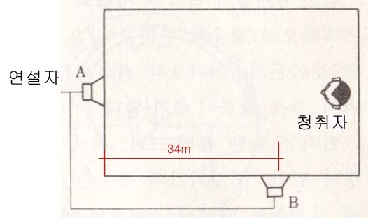 0.1초의 근거는 A스피커와 B 스피커와의 거리가 34미터이기 때문이다.