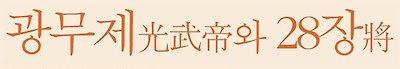 광무제(BCE6 ~ CE57)는 유방(BCE247~BCE195)이 세운 한(漢)나라가 멸망하여 혼란기에 처했을 때 민심을 수습하고 후한(後漢)을 건국한 군주이며, 28장은 광무제를 도와 나라를 세우는 데 큰 공을 세운 28명의 명장이다. 도전(道典)을 보면, 증산 상제님께서는 28장을 불러 의통공사를 집행하신 기록이 나와 있는데, 이 28장은 어떤 분이며 이분들은 어떤 역사적 배경 속에서 공을 이룬 분인가에 대해 간략히 알아보자. 증산도 도전 4편 114장을 보면 이런 말씀이 있다. 무신년 여름에 상제님께서 경석의 집 서쪽 벽에 ‘28장(將)’과 ‘24장(將)’을 써 붙이시니 이러하니라. 二十八將 이십팔장 鄧禹 馬成 吳漢 王梁 賈復 陳俊 耿d 등우 마성 오한 왕량 가복 진준 경감 杜茂 寇恂 傅俊 岑彭 堅槿 馮異 王覇 두무 구순 부준 잠팽 견담 풍이 왕패 朱祐 任光 祭遵 李忠 景丹 萬修 蓋延 주우 임광 채준 이충 경단 만수 갑연 匹菽 E期 劉植 耿純 臧宮 馬武 劉隆 비동 요기 유식 경순 장궁 마무 유융 이어 공우의 왼팔을 잡으시고 소리를 높여 “만국대장(萬國大將) 박공우!” 하고 외치시거늘, 이후로 공우가 어디에 가든지 문밖에 나서면 어디선가 방포성(放砲聲)이 나더라. (道典 4:114:1~2, 4~5)