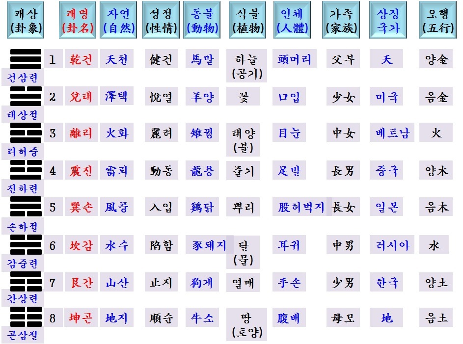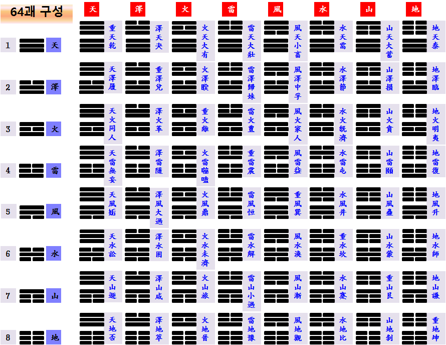 소성괘 8괘와 대성괘 64괘의 구성원리와 괘명