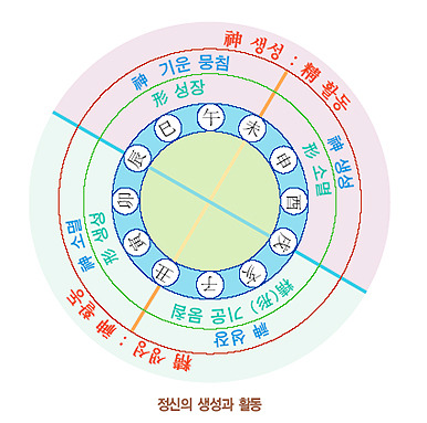즉 술(戌)부터 묘(卯)까지의 과정은 씨앗의 내부에서 음의 형체를 만드는 과정입니다. 그러므로 진(辰)부터 유(酉)까지는 보이지는 않지만 양에 해당하는 신(神)을 생성하는 과정임을 유추할 수 있습니다.