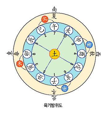 육기의 자화(自化)작용 천생지성(天生地成)이라 하듯이 하늘은 만물을 낳는 작용을 하며 땅은 만물을 기르고 성숙시키는 역할을 합니다. 그러므로 불완전한 변화를 하던 오운은 육기에 이르러서 완전한 변화작용을 합니다. 이는 오운과 육기에서 변화를 일으키는 작용을 하고 있는 土의 개수를 통해 알 수 있습니다.
