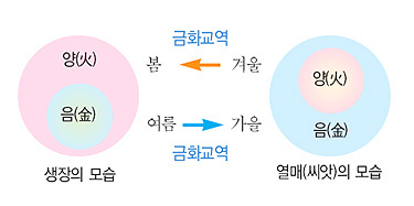 금화교역(金火交易)과 열매 지구의 전체적인 운동과정을 살펴보면 식물의 생장 과정과 같음을 알 수 있습니다.