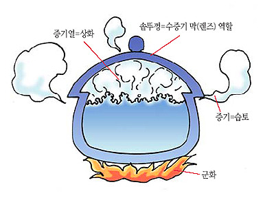 이렇게 되면 대기 중에는 습기의 수증기 막(렌즈)이 형성되는데 이것이 비닐하우스나 솥뚜껑과 같은 역할을 하면서 열을 가두게 됩니다. 즉 태양에서 직접 오는 태양열과 습기의 막에 의해 반사되어 들어오는 복사열 등이 합쳐지면서 지구는 고온다습한 7, 8월(음력 6, 7월)의 무더위가 시작됩니다.
