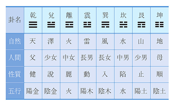 도통(道通)은 건감간진손이곤태(乾坎艮震巽離坤兌)에 있느니라. (道典 10:35:1)