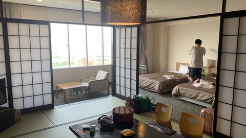 호텔 2개의 앞뒤로 있는 방..